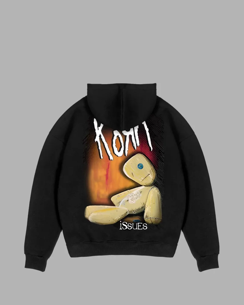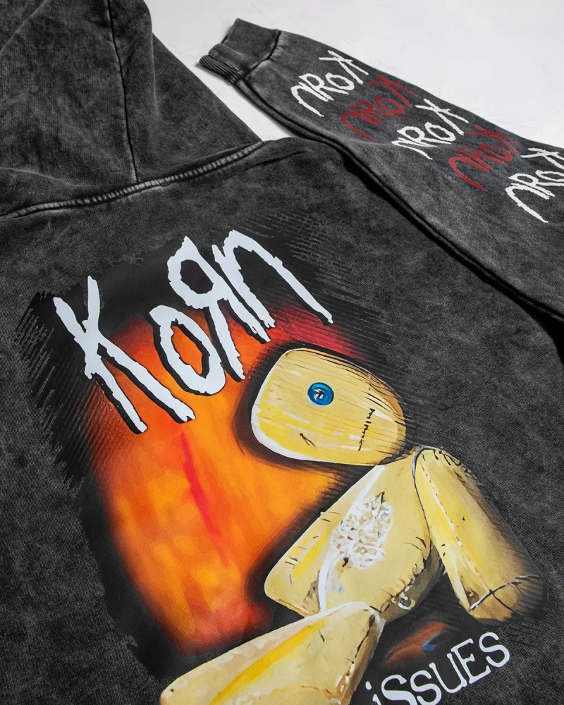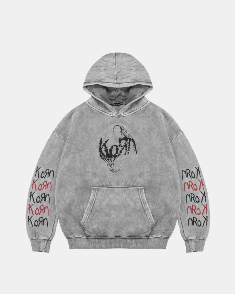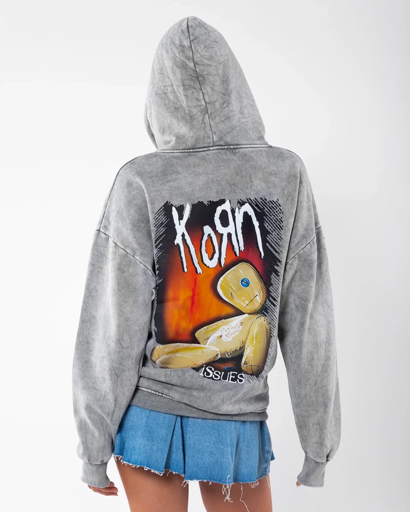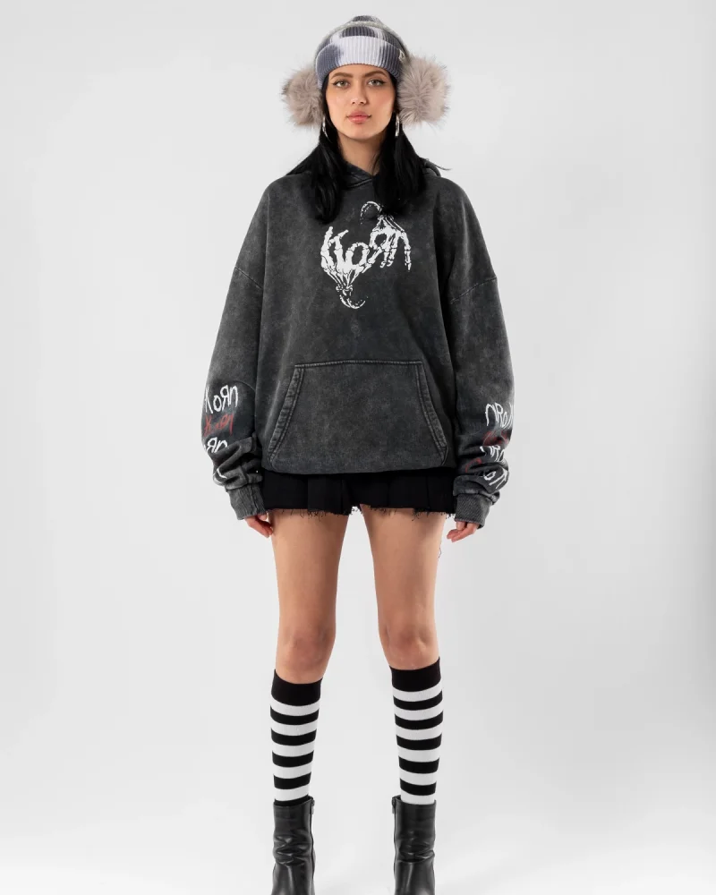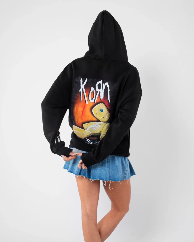 Korn Baskılı Oversize Unisex Siyah Hoodie