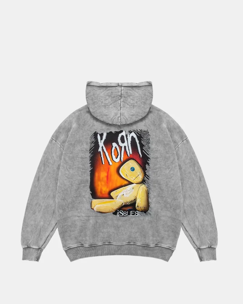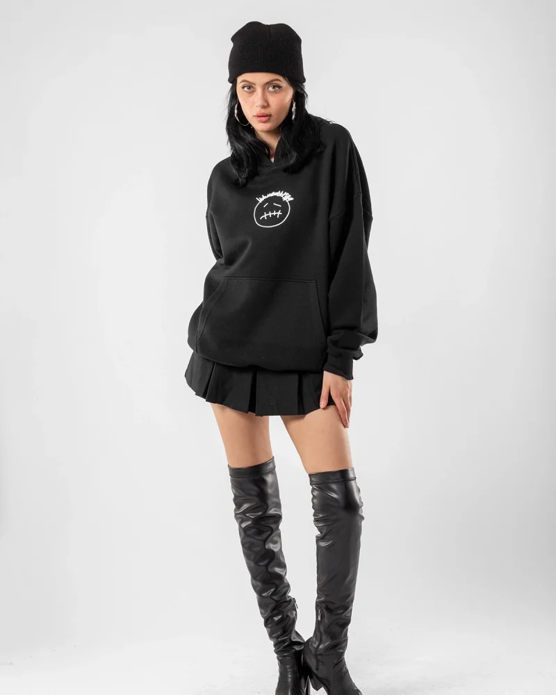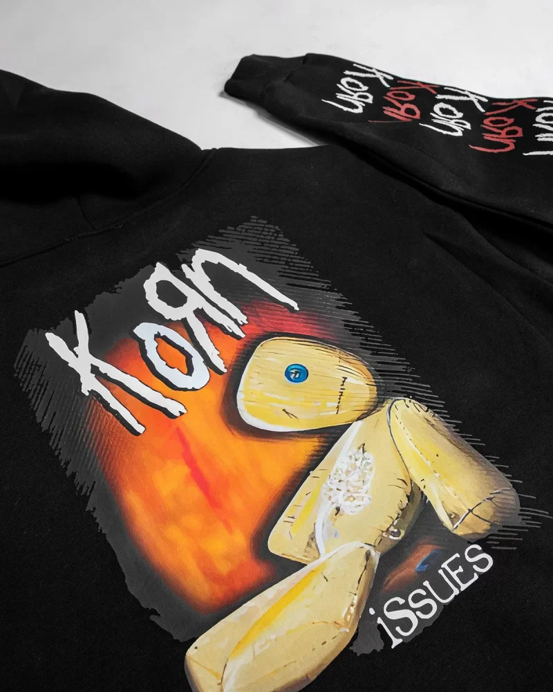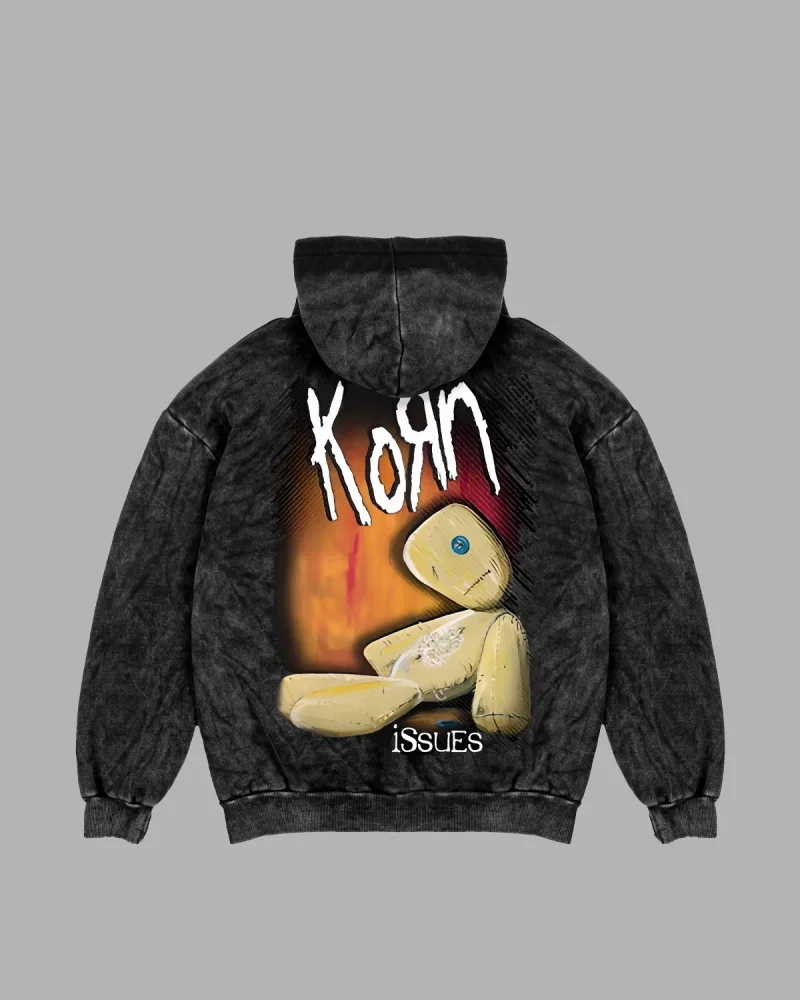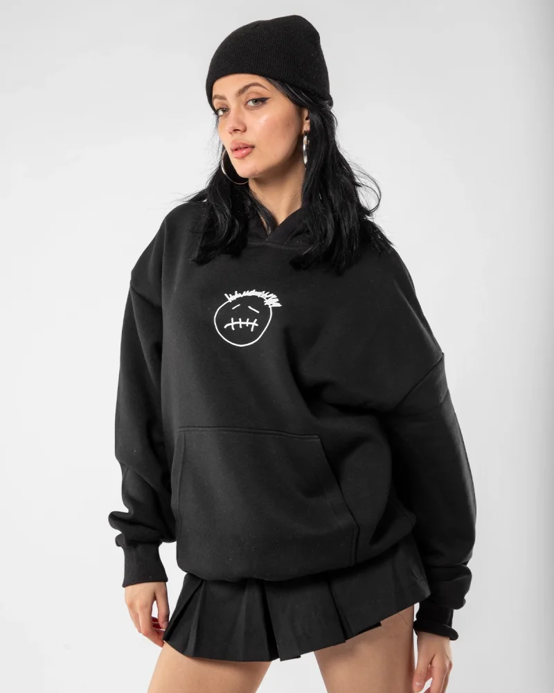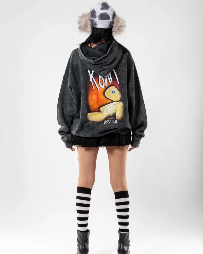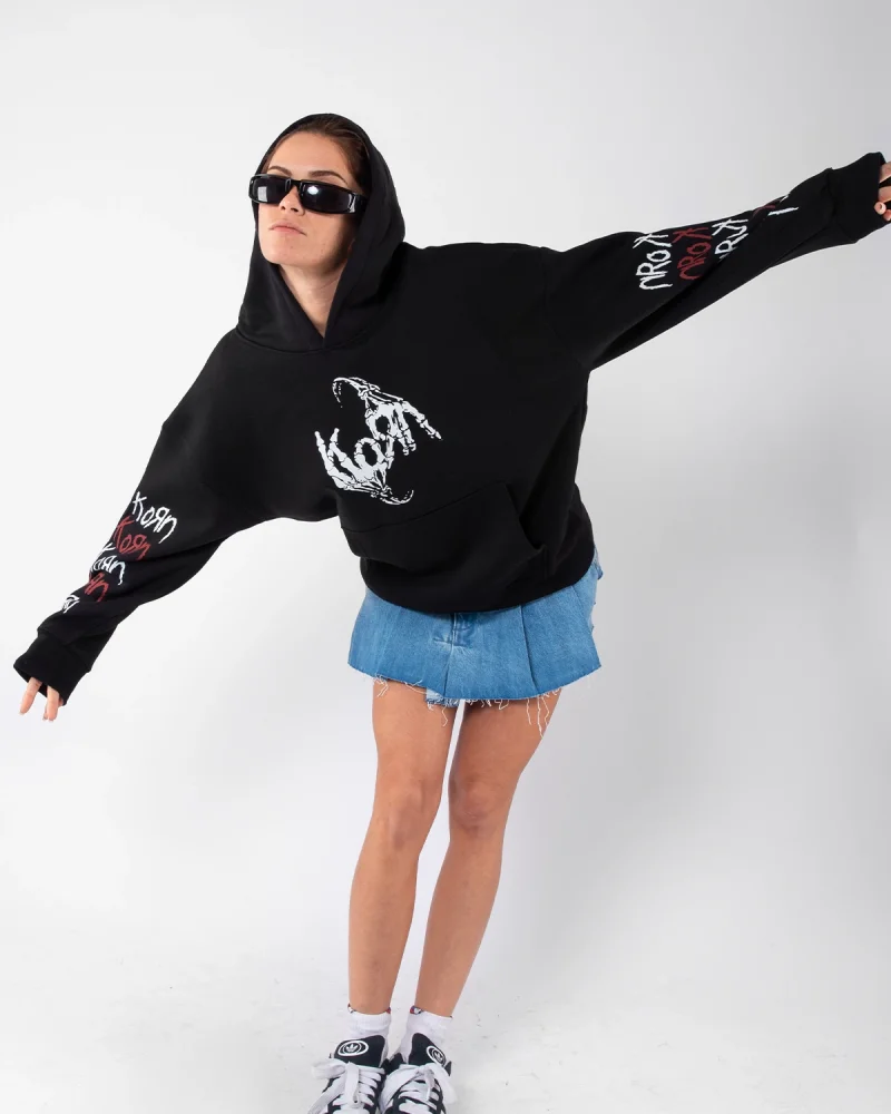 Korn Baskılı Oversize Unisex Siyah Hoodie