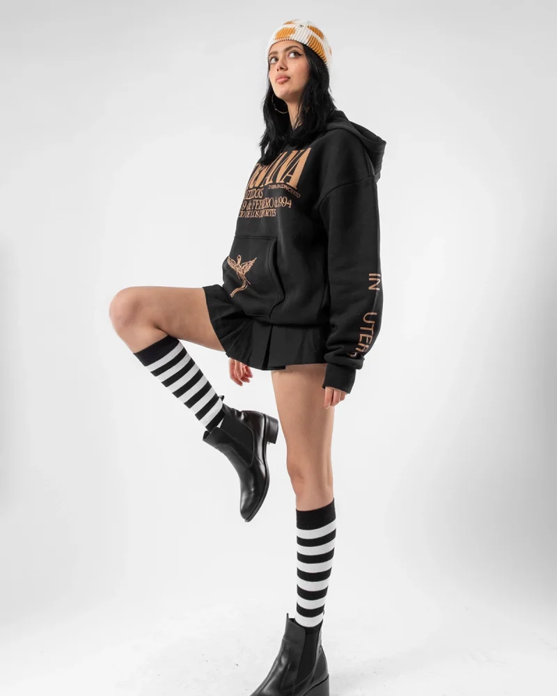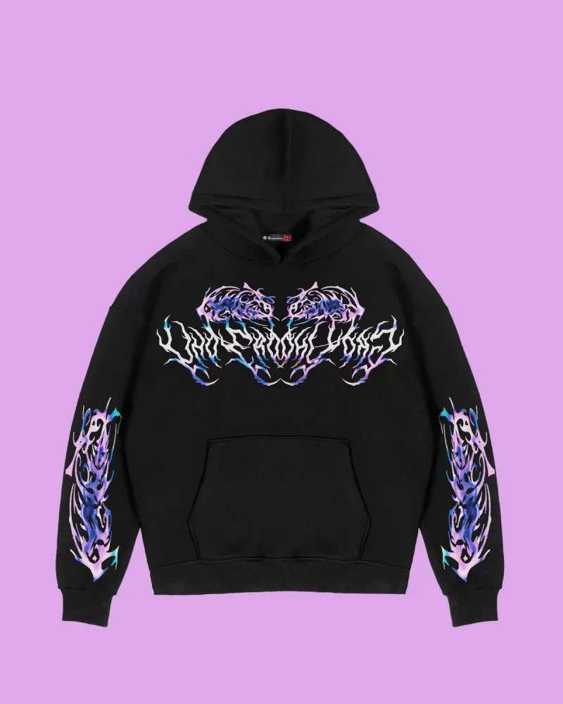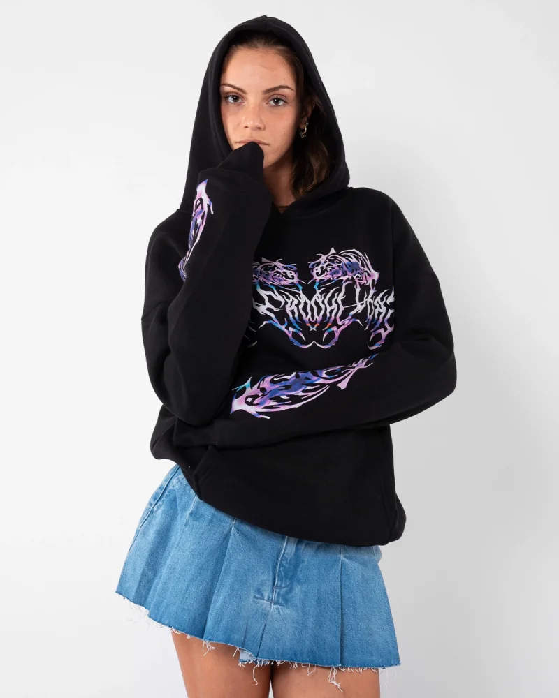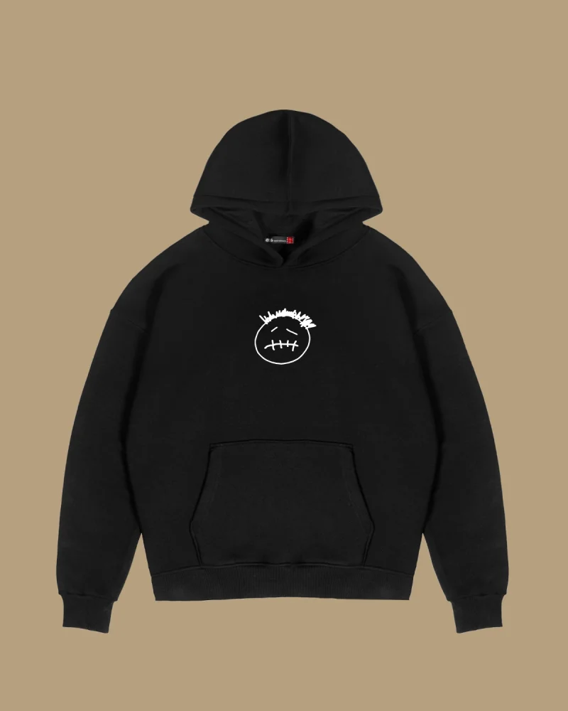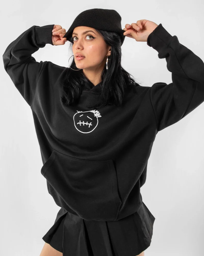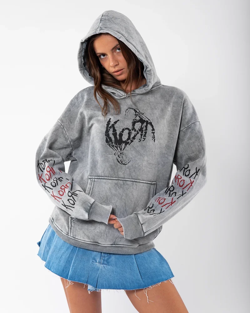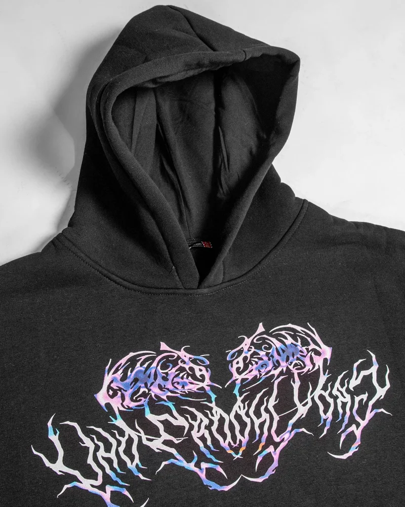 Korn Baskılı Oversize Unisex Siyah Hoodie