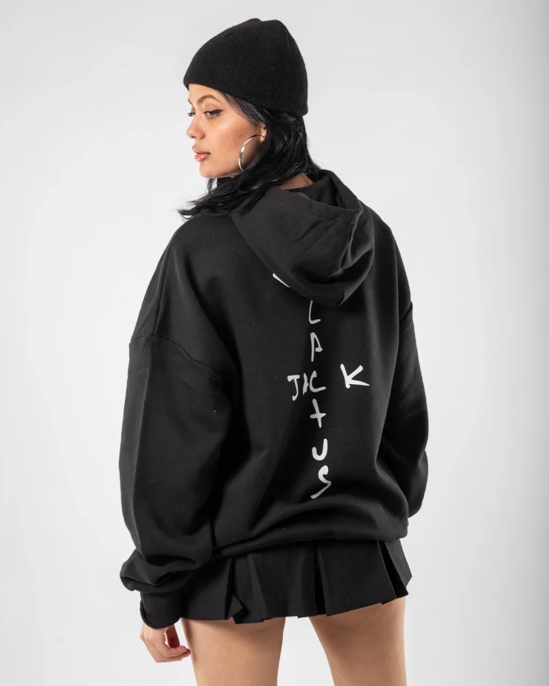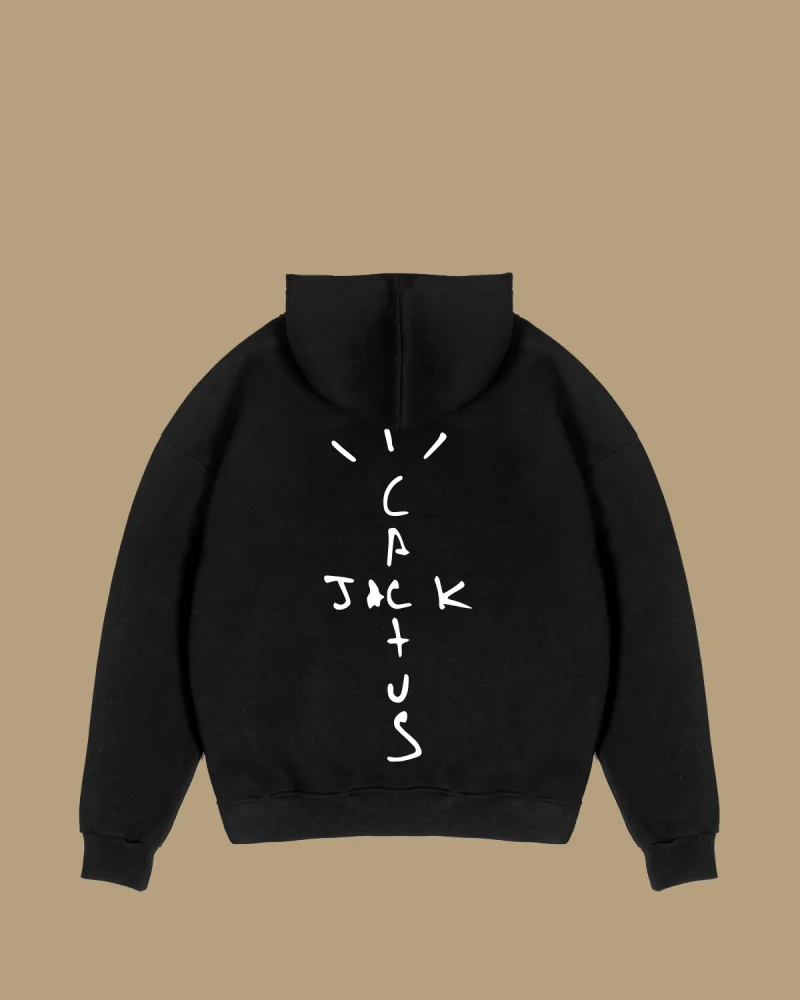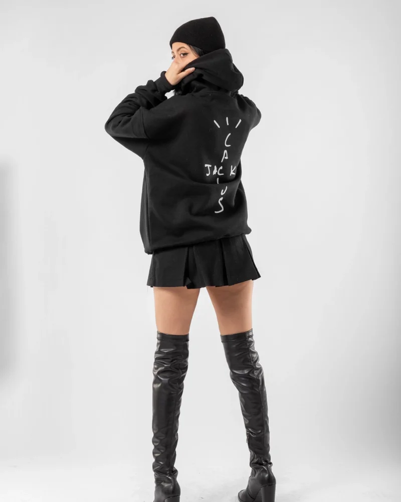 Cactus Jack Sırt Baskılı Oversize Unisex Siyah Hoodie