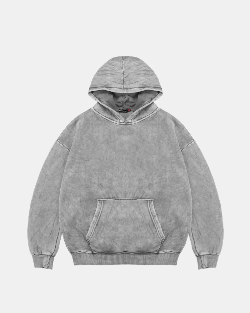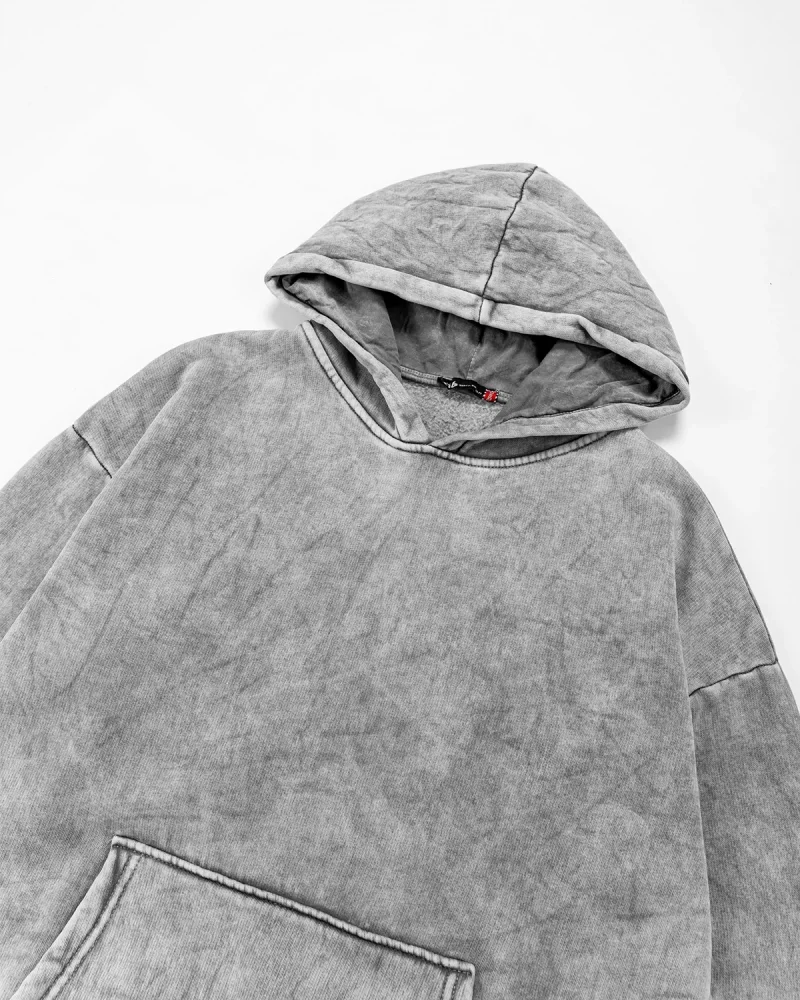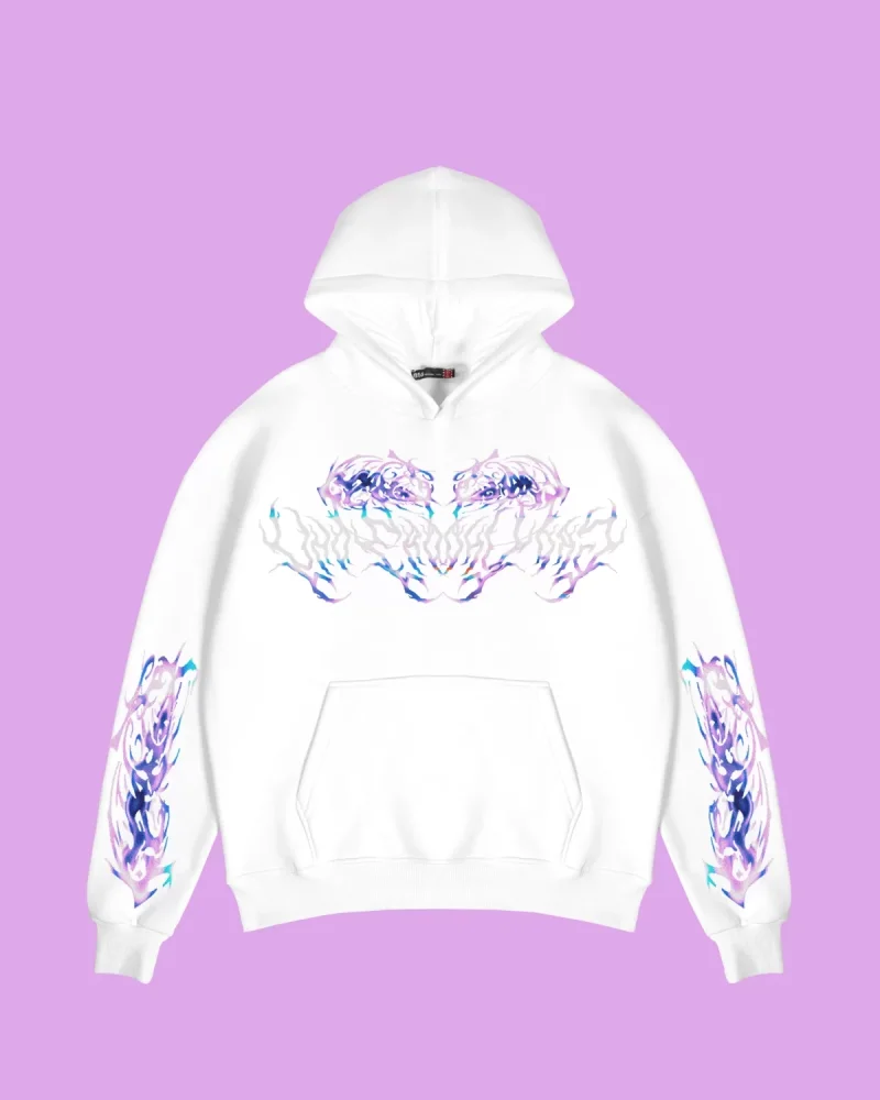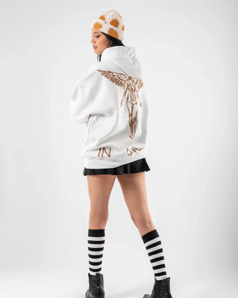 Yıkamalı Beyaz Asperitas Sırt Baskılı Oversize Unisex Hoodie
