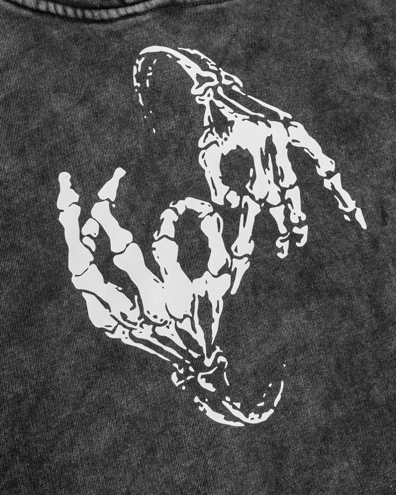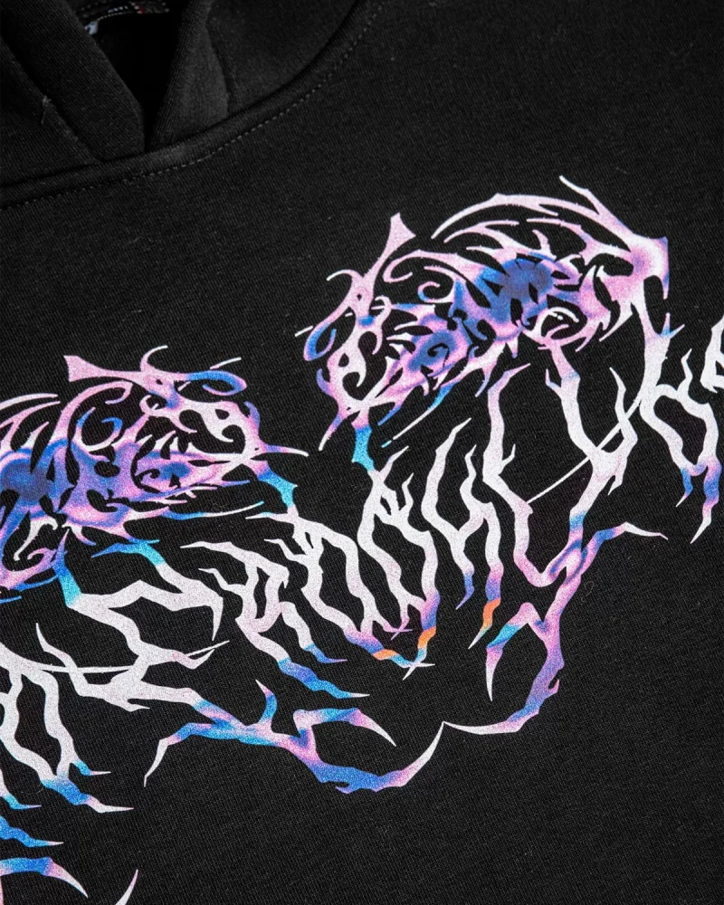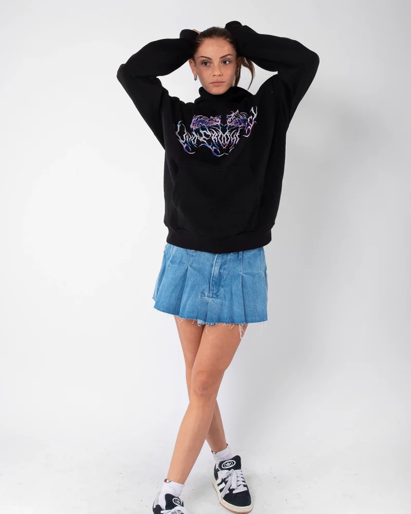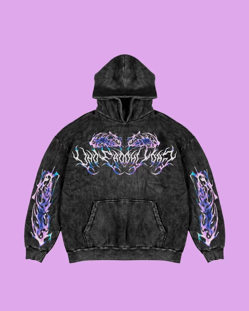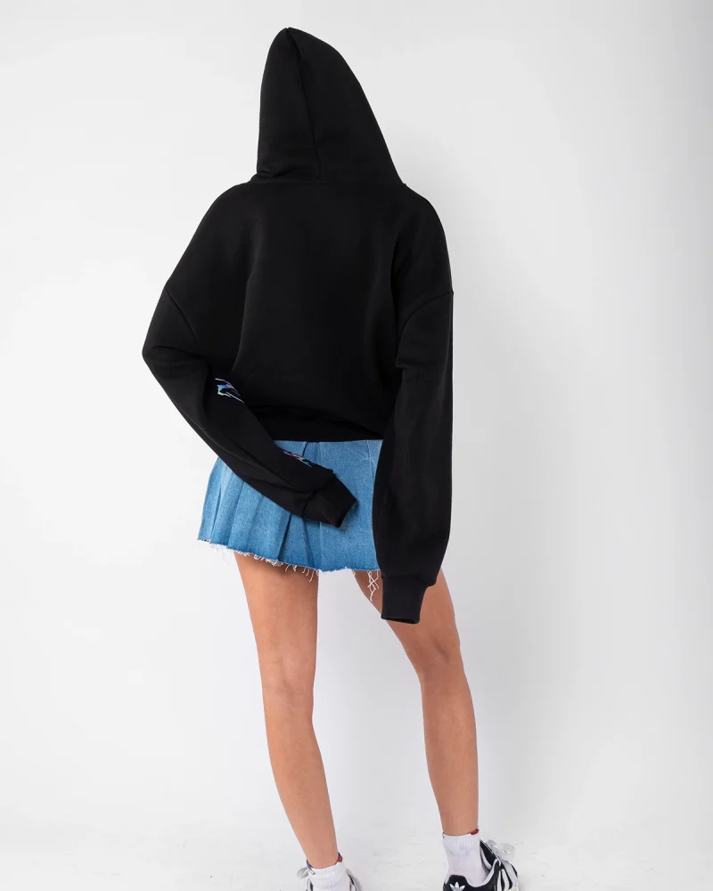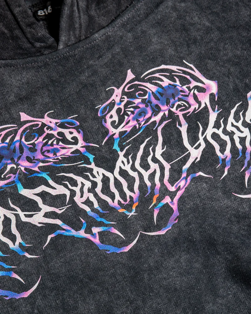 Yıkamalı Korn Baskılı Oversize Unisex Siyah Hoodie