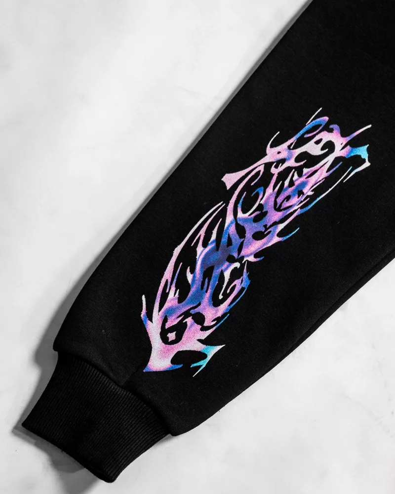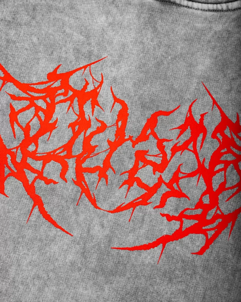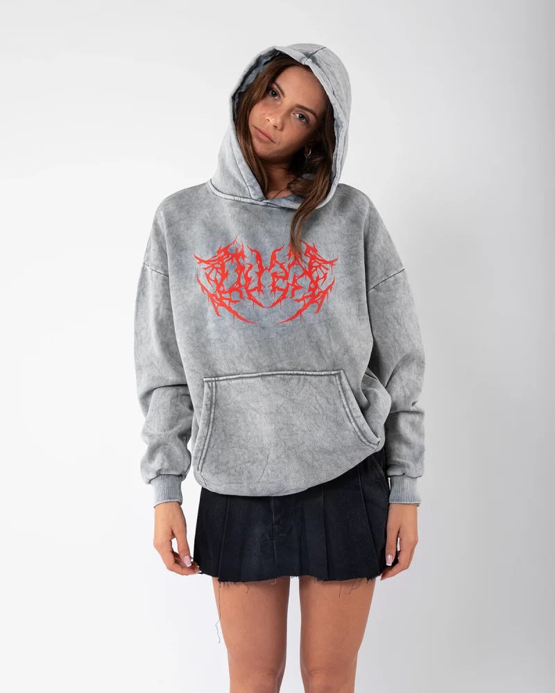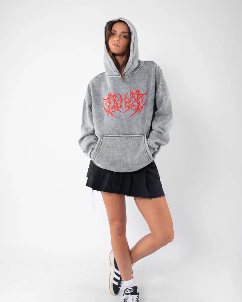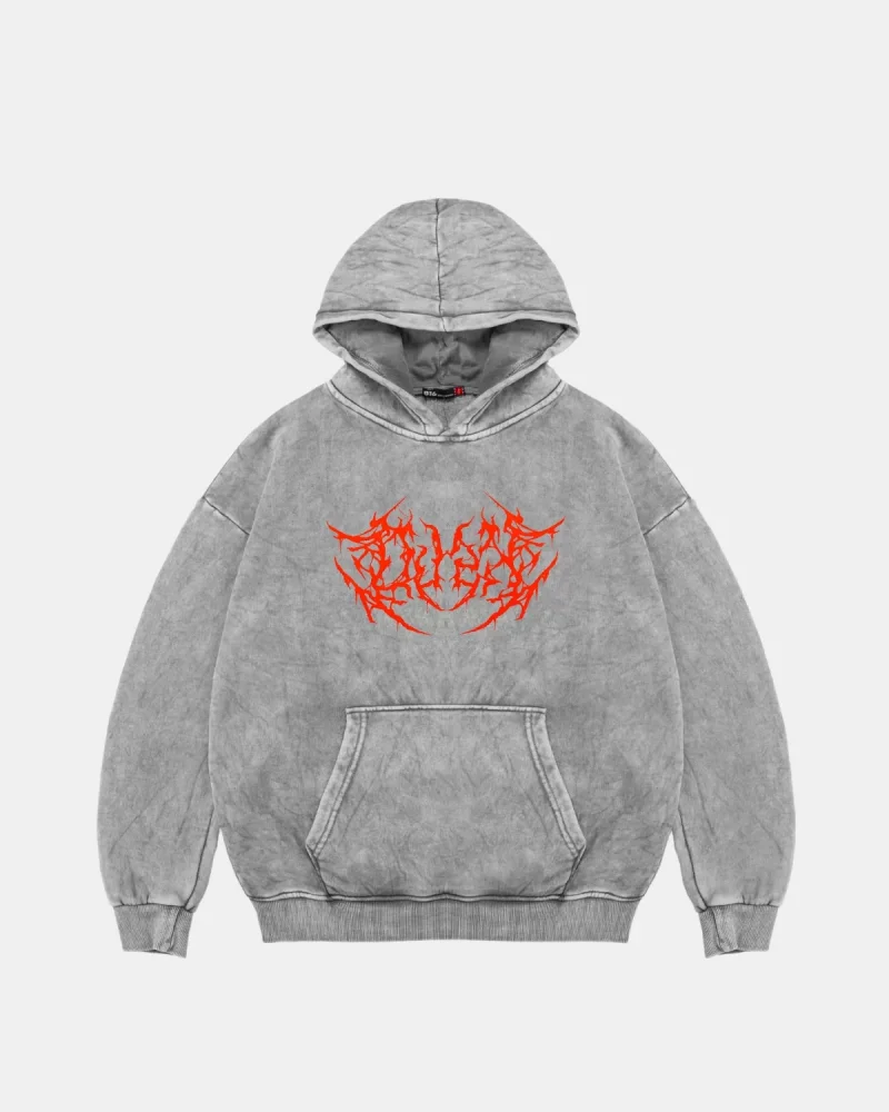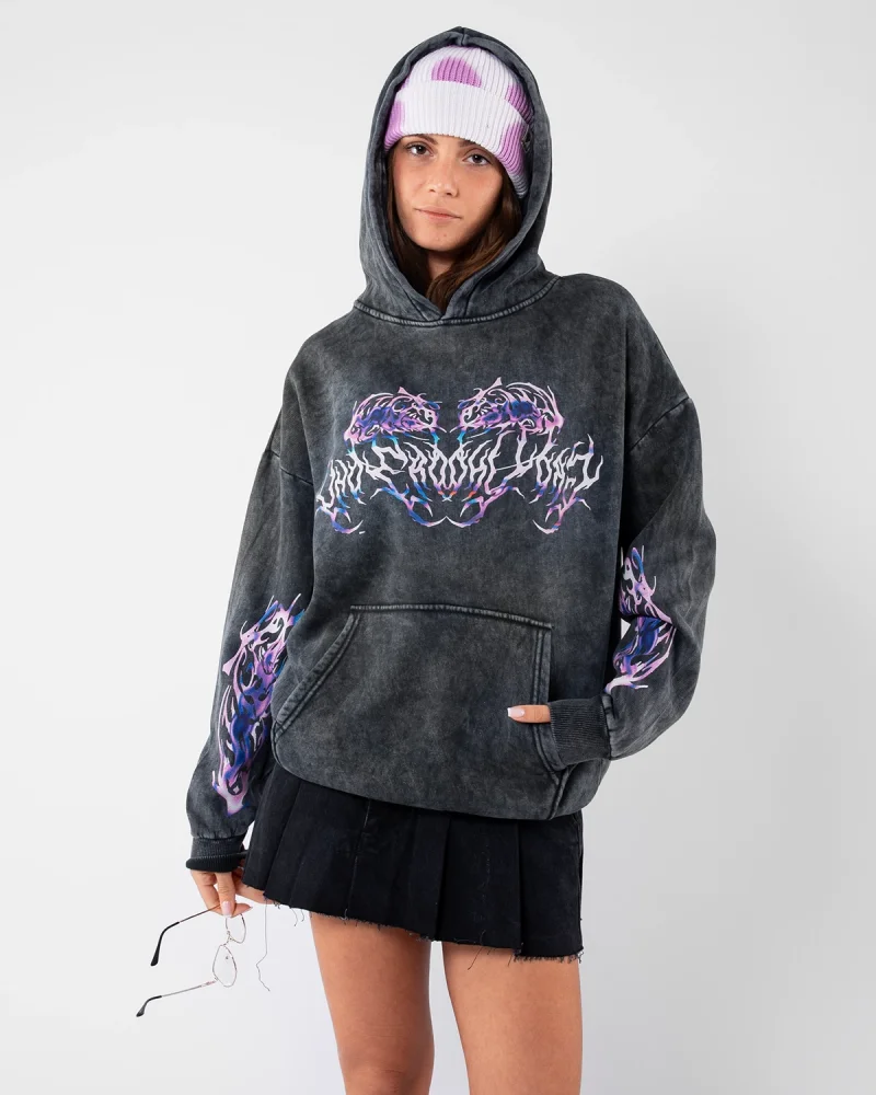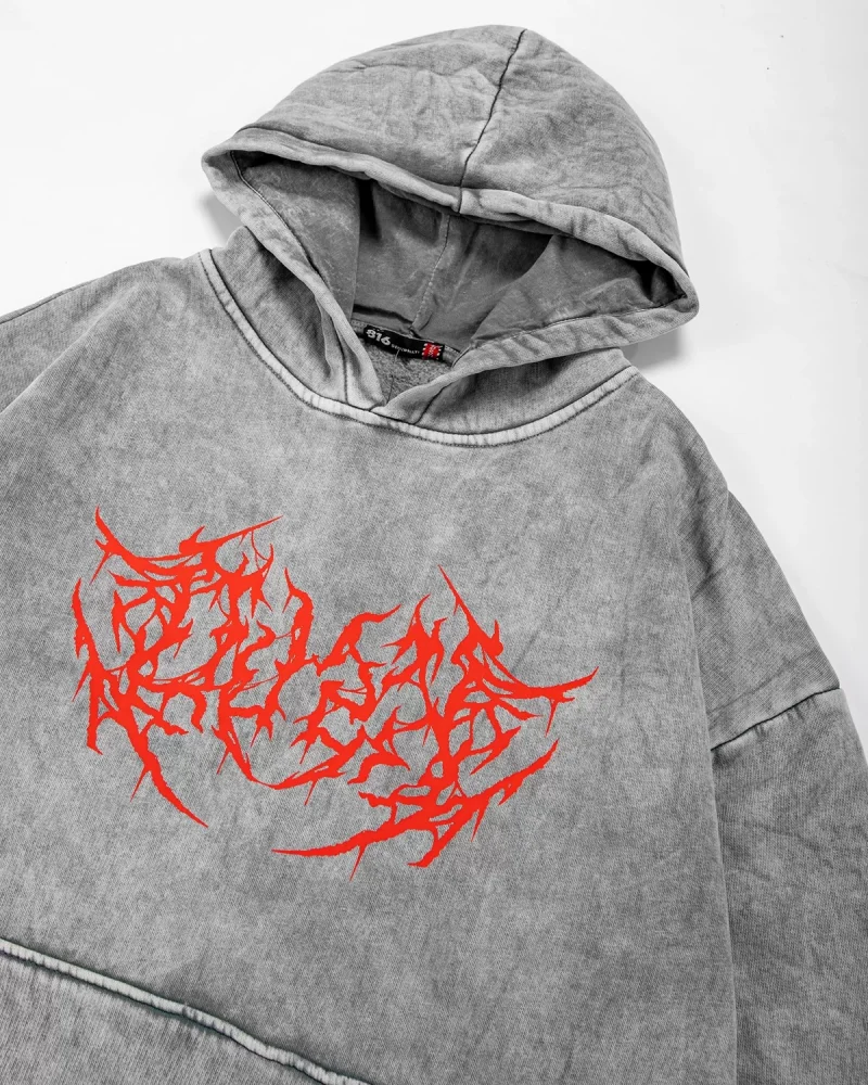 Yıkamalı Thrasher Flam Baskılı Oversize Unisex Füme Hoodie