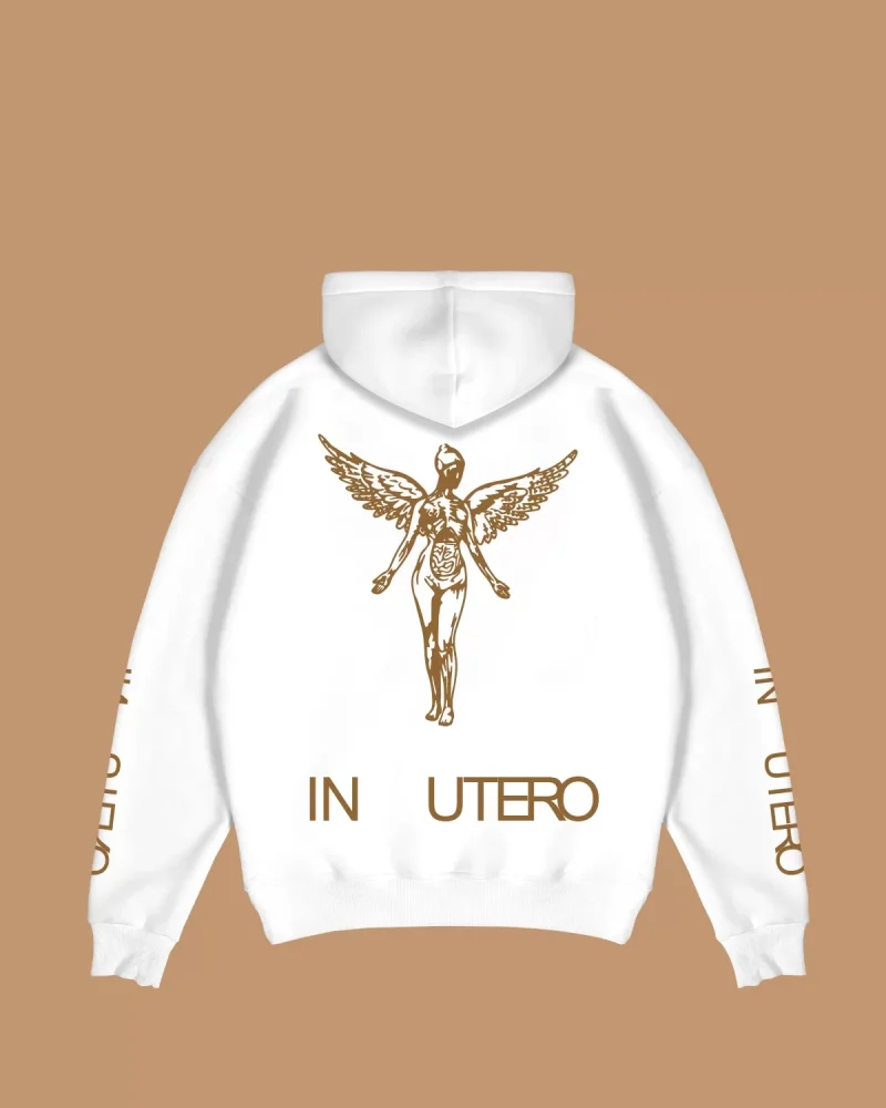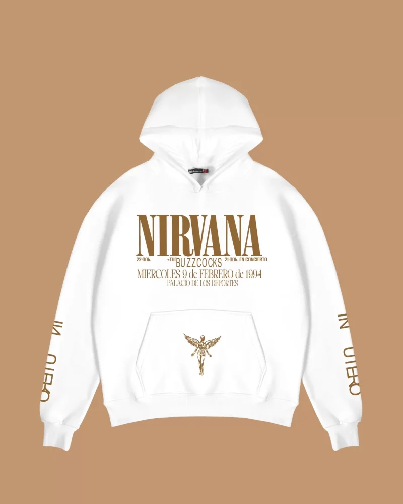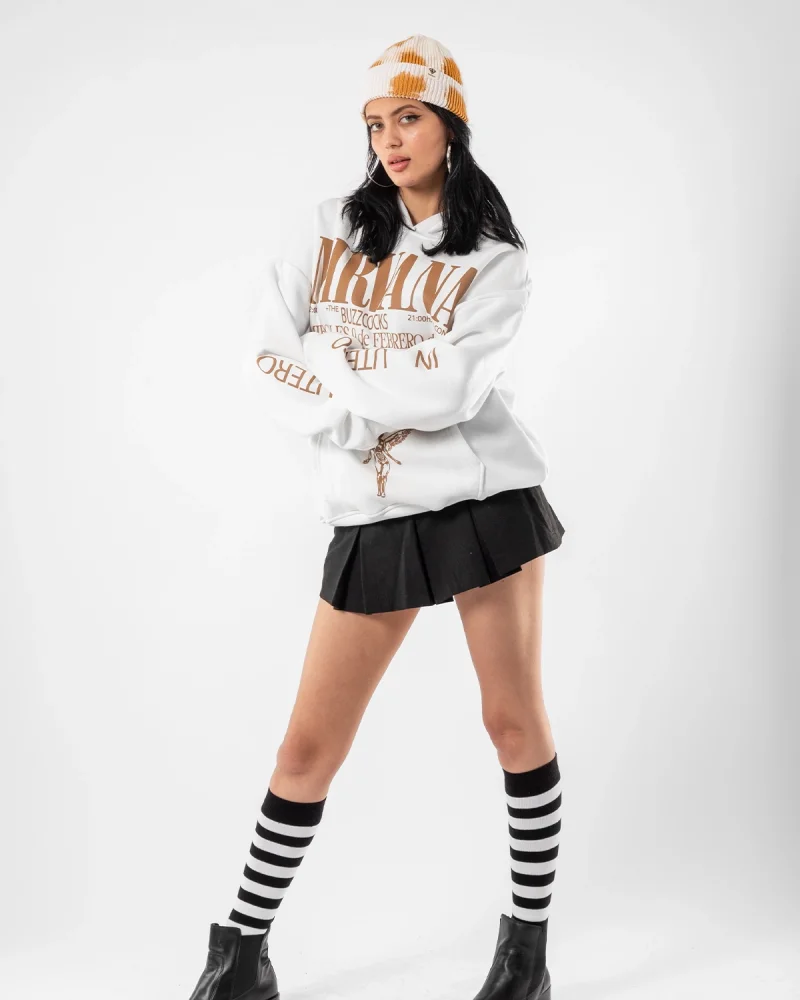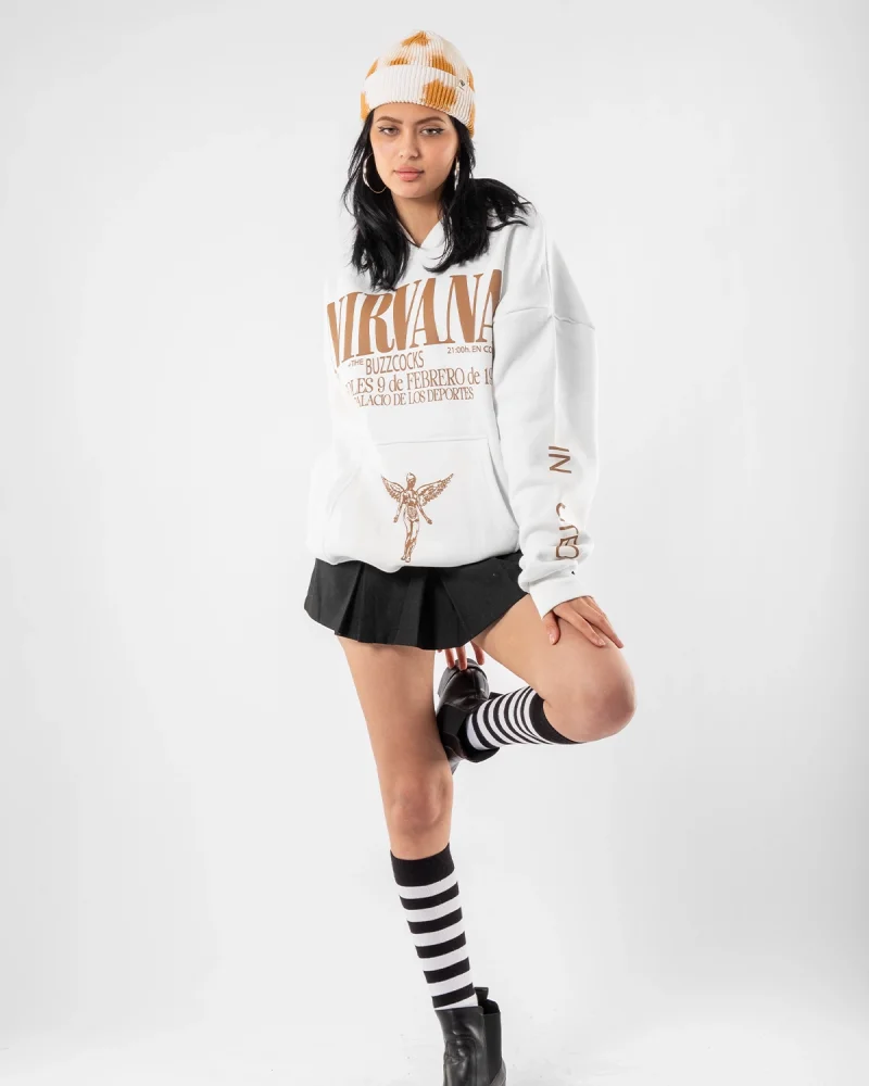 Nirvana Sırt Baskılı Unisex Oversize Beyaz Hoodie