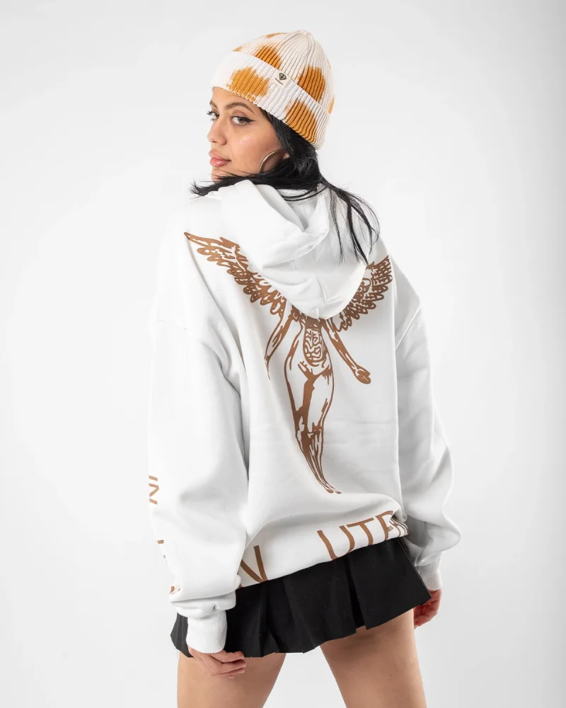 Eternal Text Baskılı Oversize Unisex Beyaz Hoodie