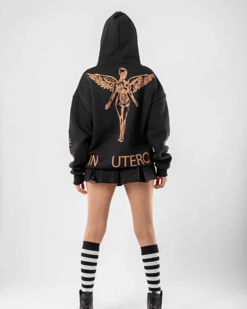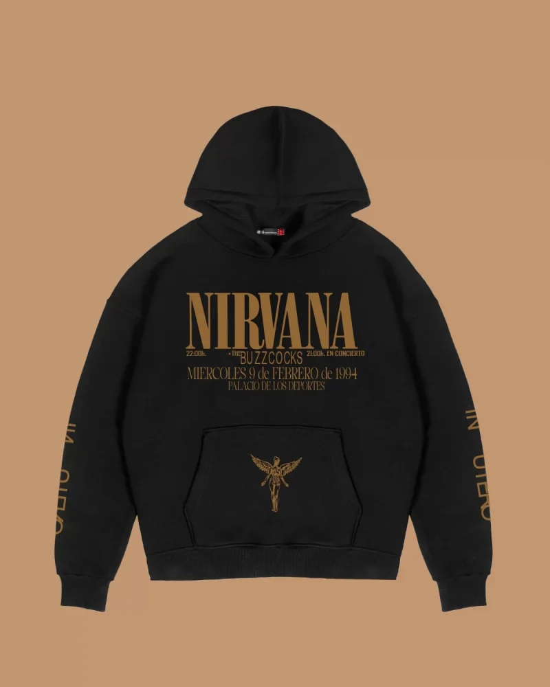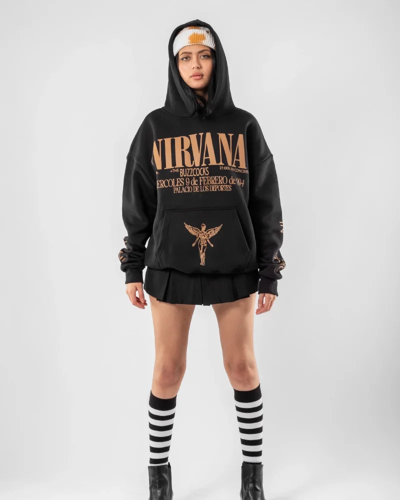 Nirvana Sırt Baskılı Unisex Oversize Siyah Hoodie