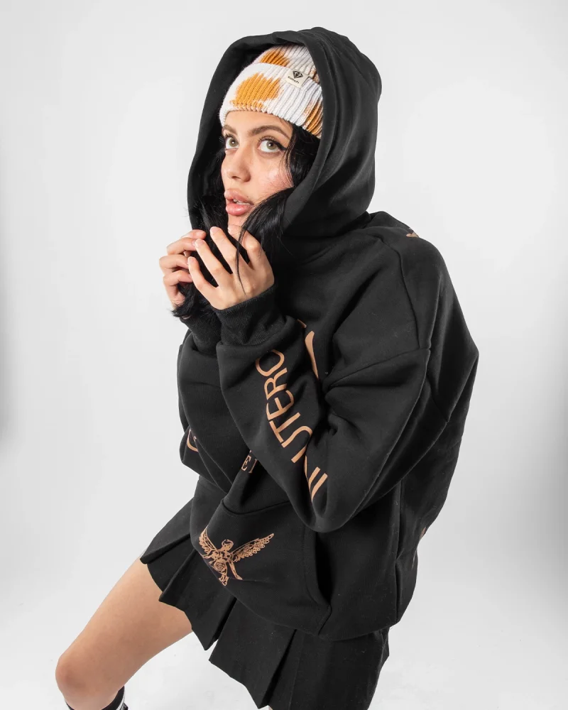 Eternal Text Baskılı Oversize Unisex Siyah Hoodie