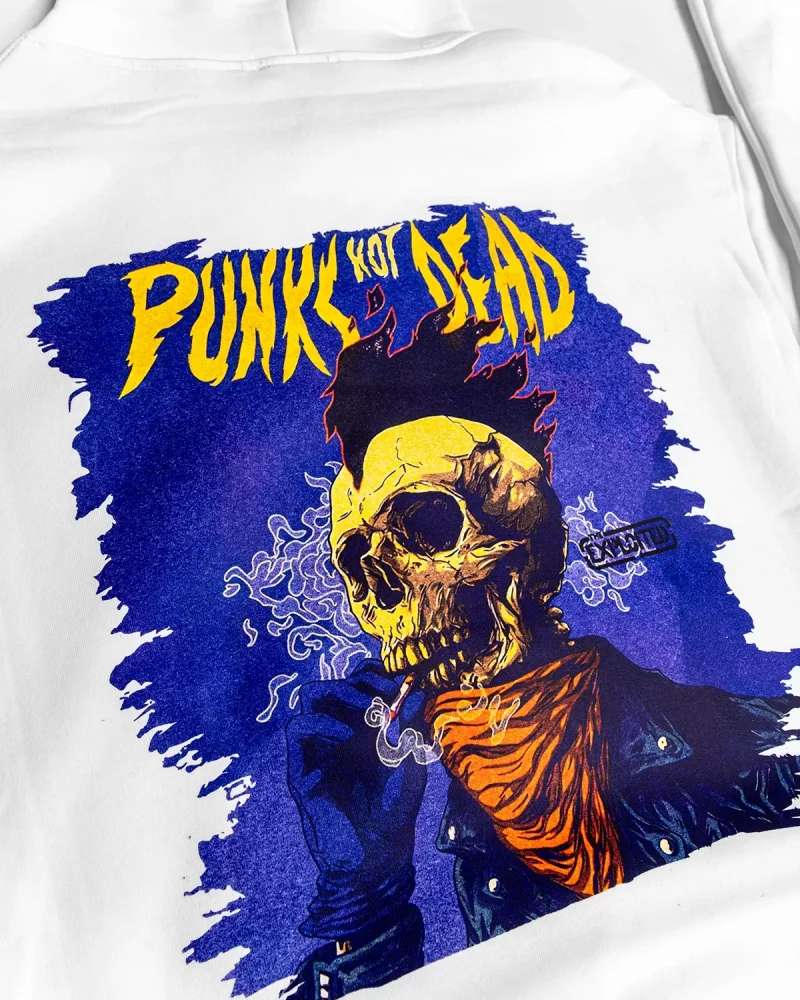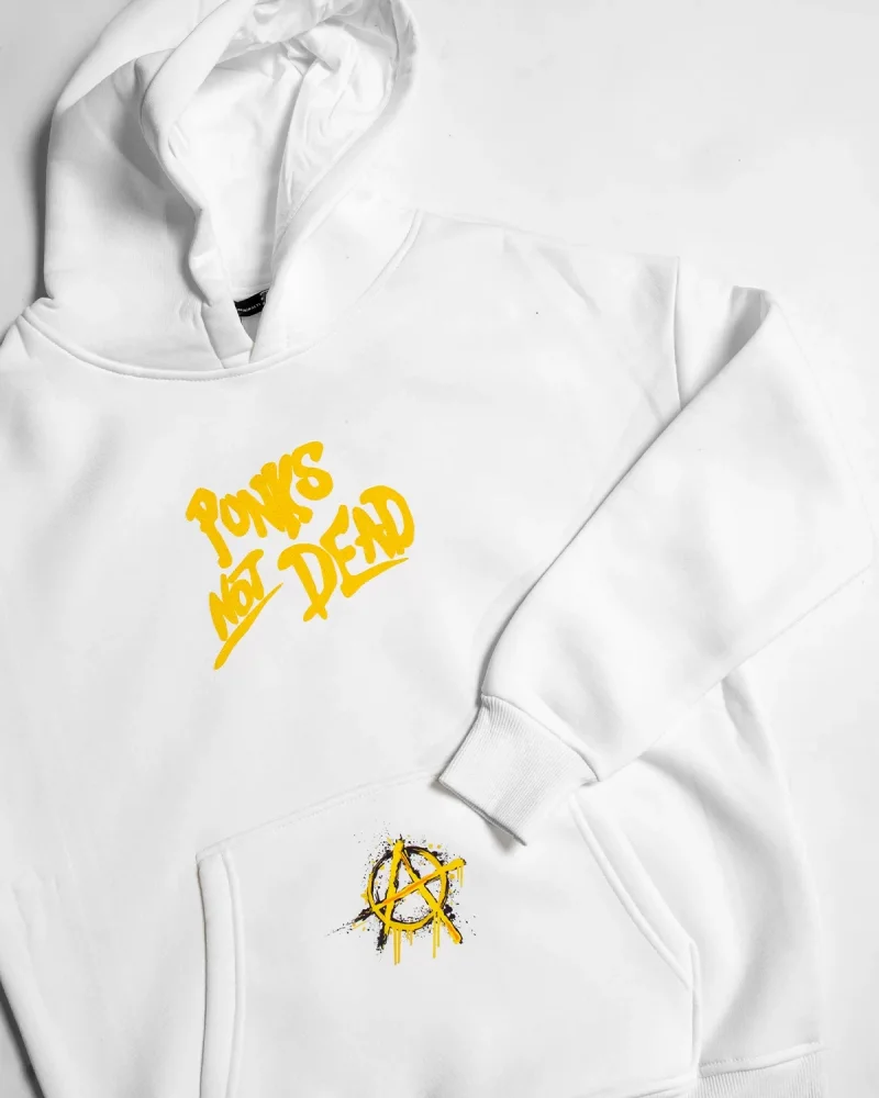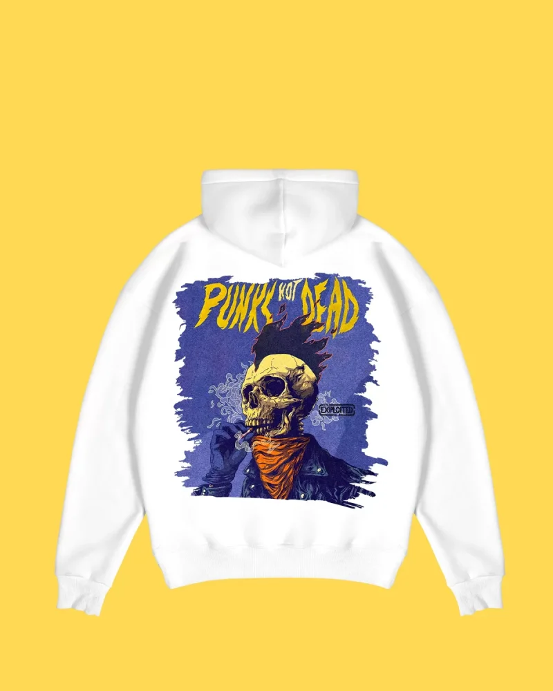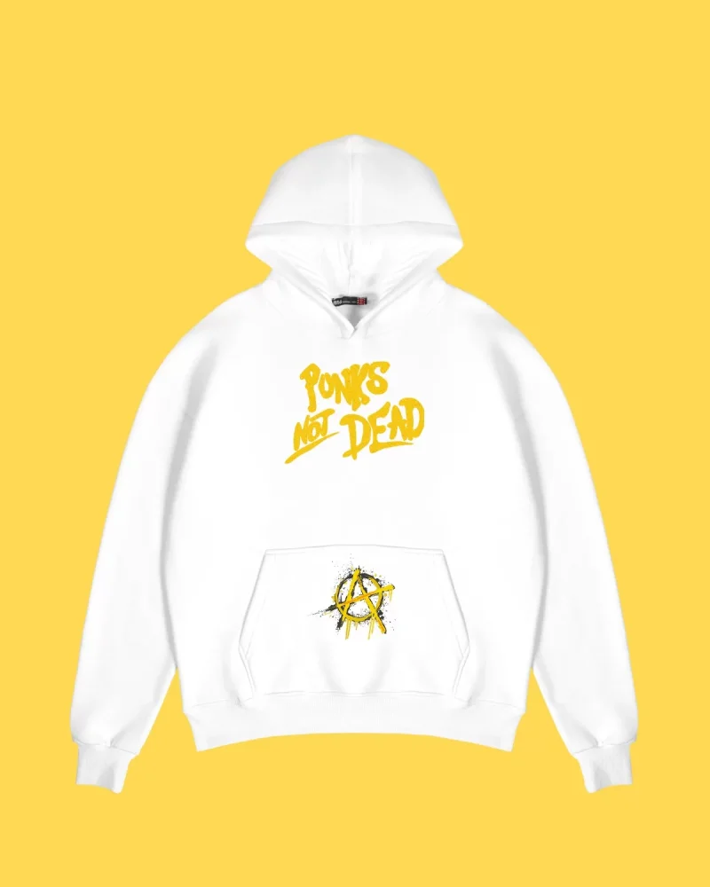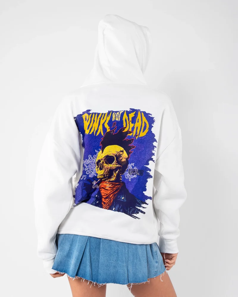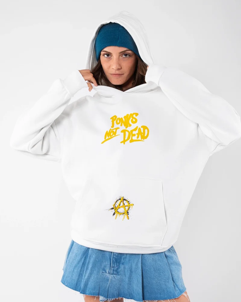 Punks Not Dead Baskılı Oversize Unisex Beyaz Hoodie