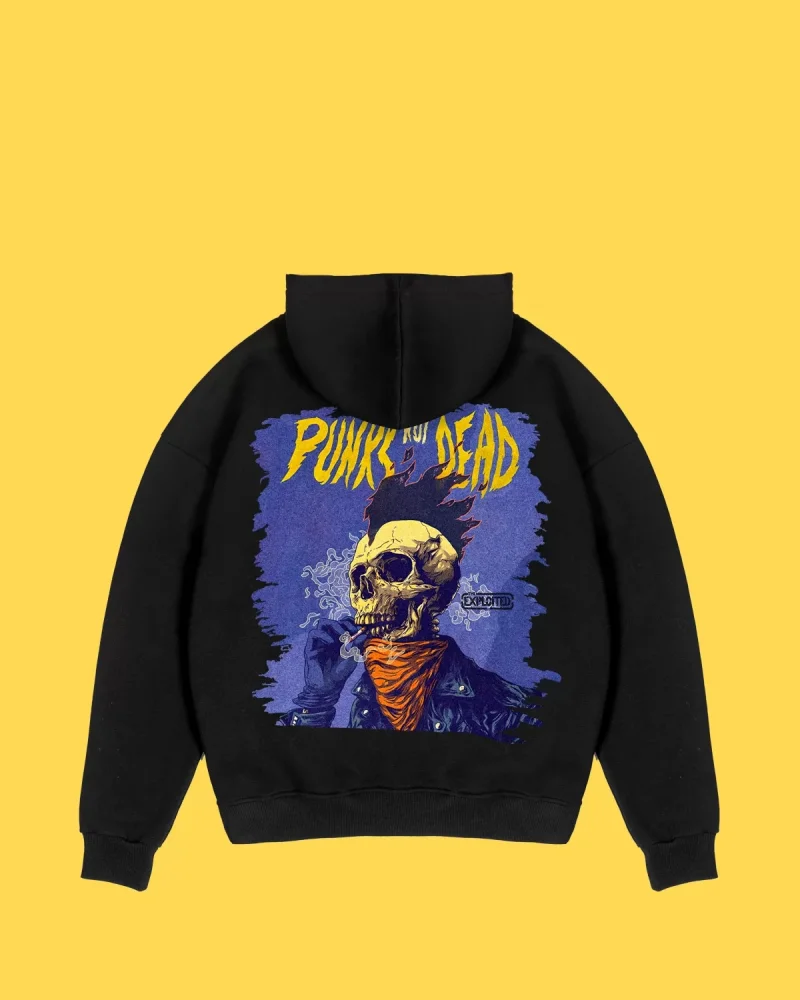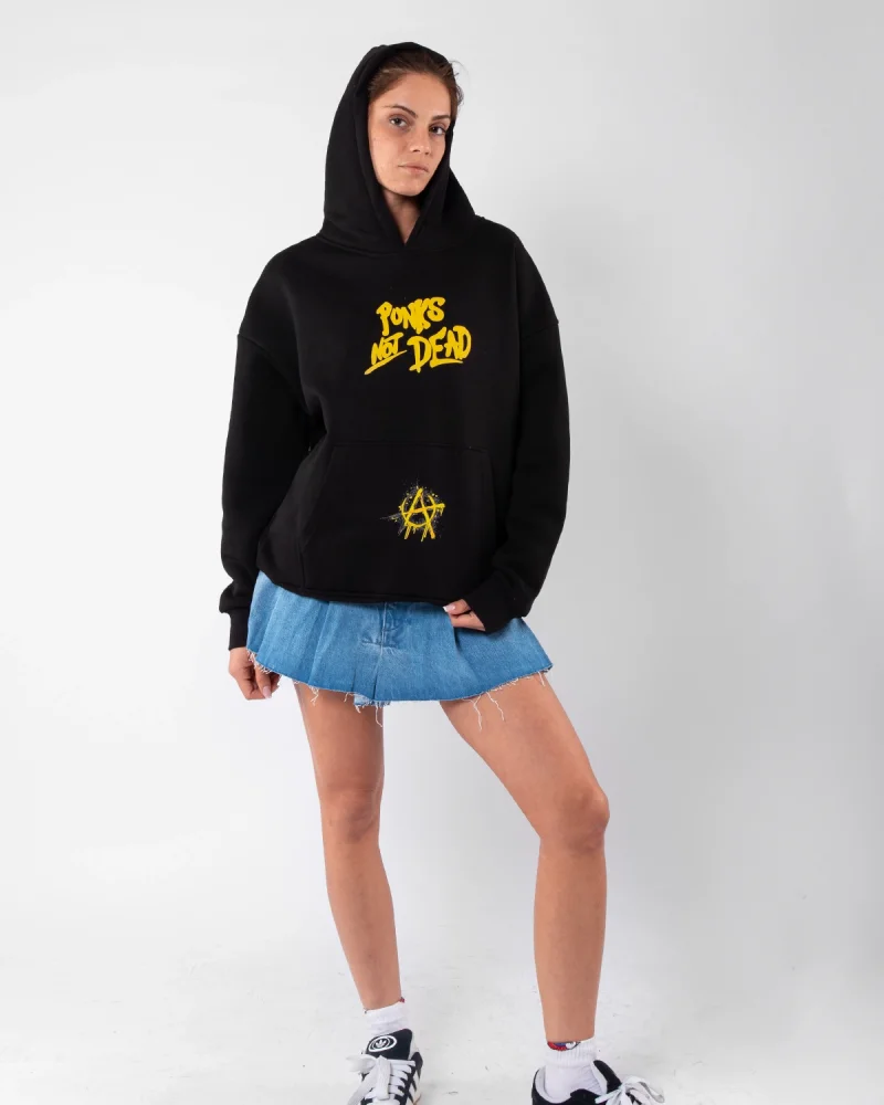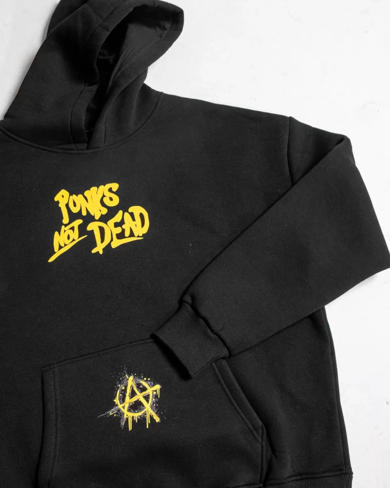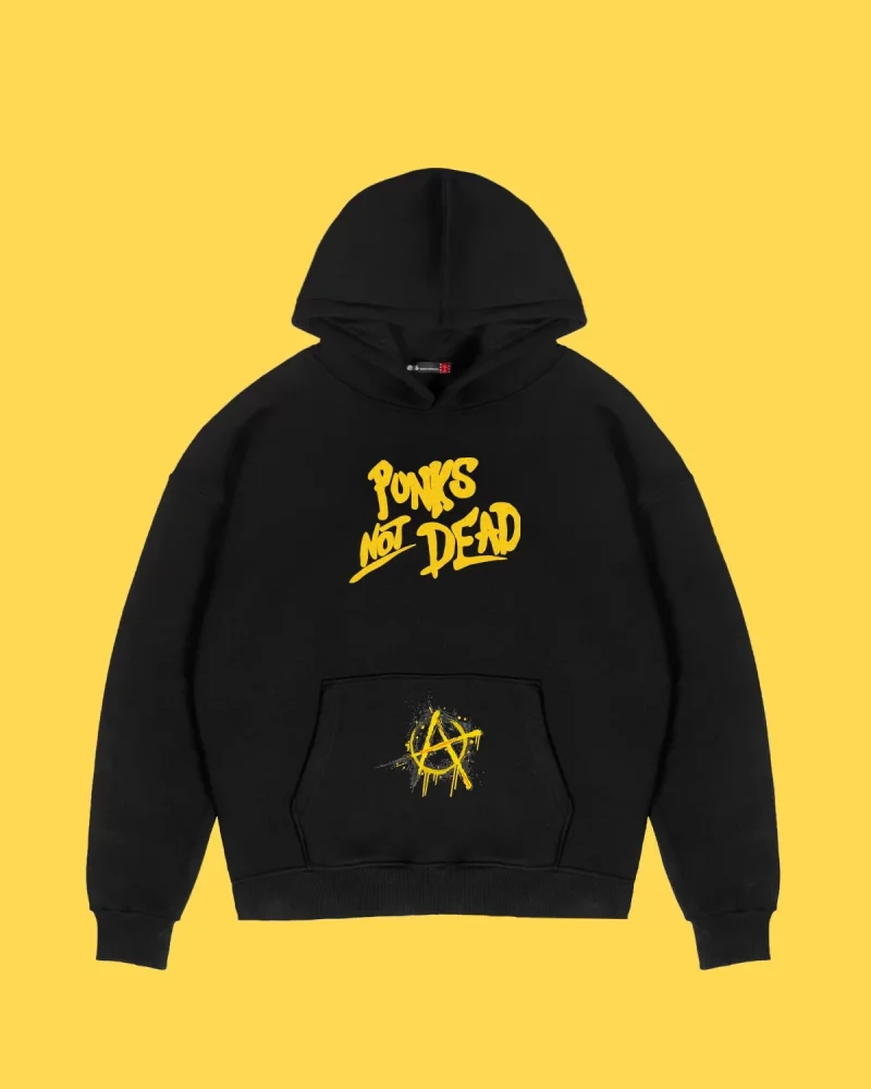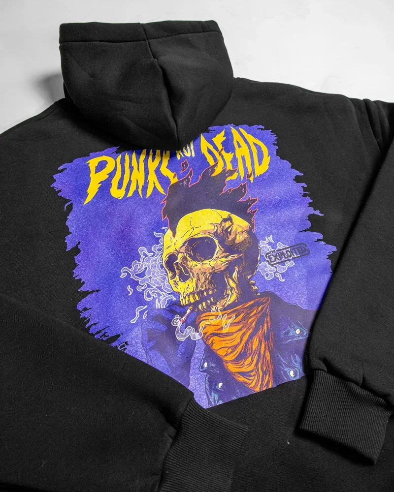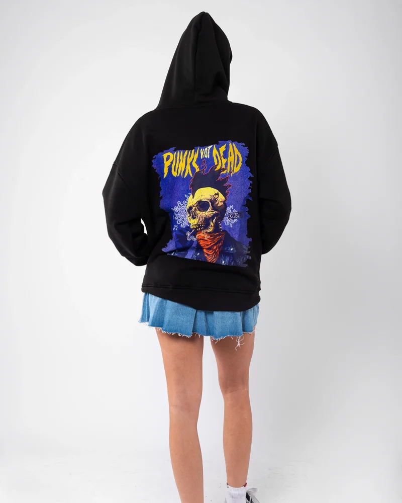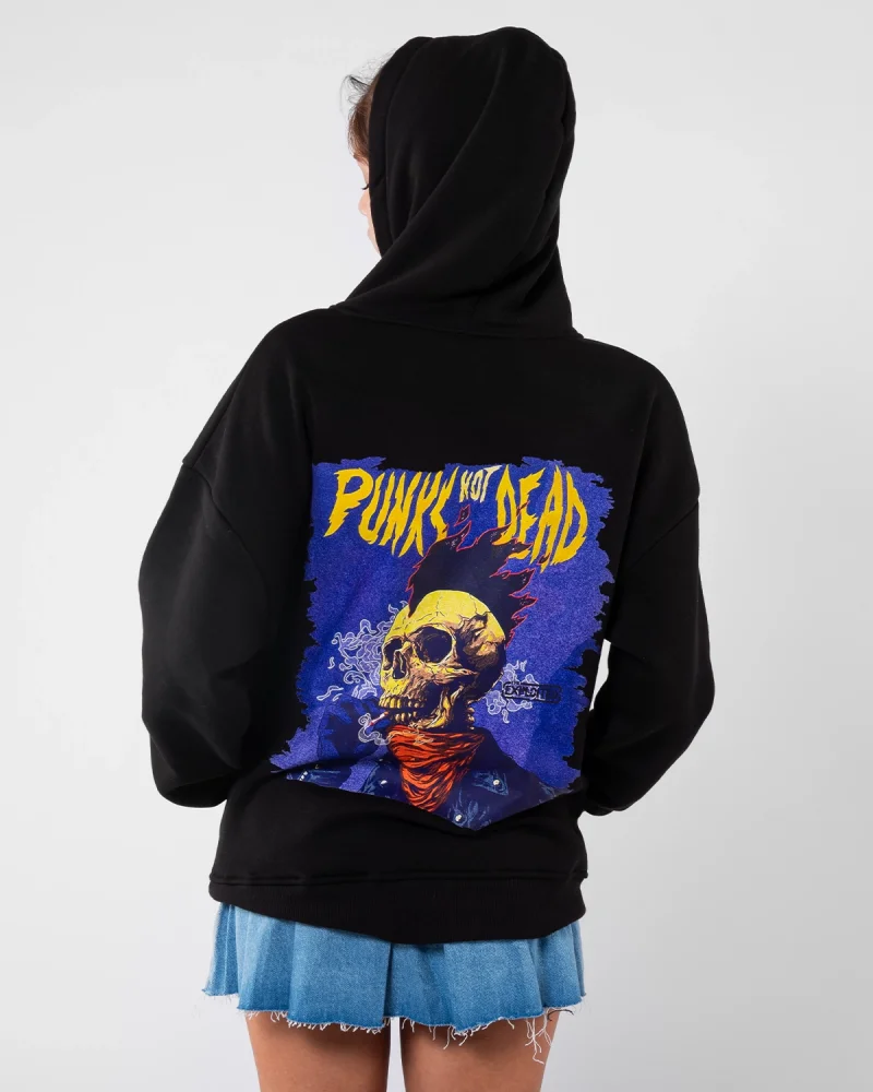 Punks Not Dead Baskılı Oversize Unisex Siyah Hoodie
