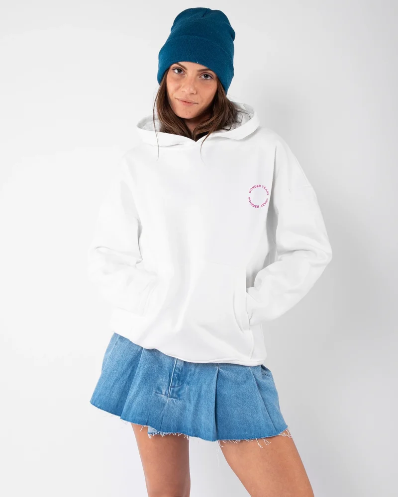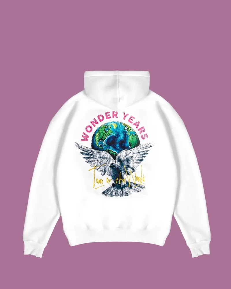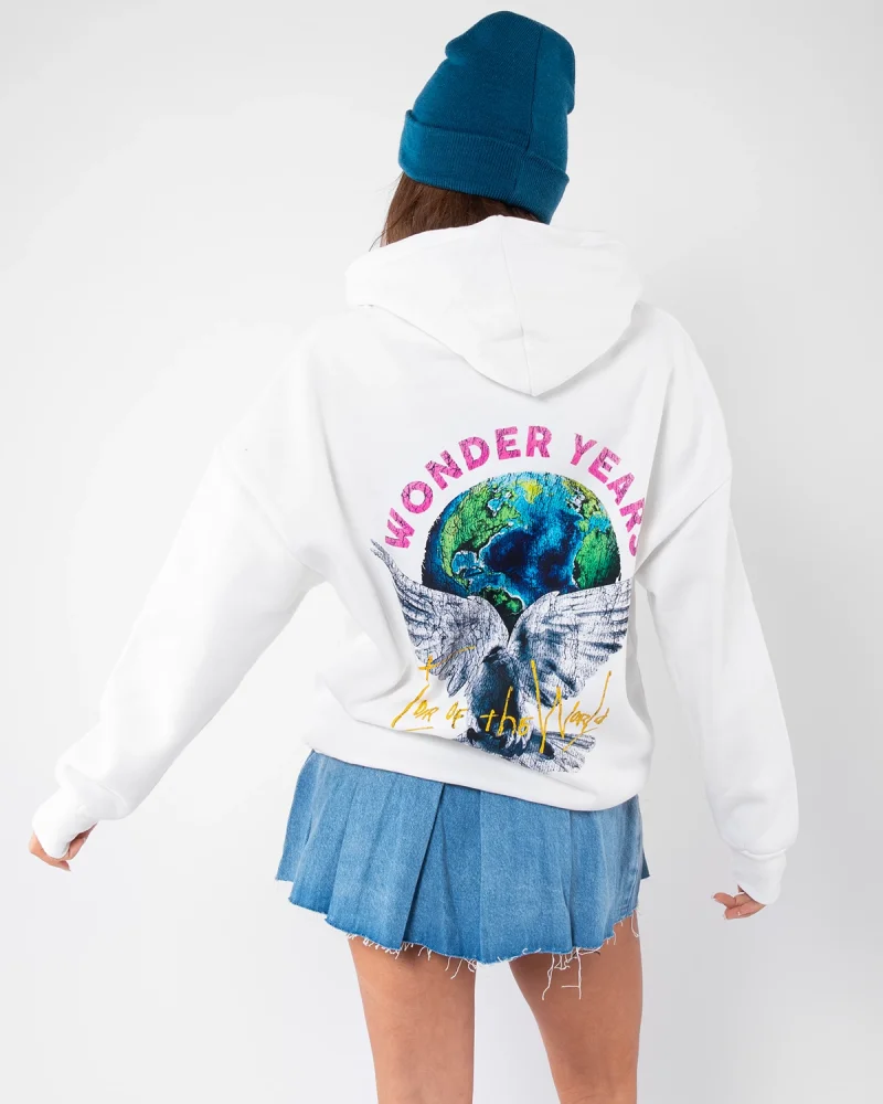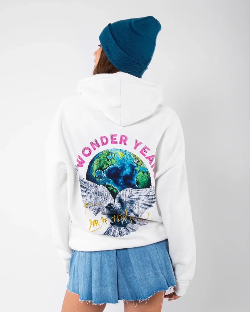 Wonder Years Baskılı Oversize Unisex Beyaz Hoodie