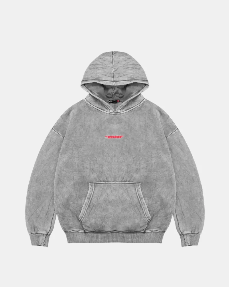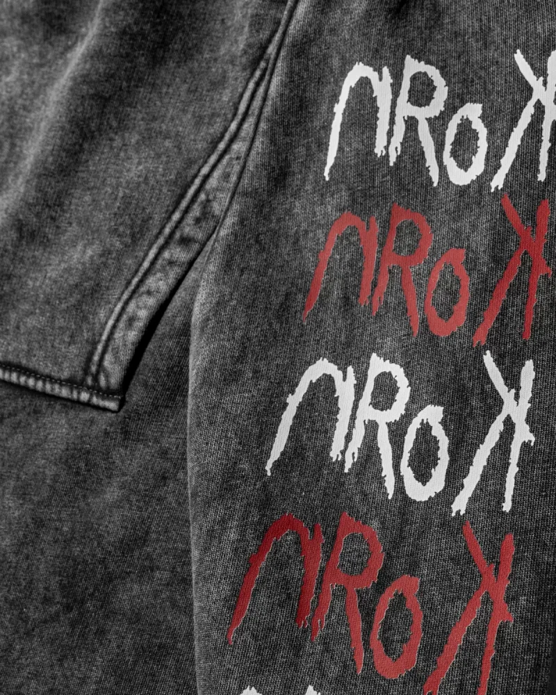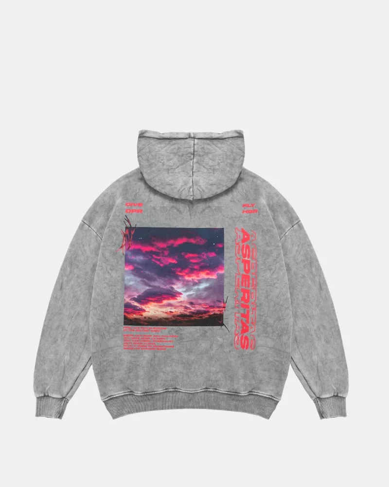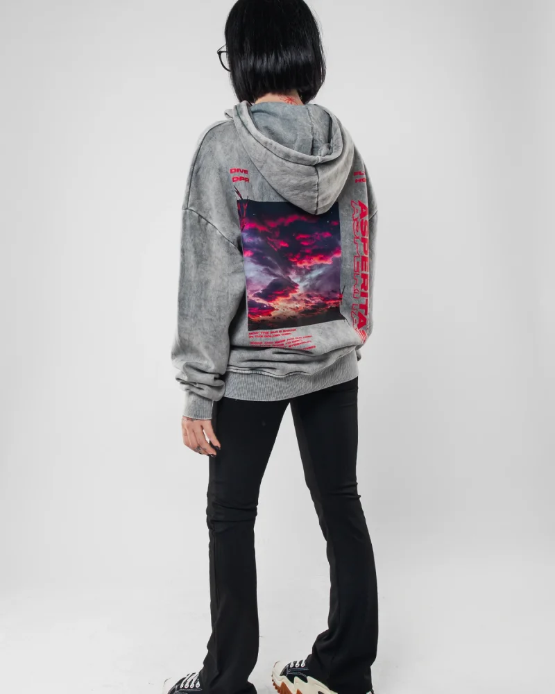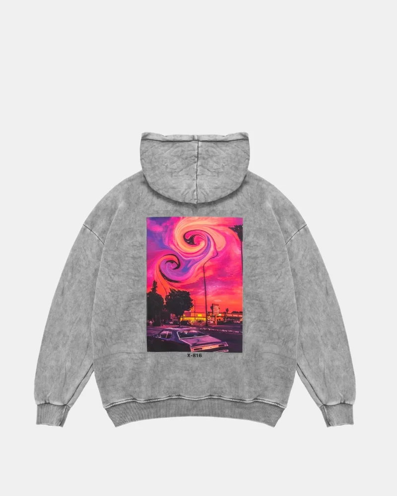 Yıkamalı Beyaz Kırmızı Dusk Baskılı Oversize Unisex Hoodie