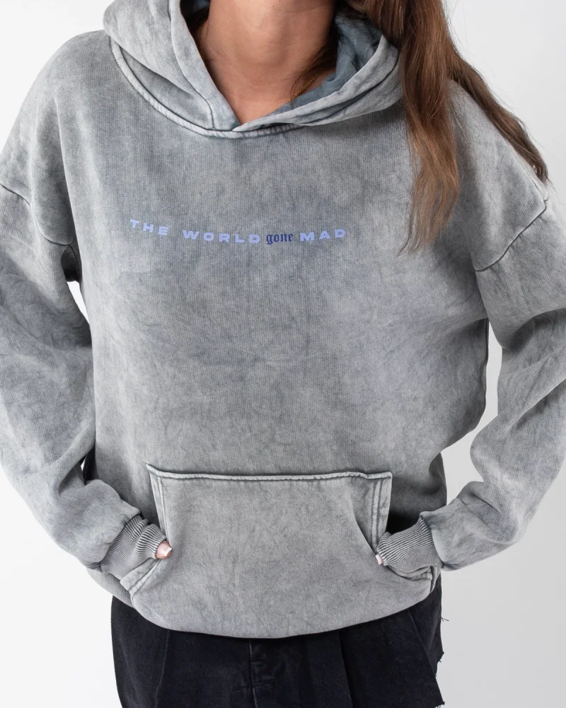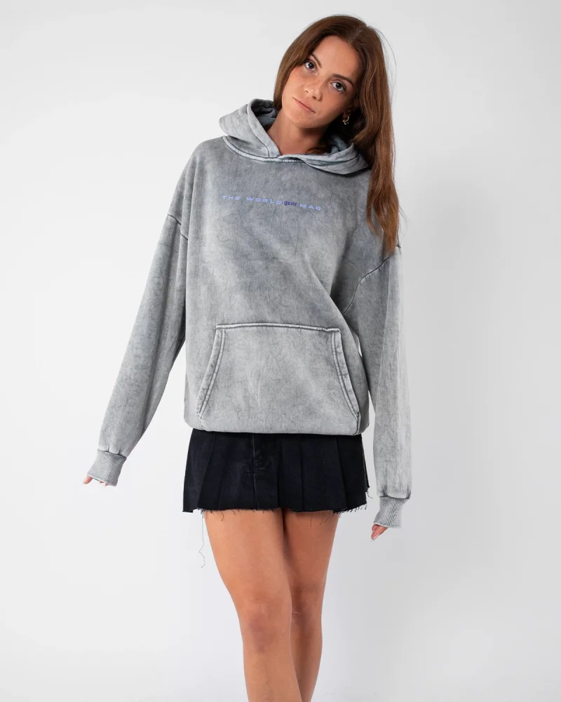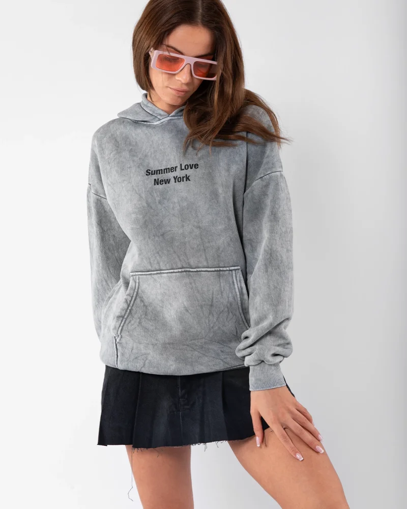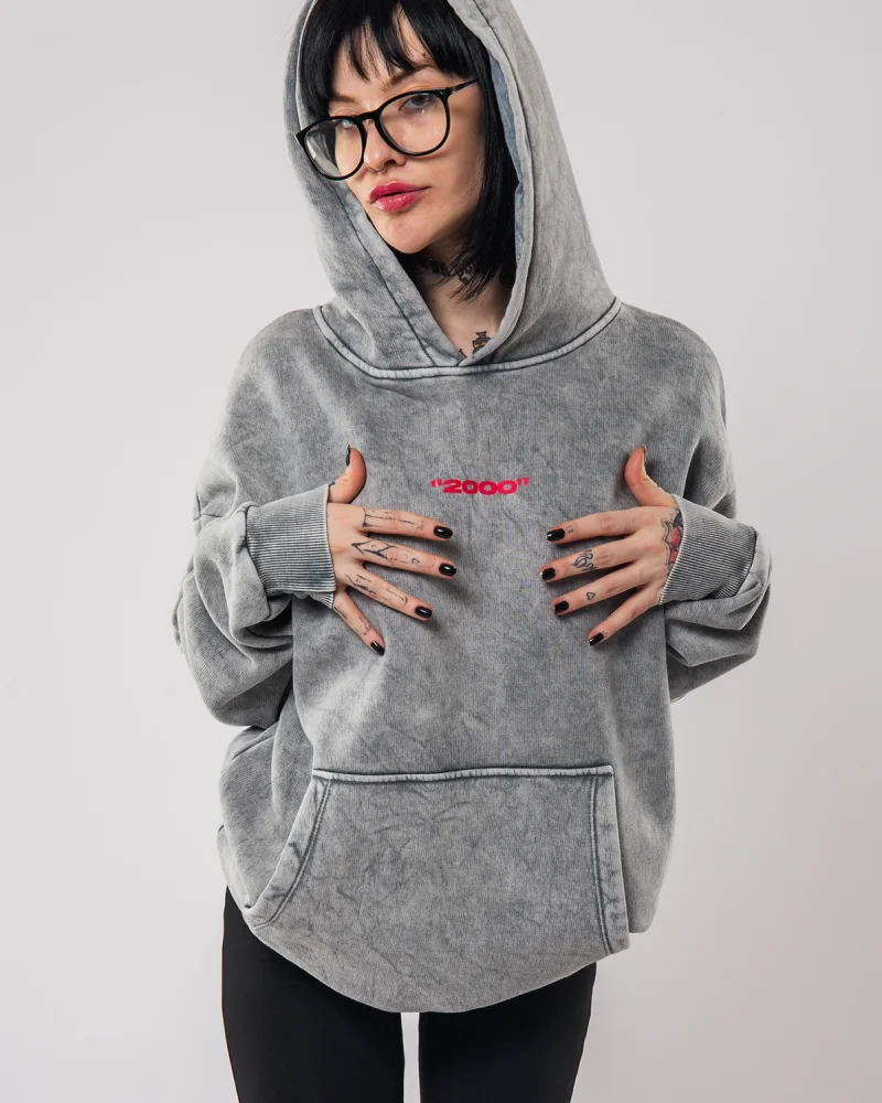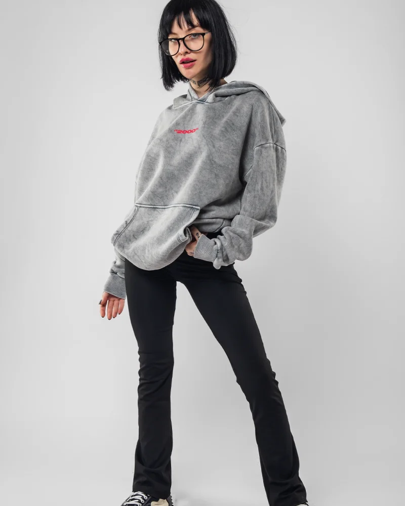 Yıkamalı Eternal Text Baskılı Oversize Unisex Füme Hoodie