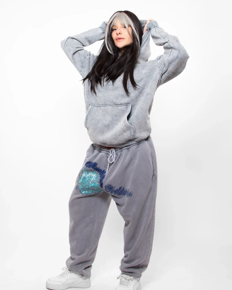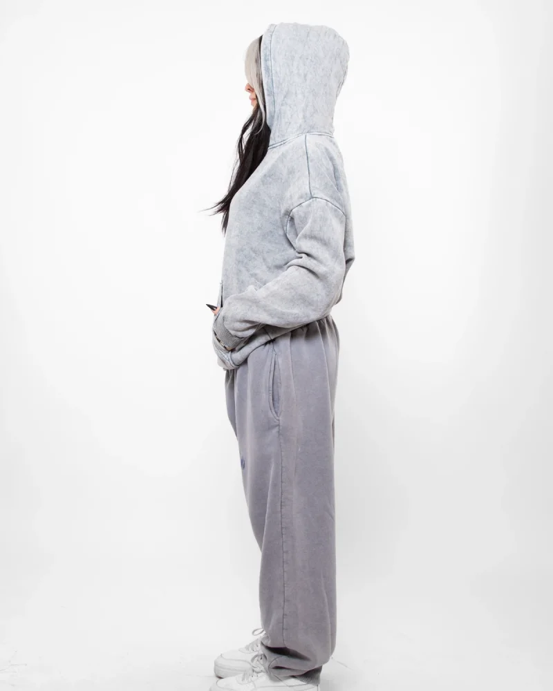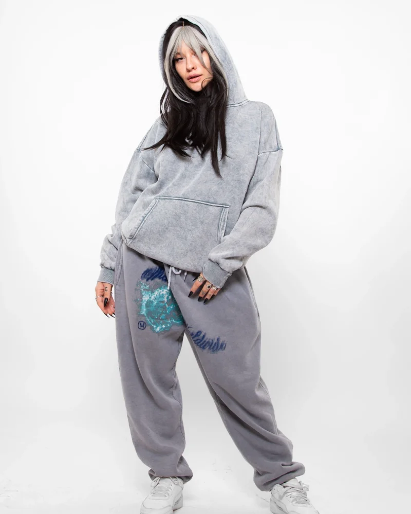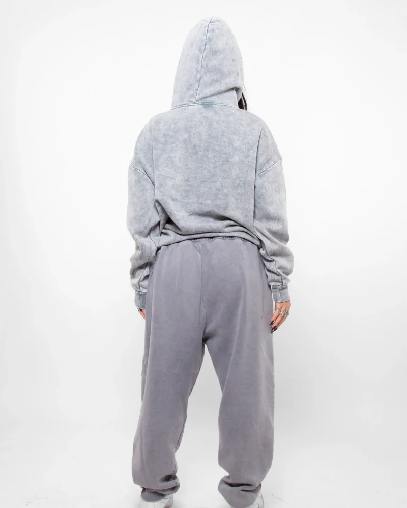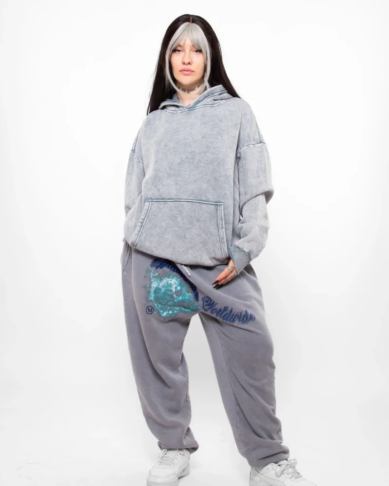 Yıkamalı Eternal Text Baskılı Oversize Unisex Füme Hoodie