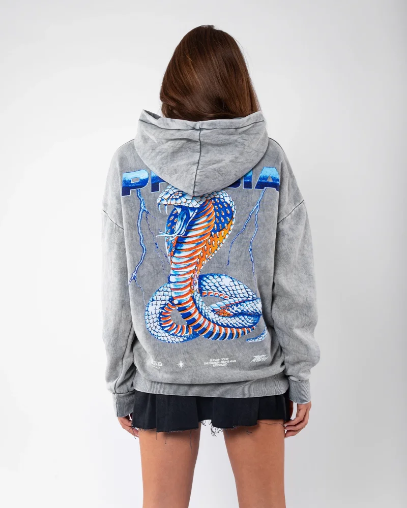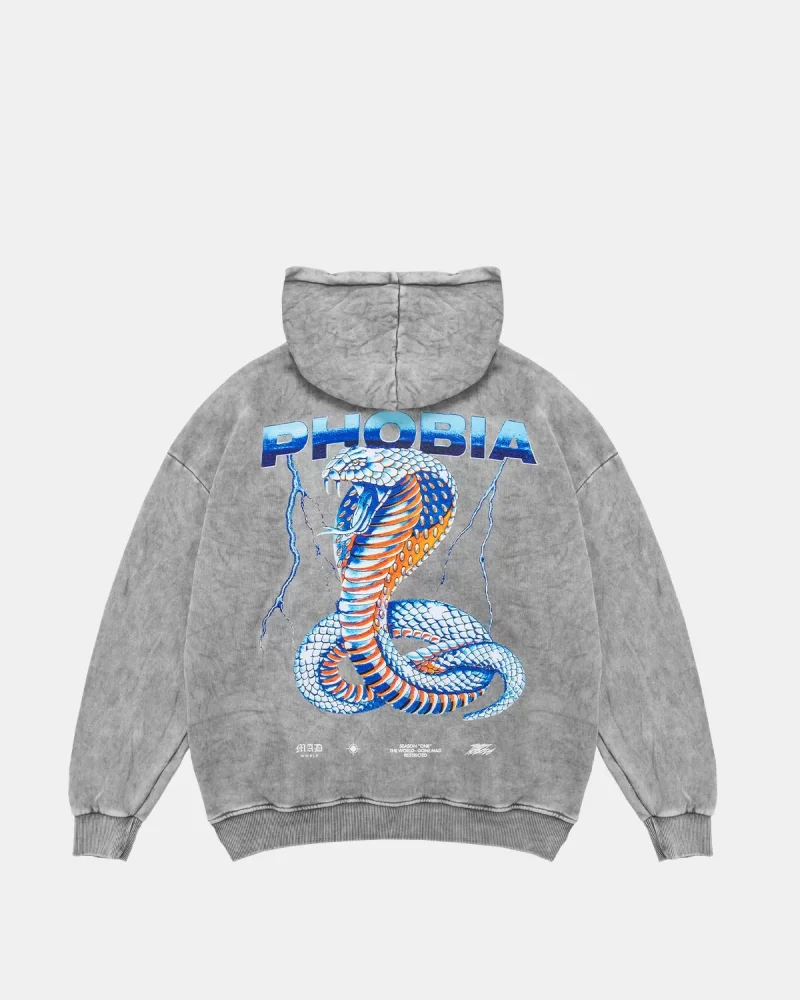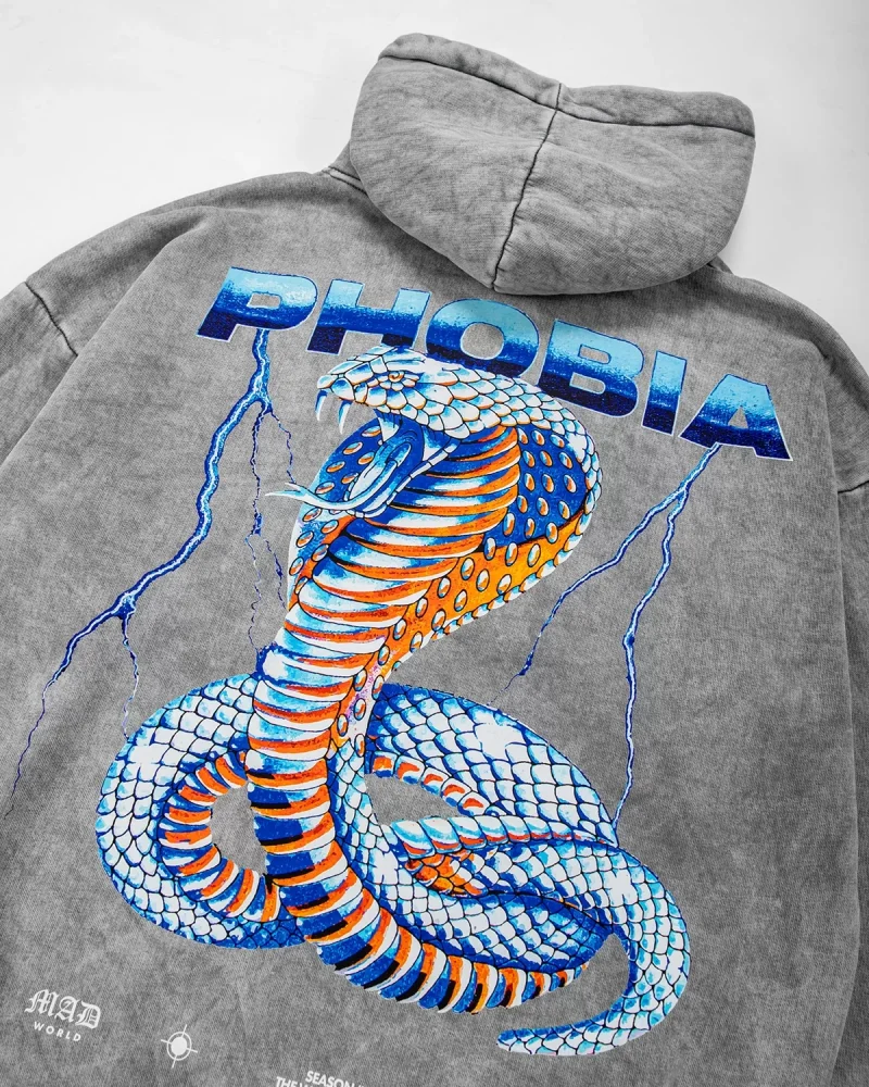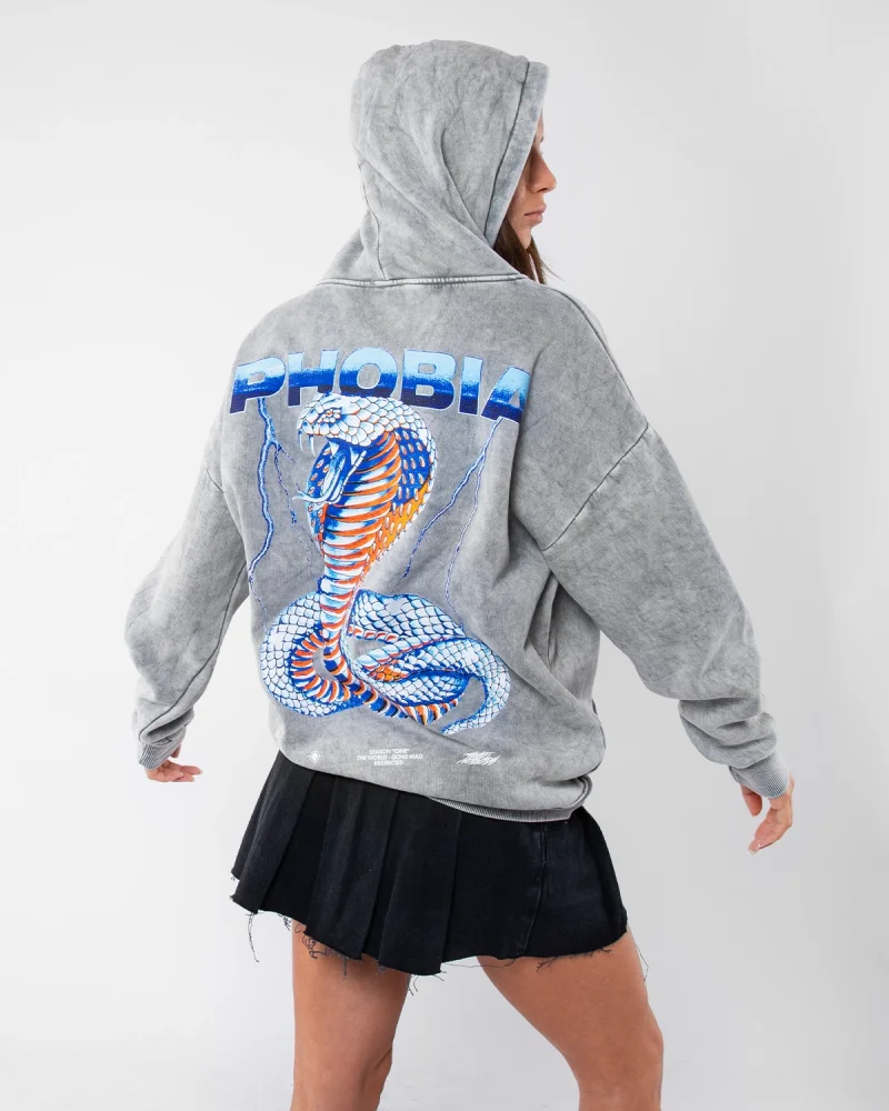 Yıkamalı Beyaz Phobia Sırt Baskılı Unisex Oversize Hoodie