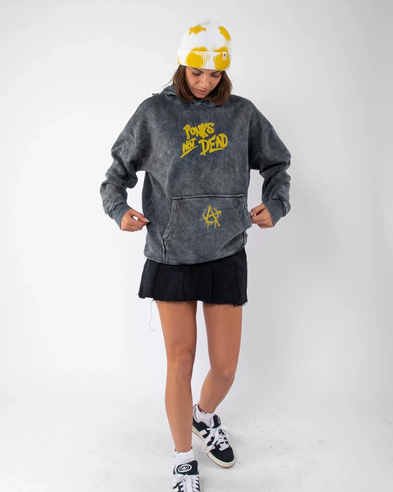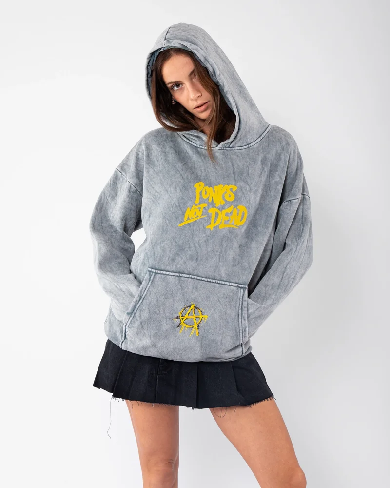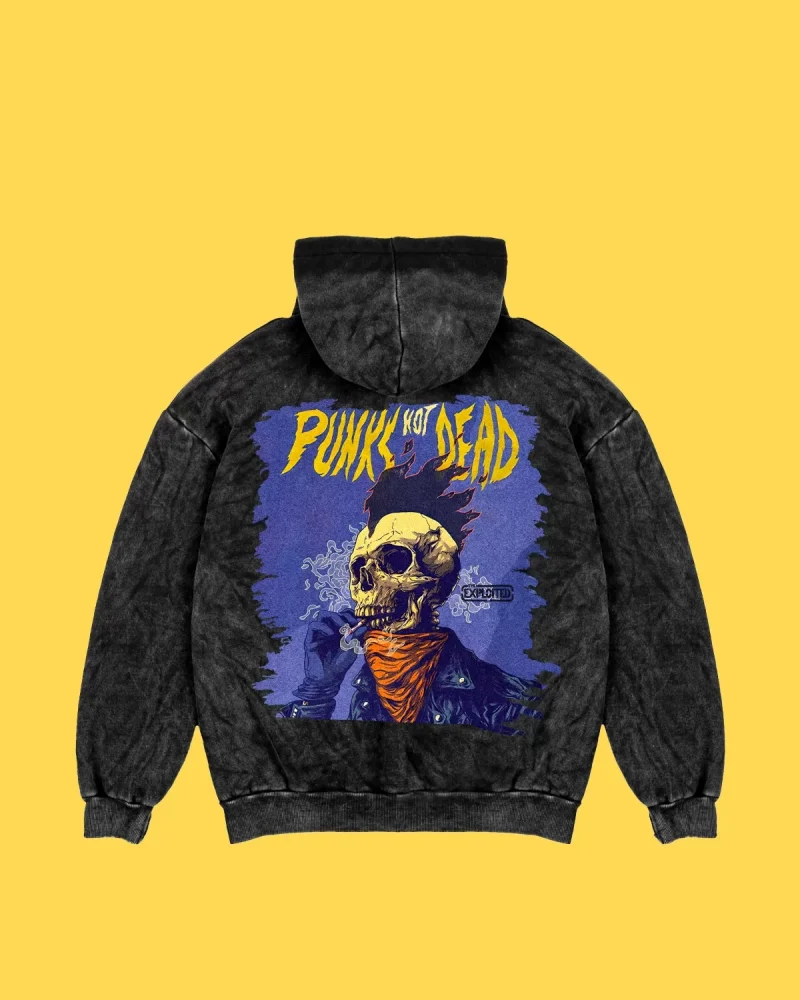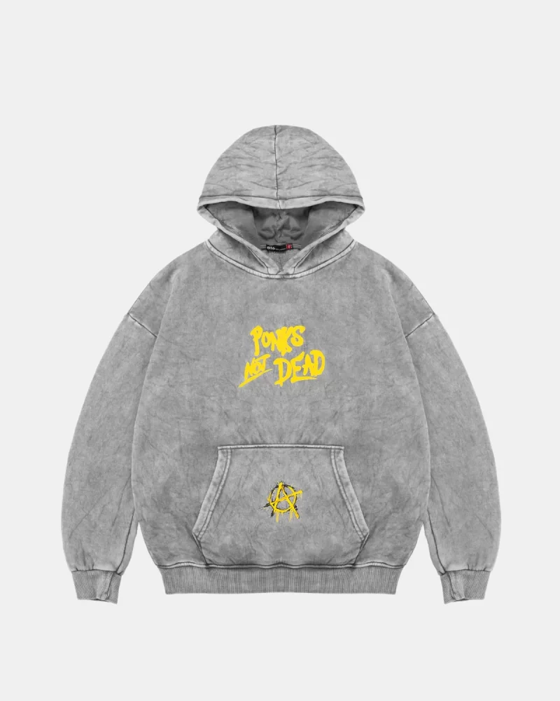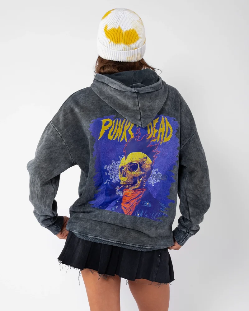 Yıkamalı Punks Not Dead Baskılı Oversize Unisex Siyah Hoodie