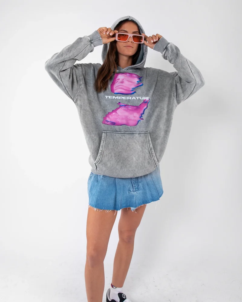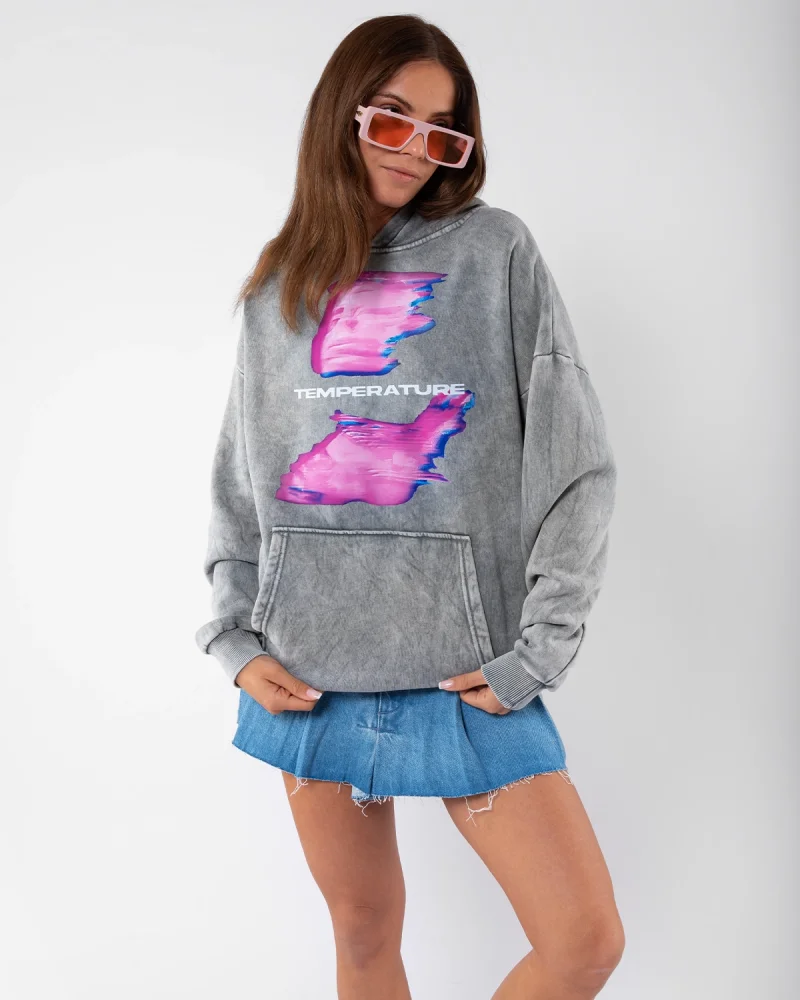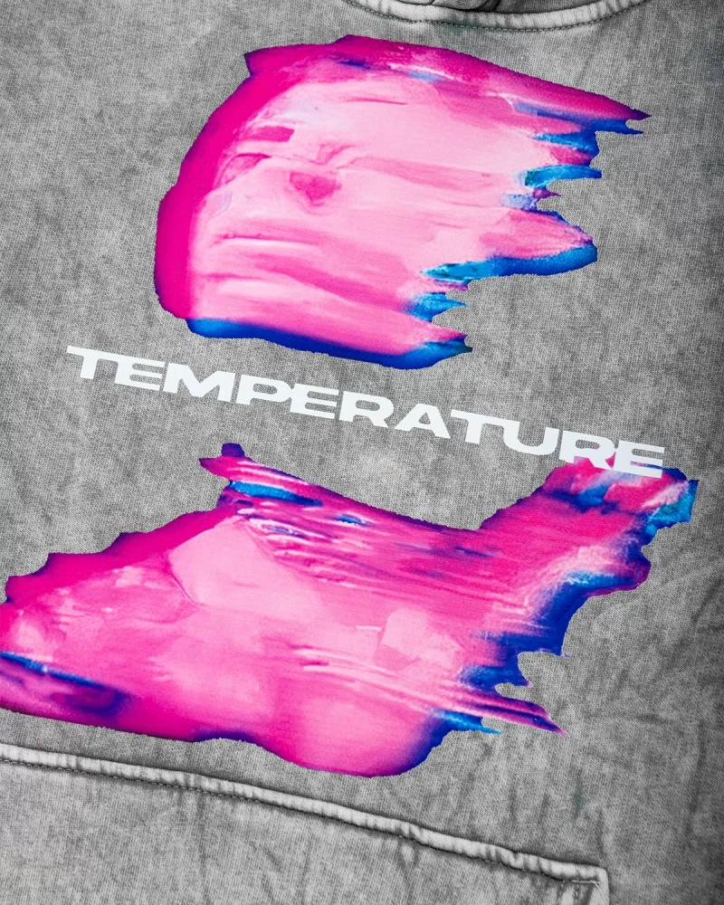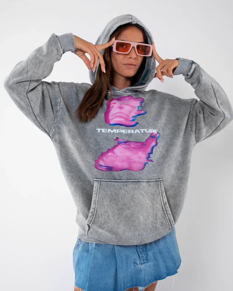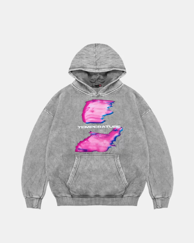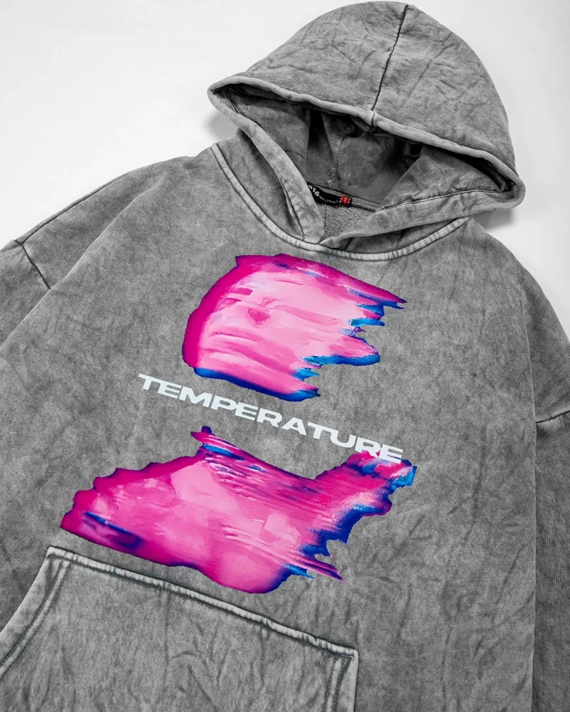 Yıkamalı Beyaz Temperature Baskılı Oversize Unisex Hoodie