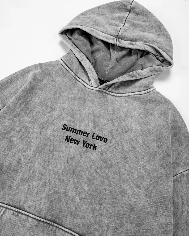 Yıkamalı Beyaz Summer Love Sırt Baskılı Oversize Unisex Hoodie