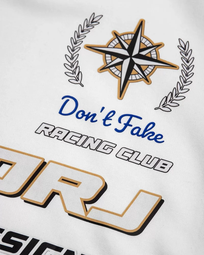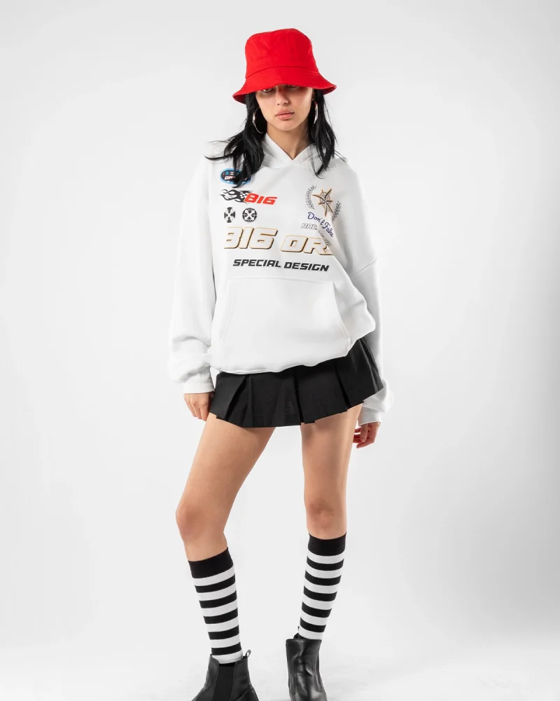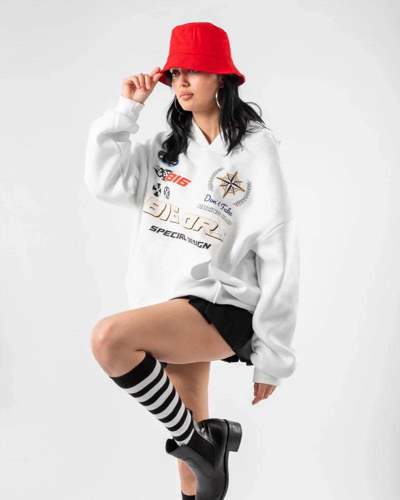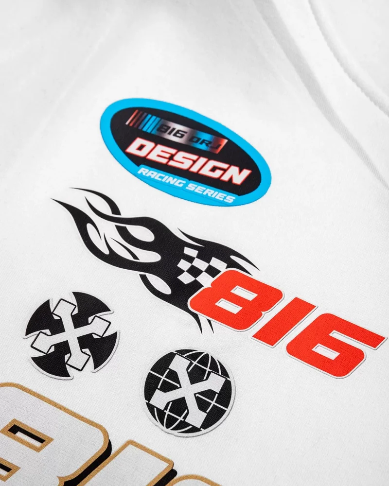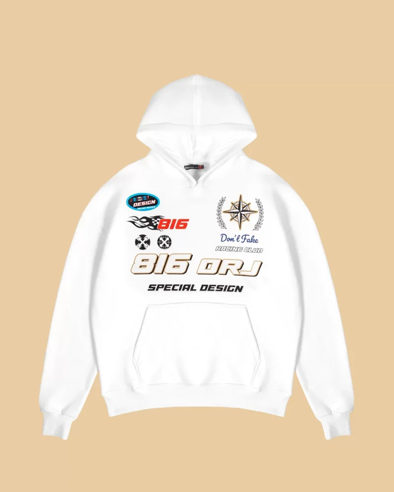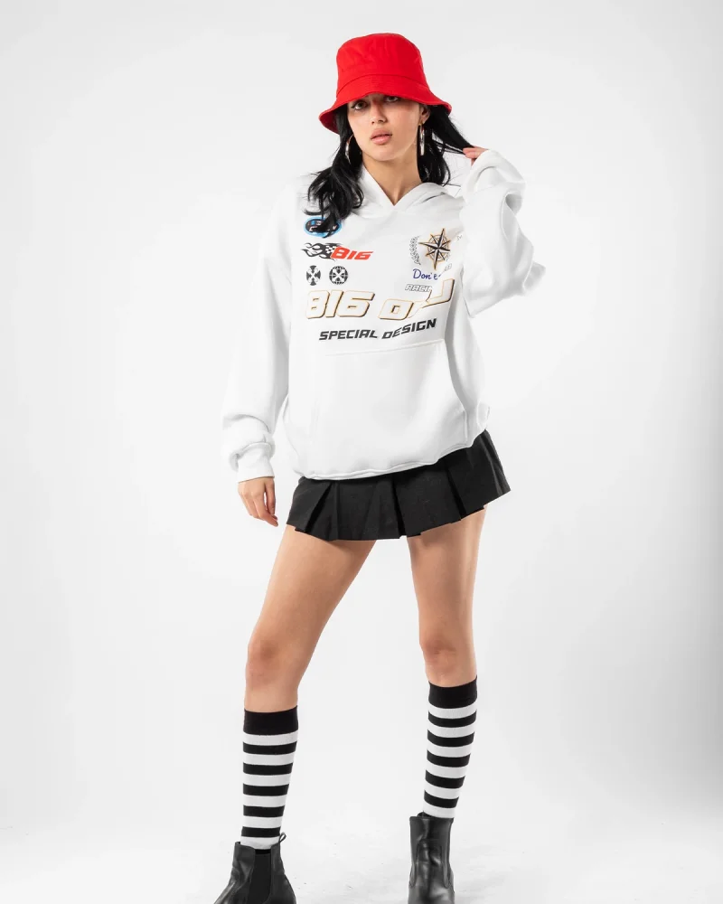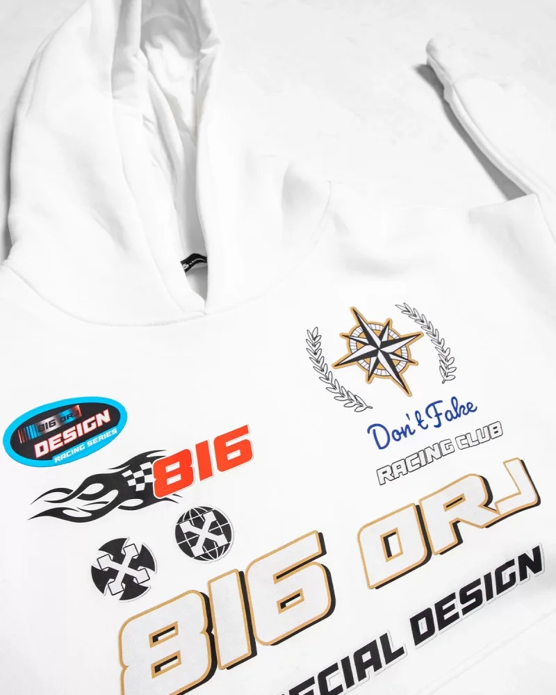 816 Racing Baskılı Oversize Unisex Beyaz Hoodie