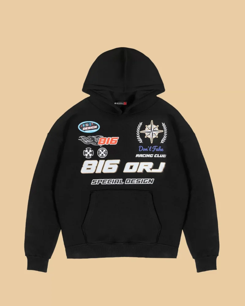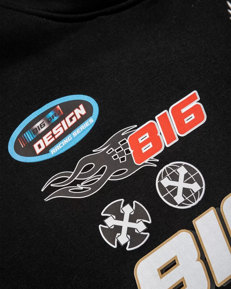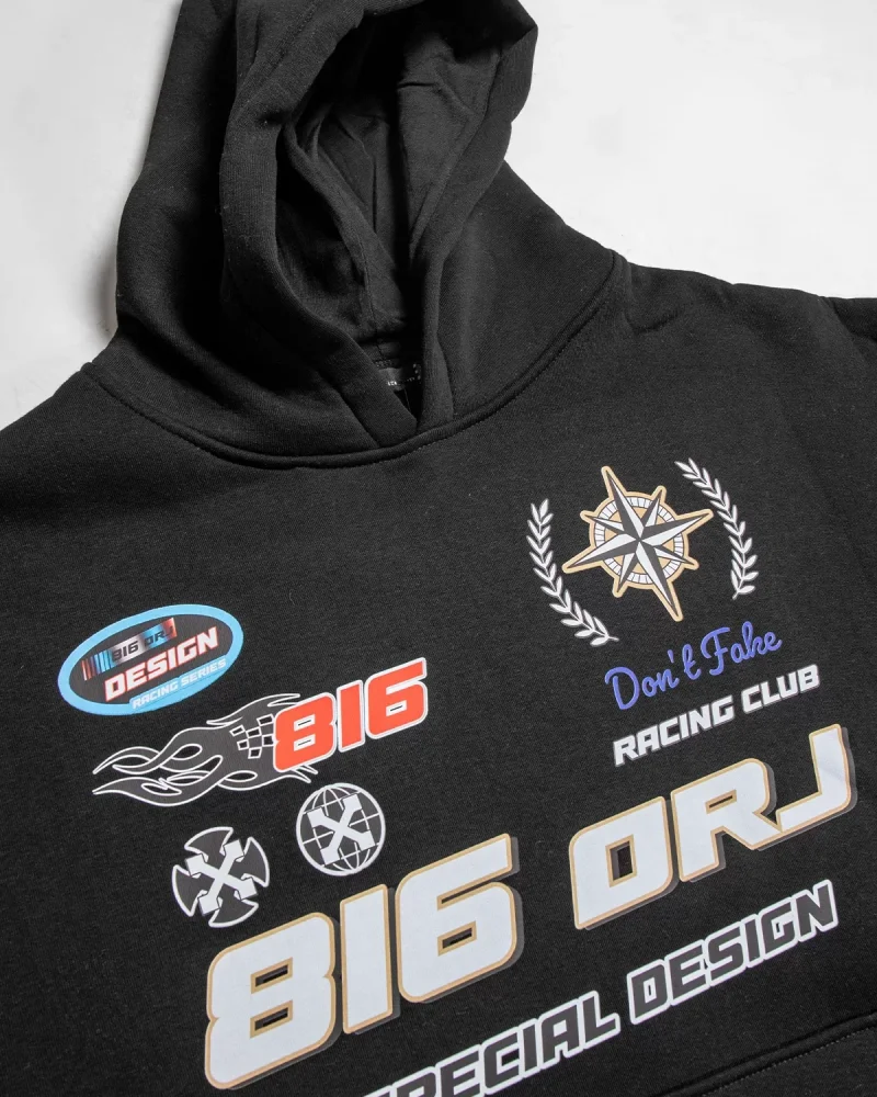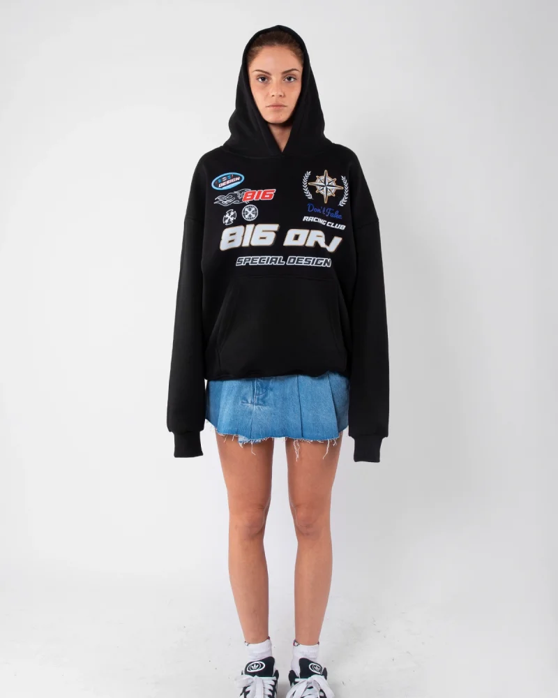 816 Racing Baskılı Oversize Unisex Siyah Hoodie