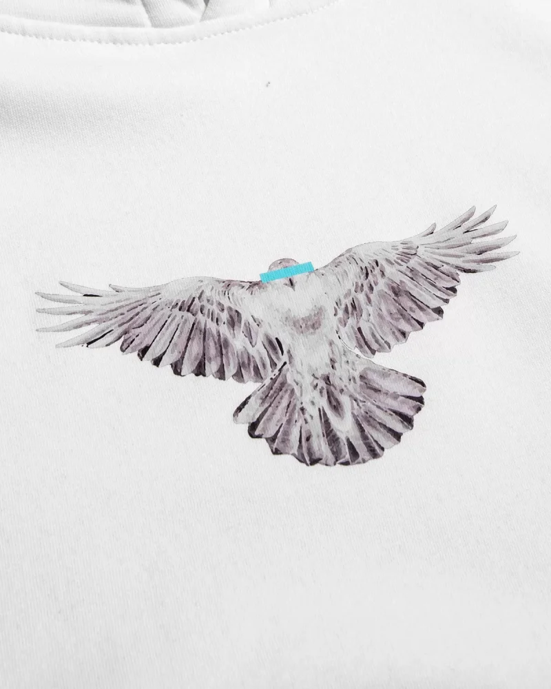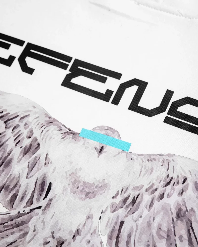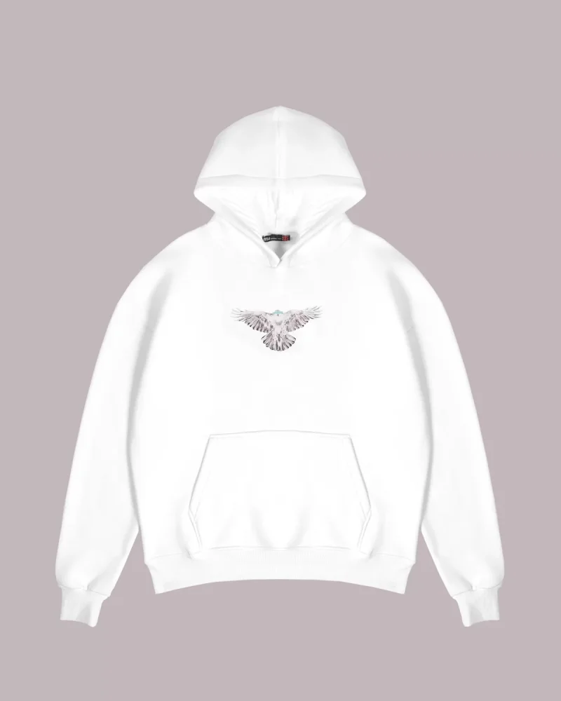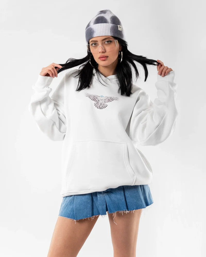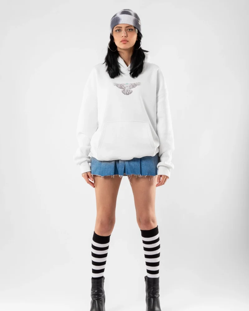 Defensive Crow Baskılı Oversize Unisex Beyaz Hoodie