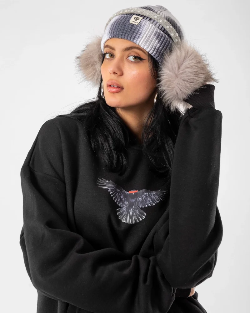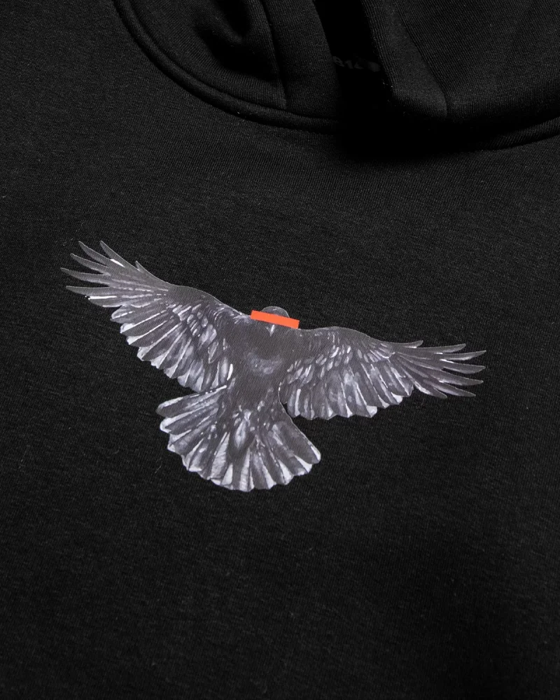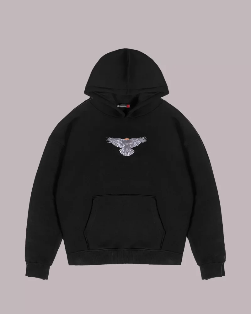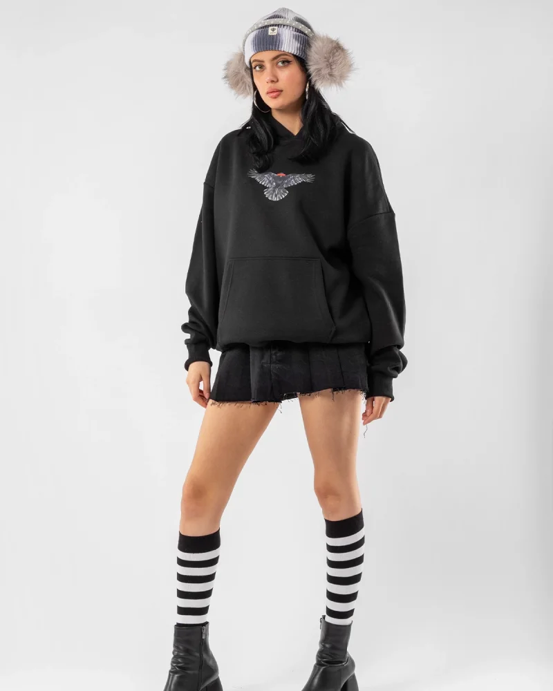 Defensive Crow Baskılı Oversize Unisex Siyah Hoodie