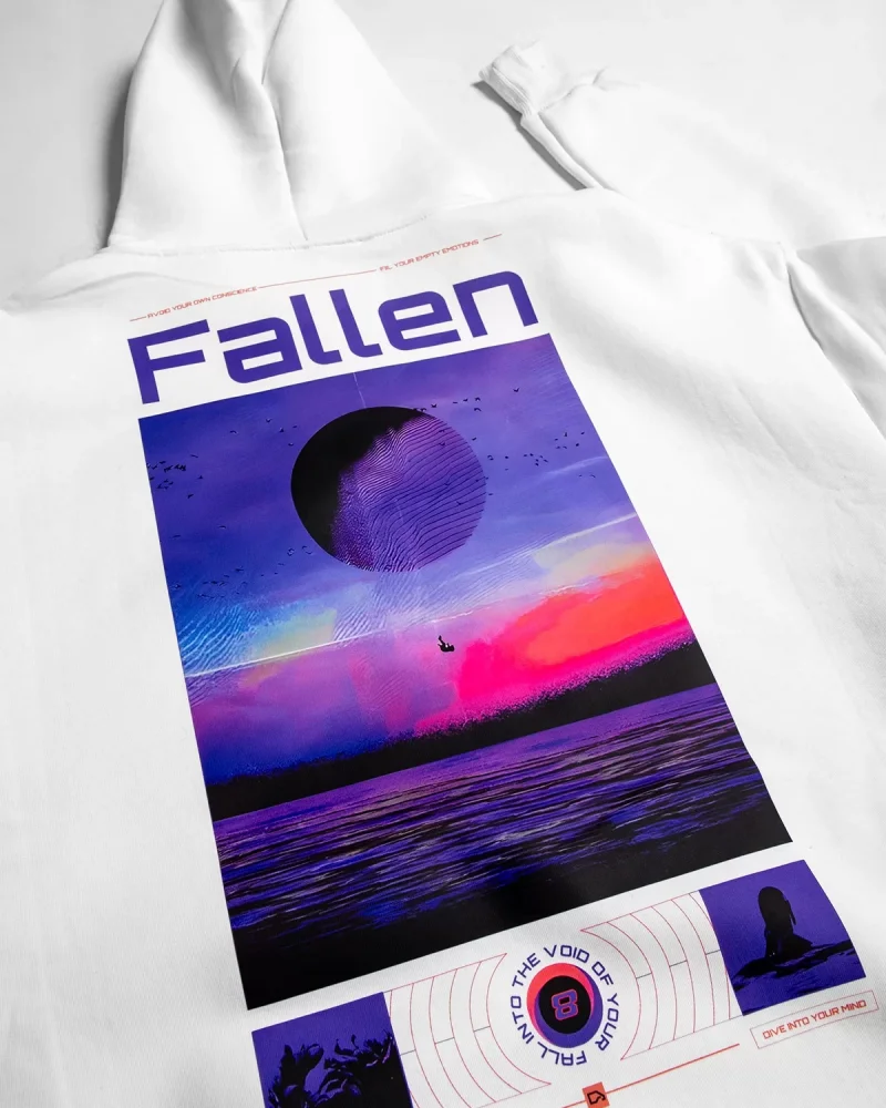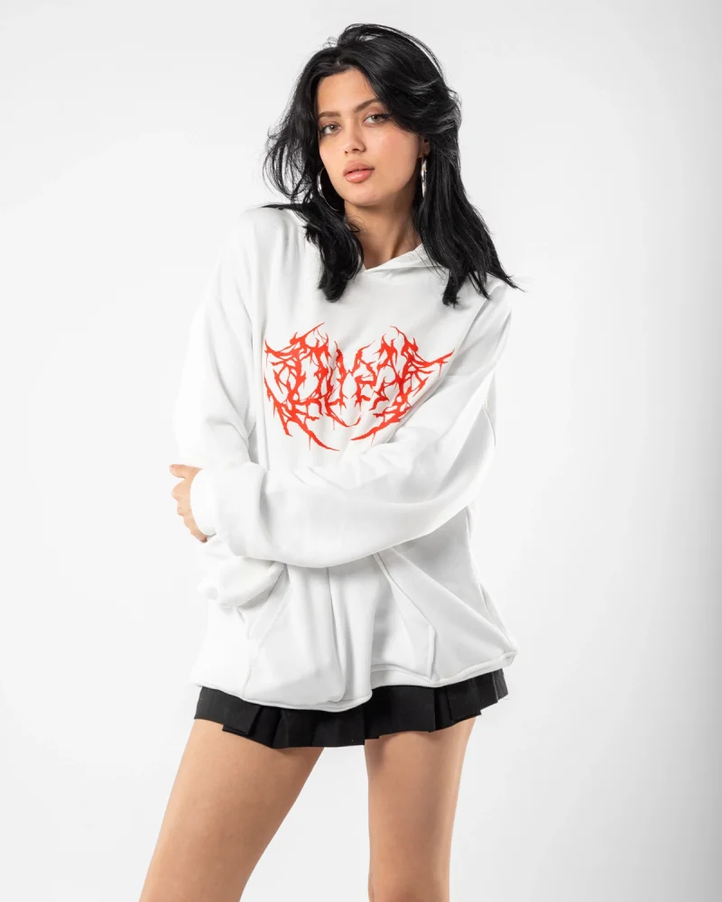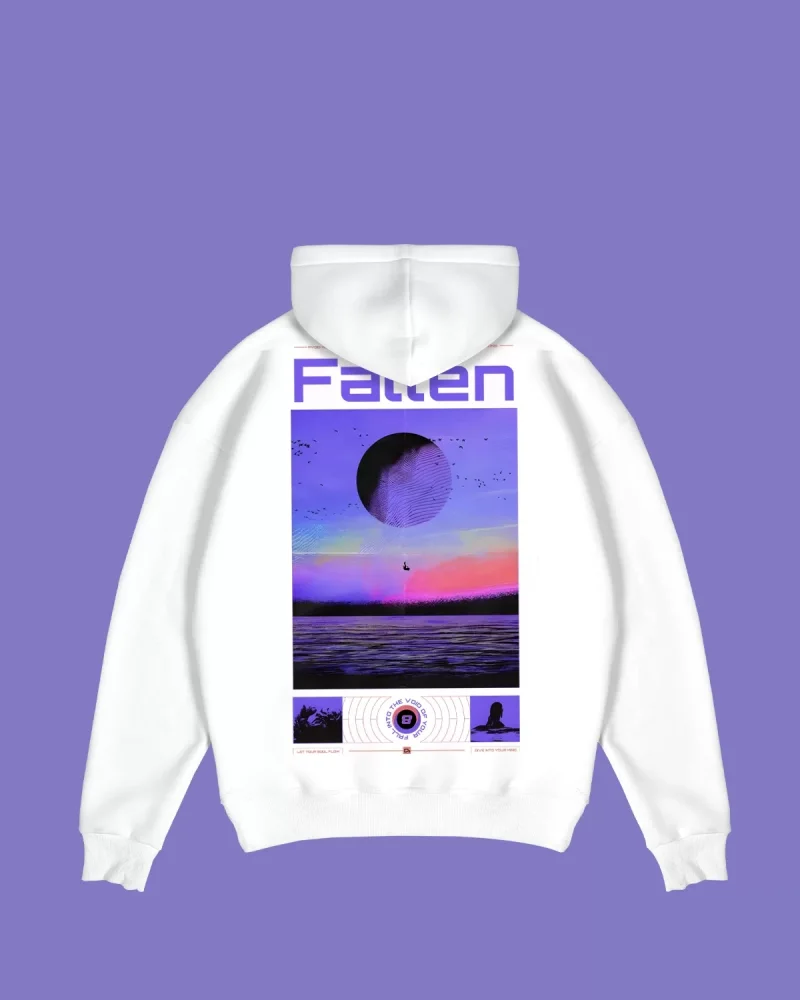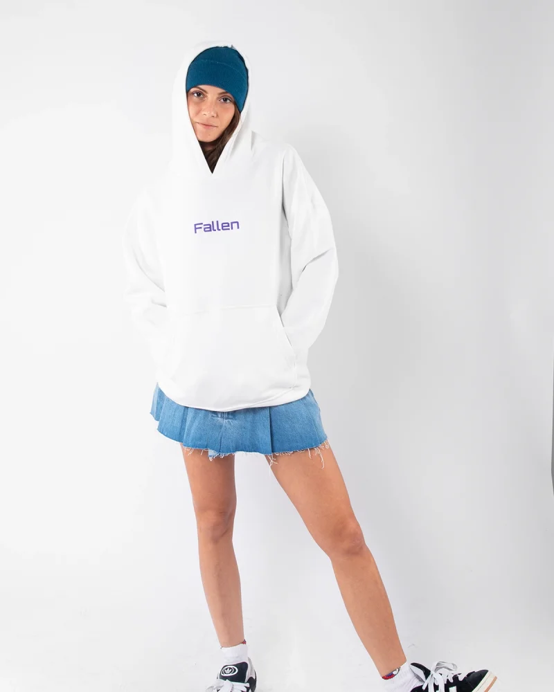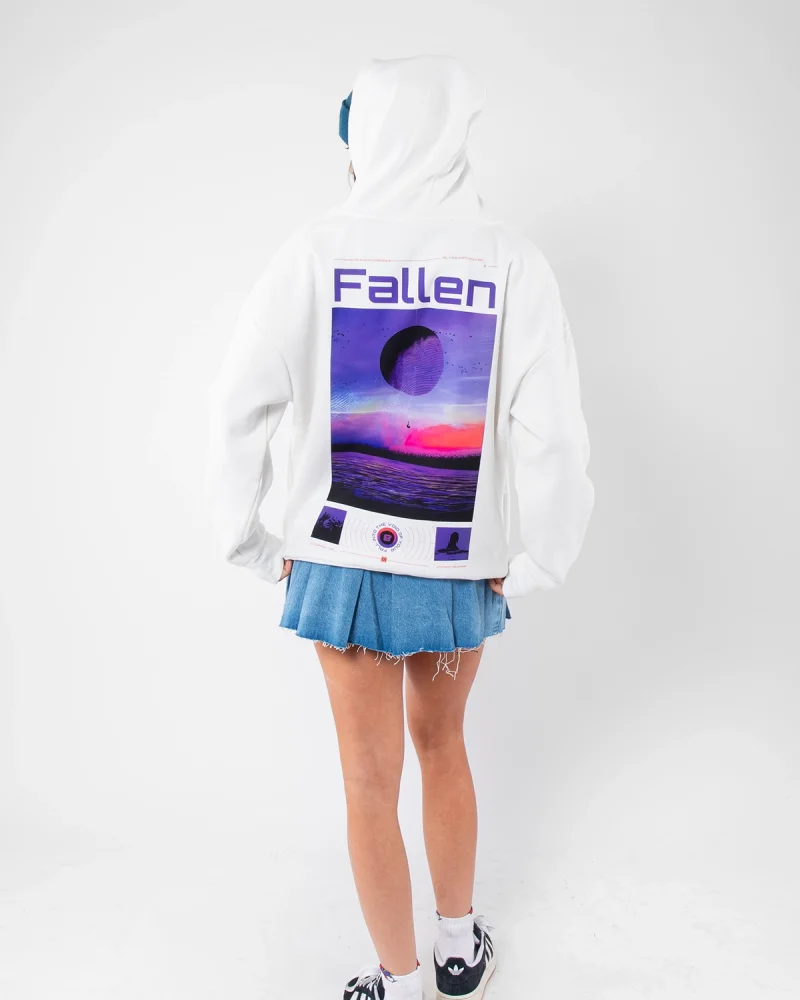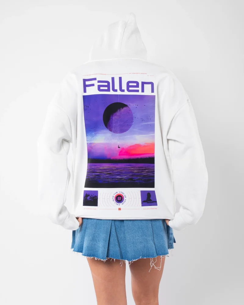 Fallen Baskılı Oversize Unisex Beyaz Hoodie