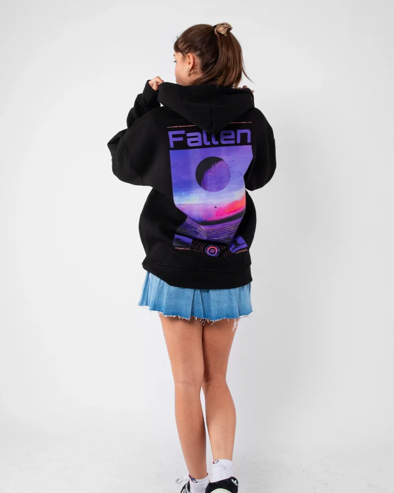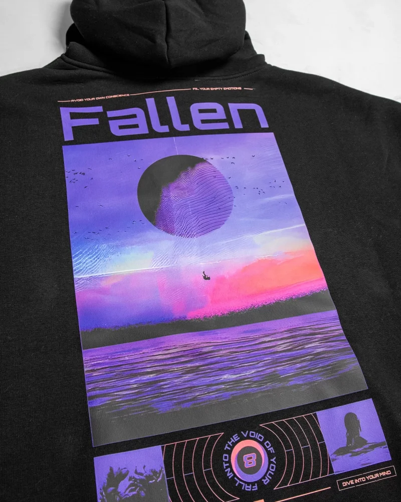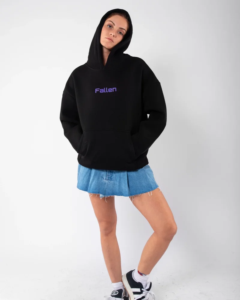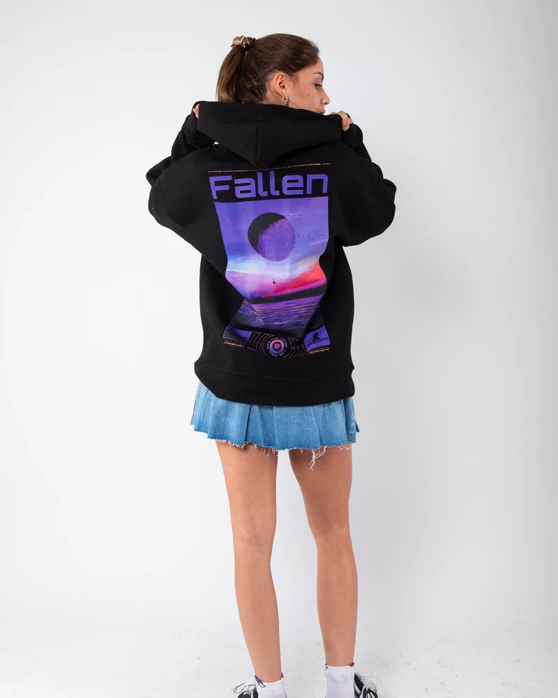 Fallen Baskılı Oversize Unisex Siyah Hoodie