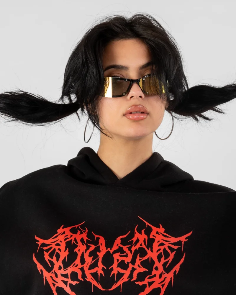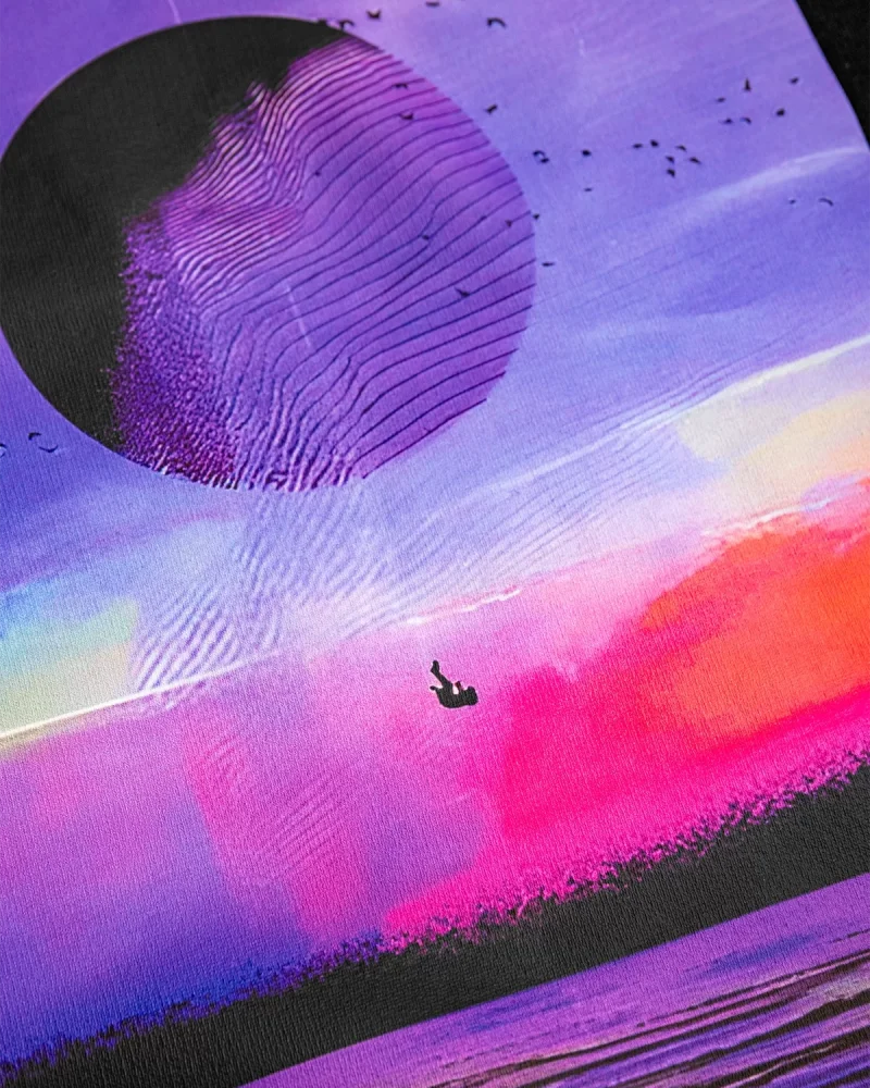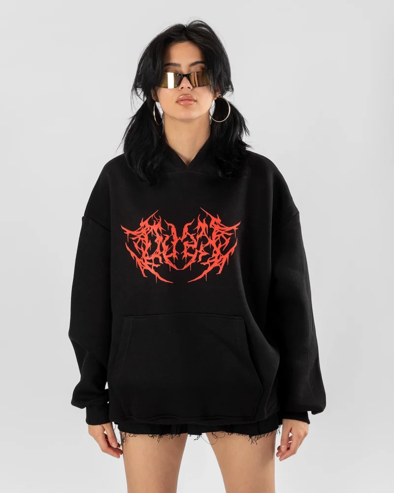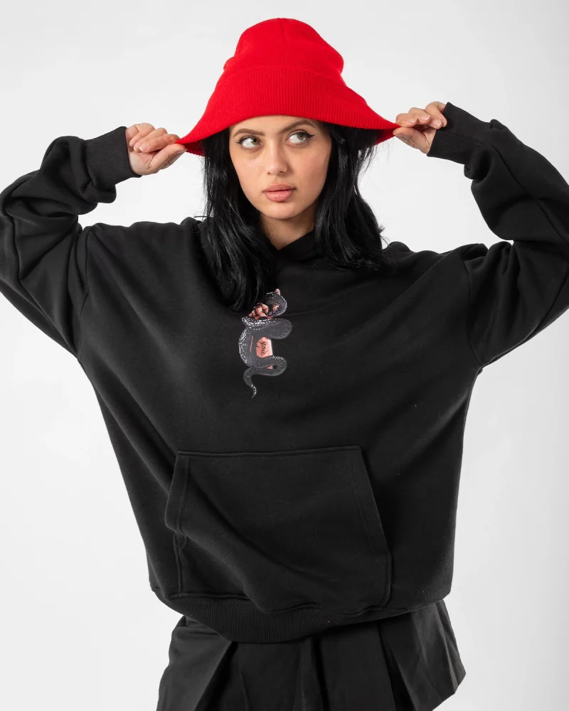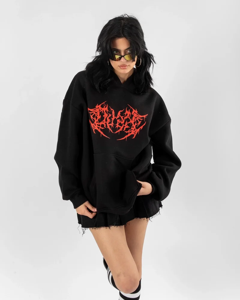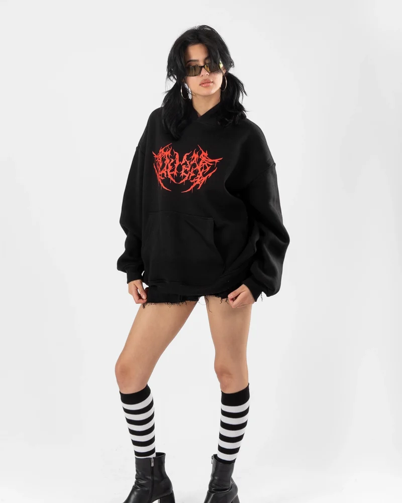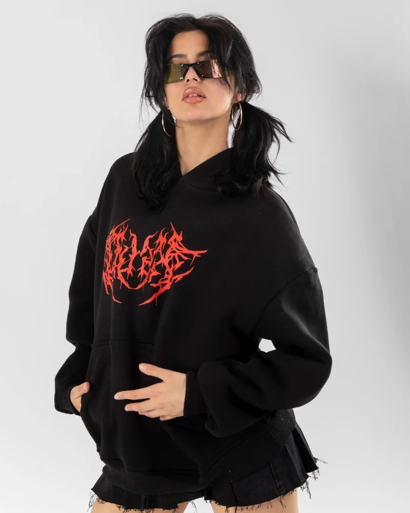 Kırmızı Dusk Baskılı Oversize Unisex Siyah Hoodie