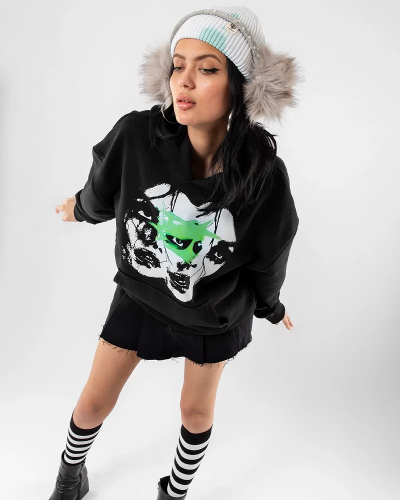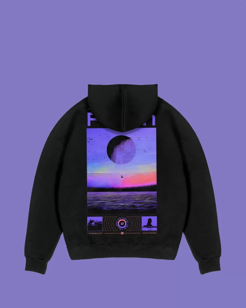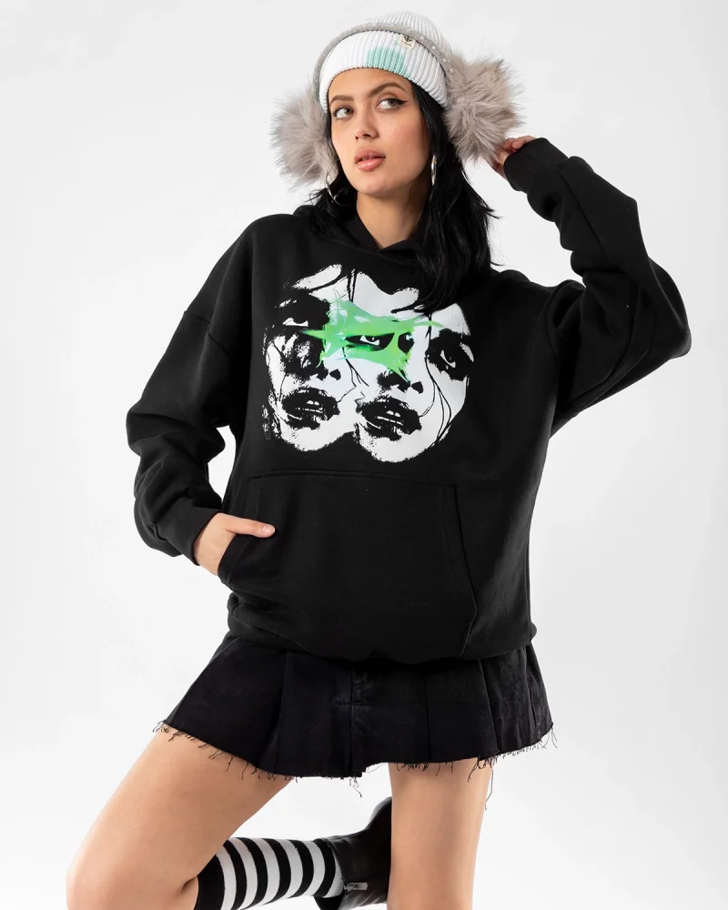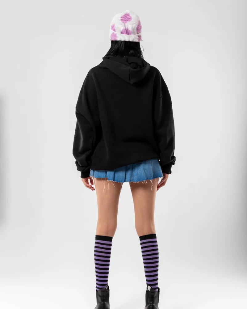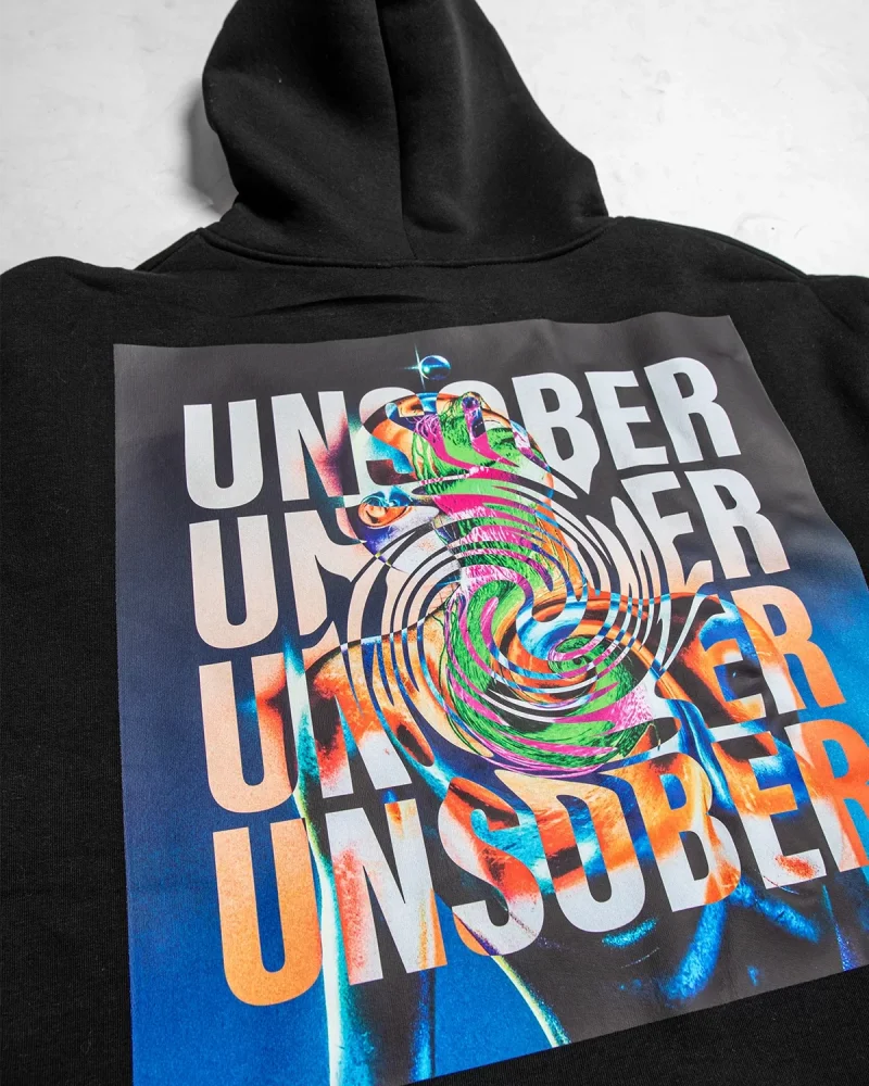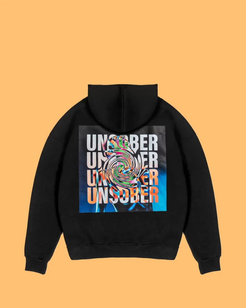Unsober Baskılı Oversize Unisex Siyah Hoodie