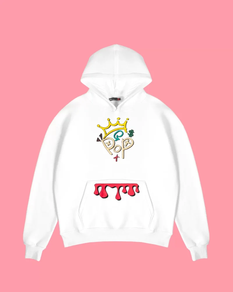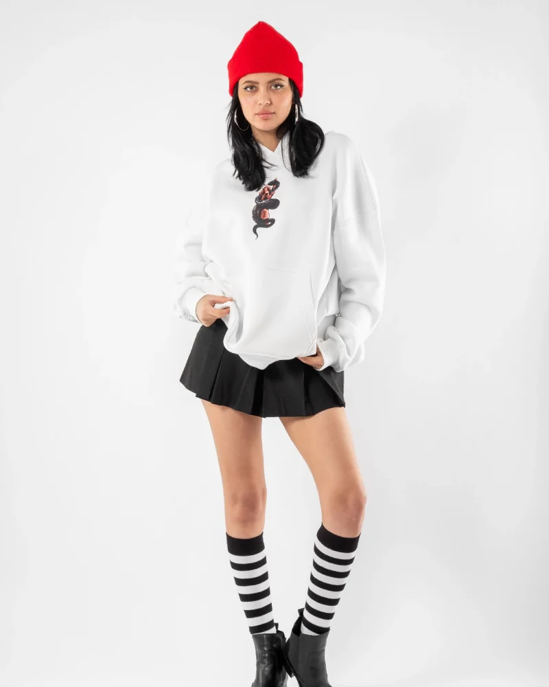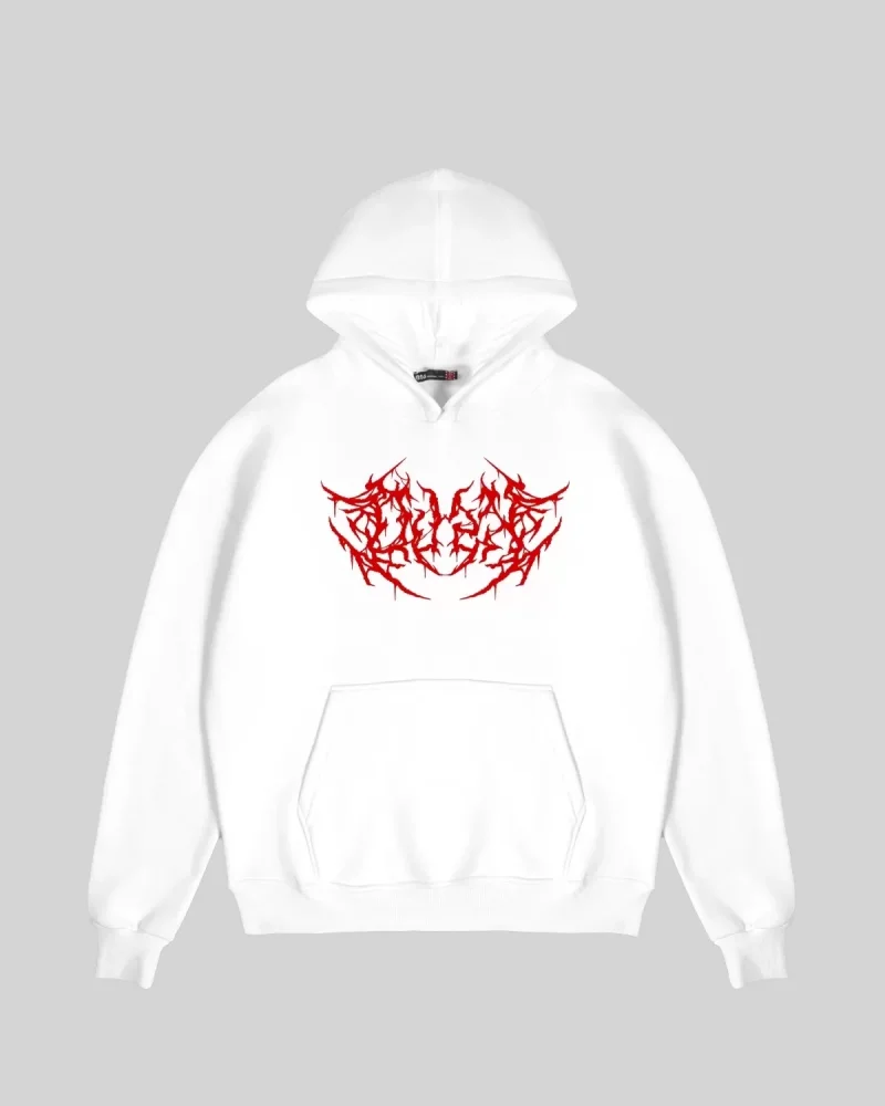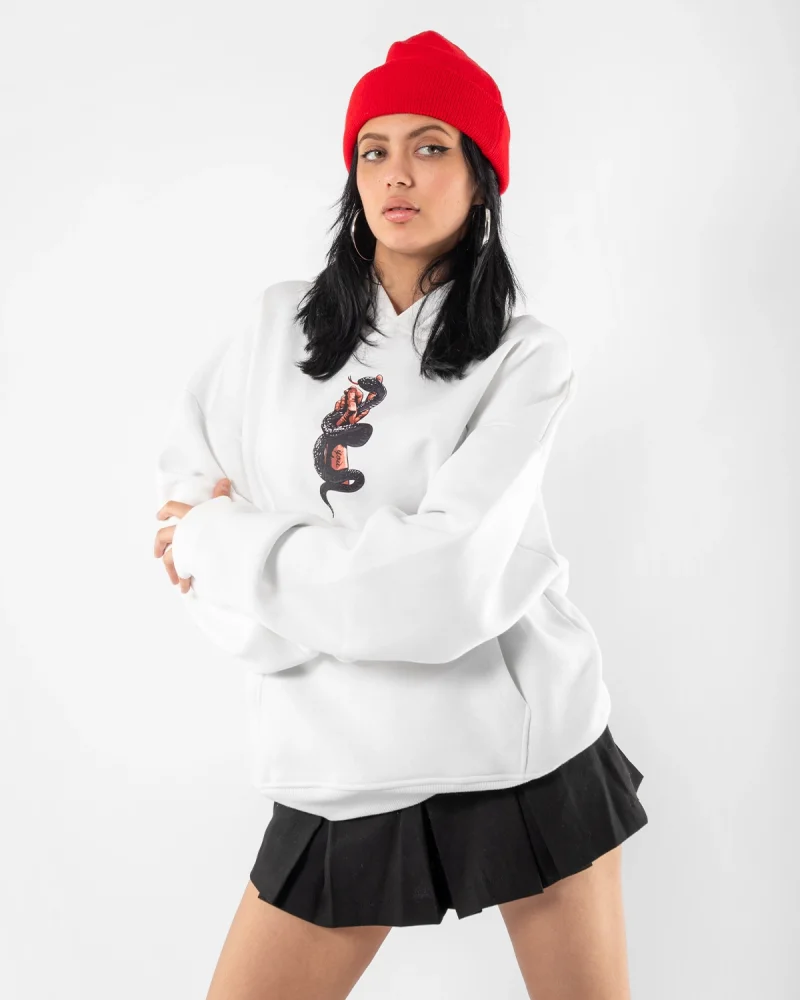 Kırmızı Dusk Baskılı Oversize Unisex Beyaz Hoodie