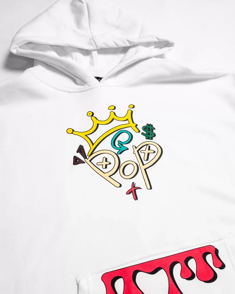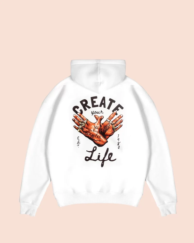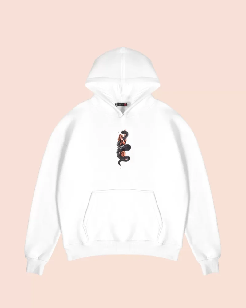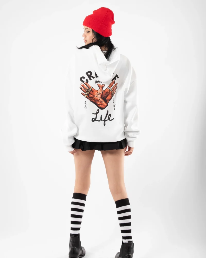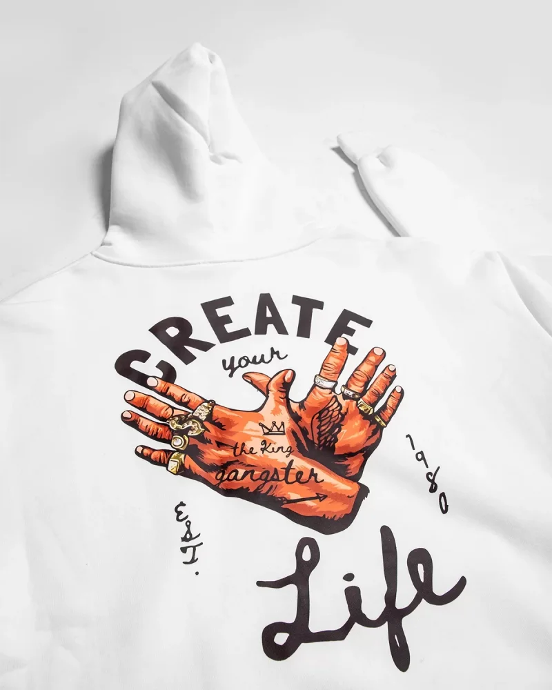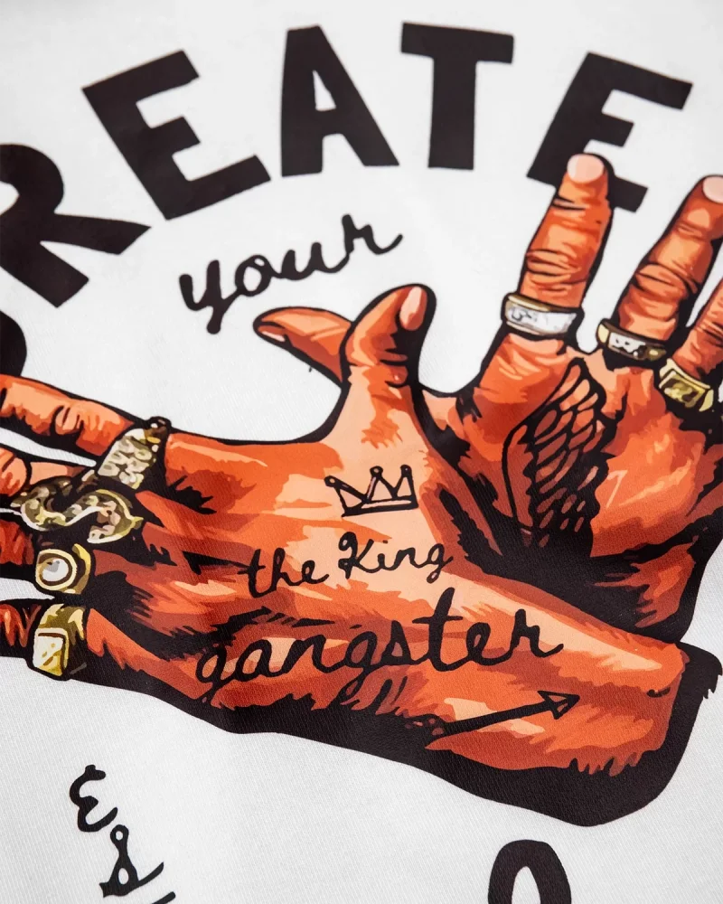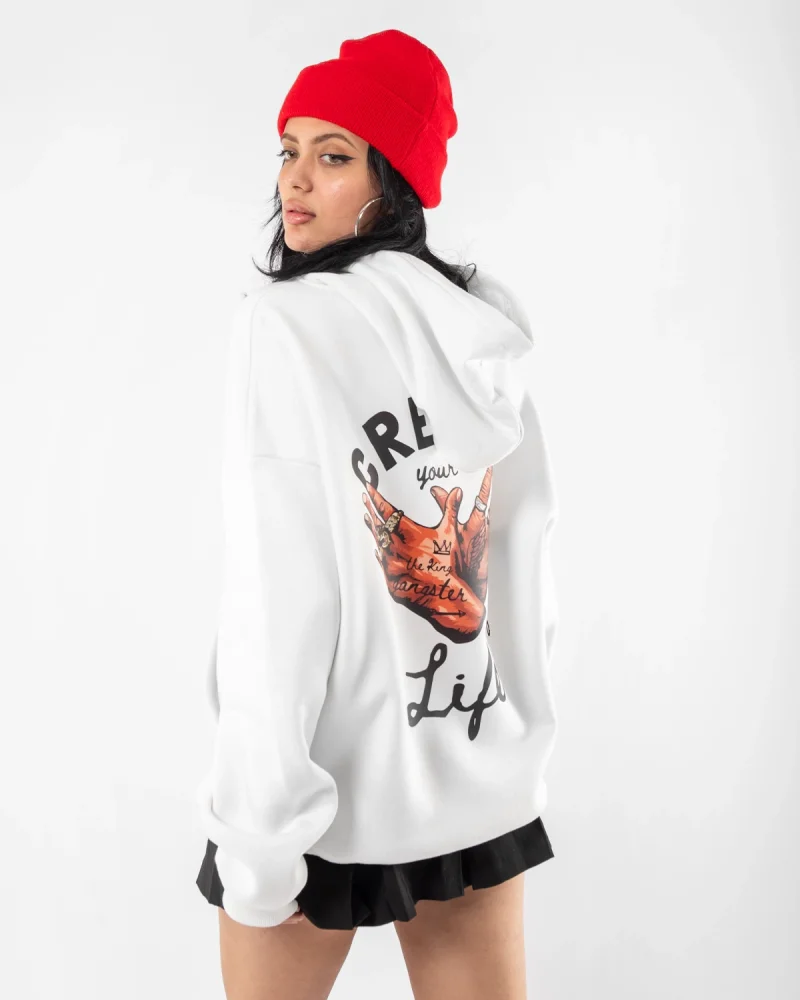 Free Gangster Baskılı Oversize Unisex Beyaz Hoodie