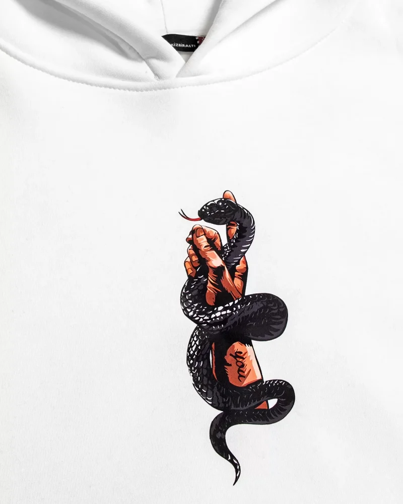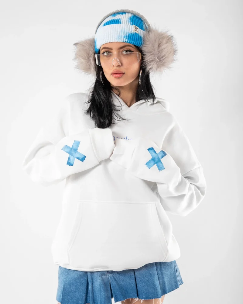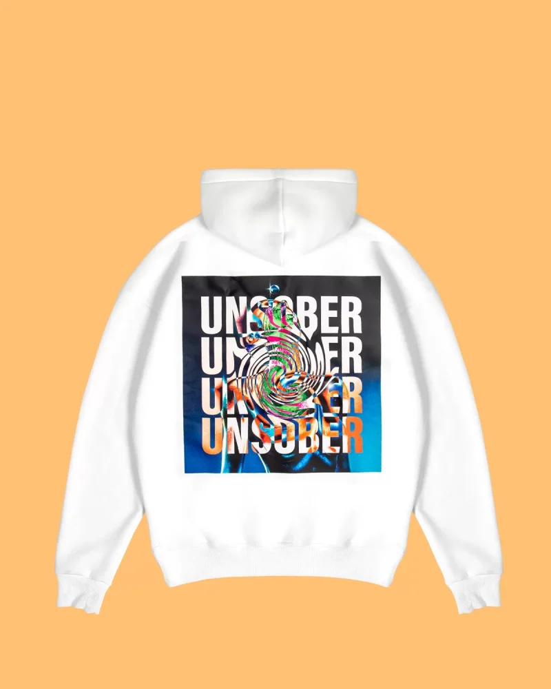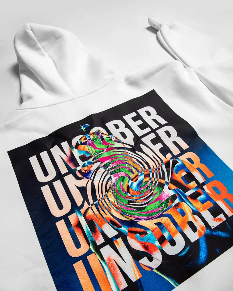Unsober Baskılı Oversize Unisex Beyaz Hoodie