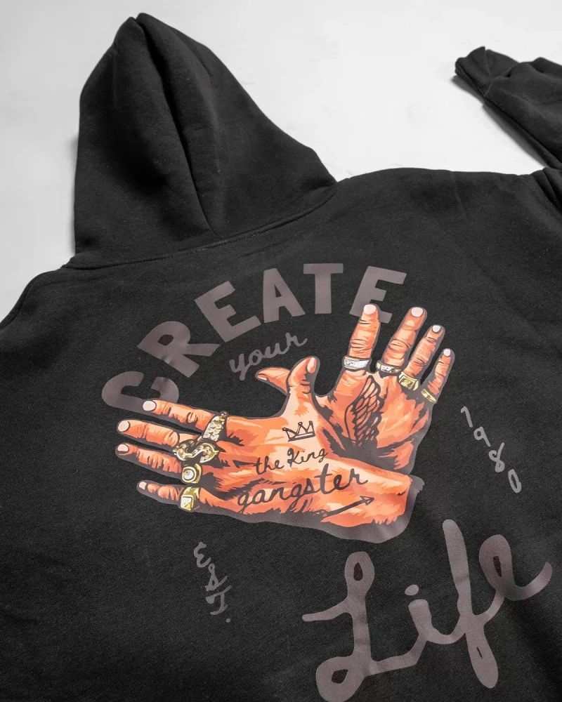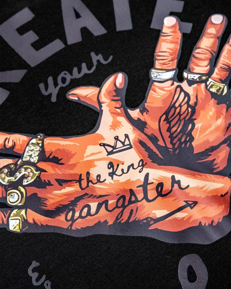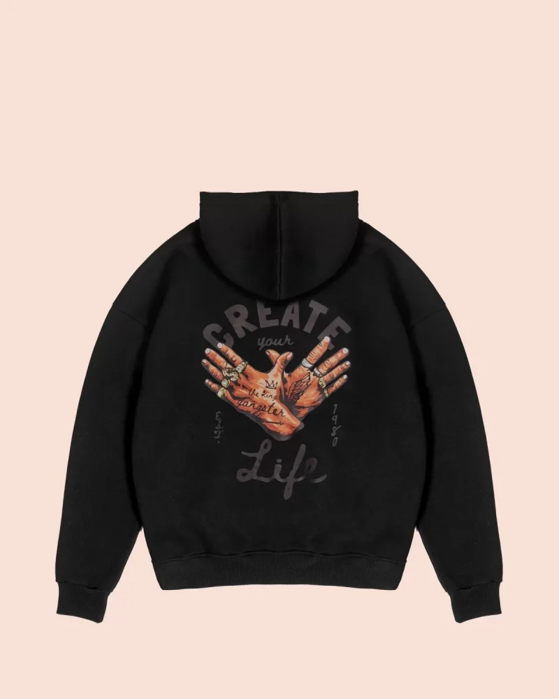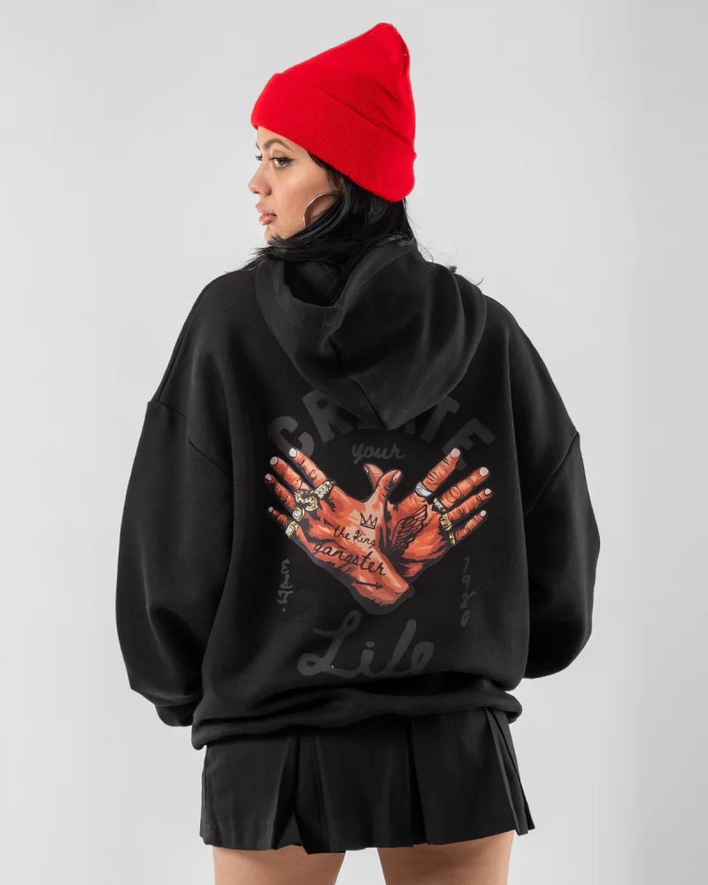 Free Gangster Baskılı Oversize Unisex Siyah Hoodie