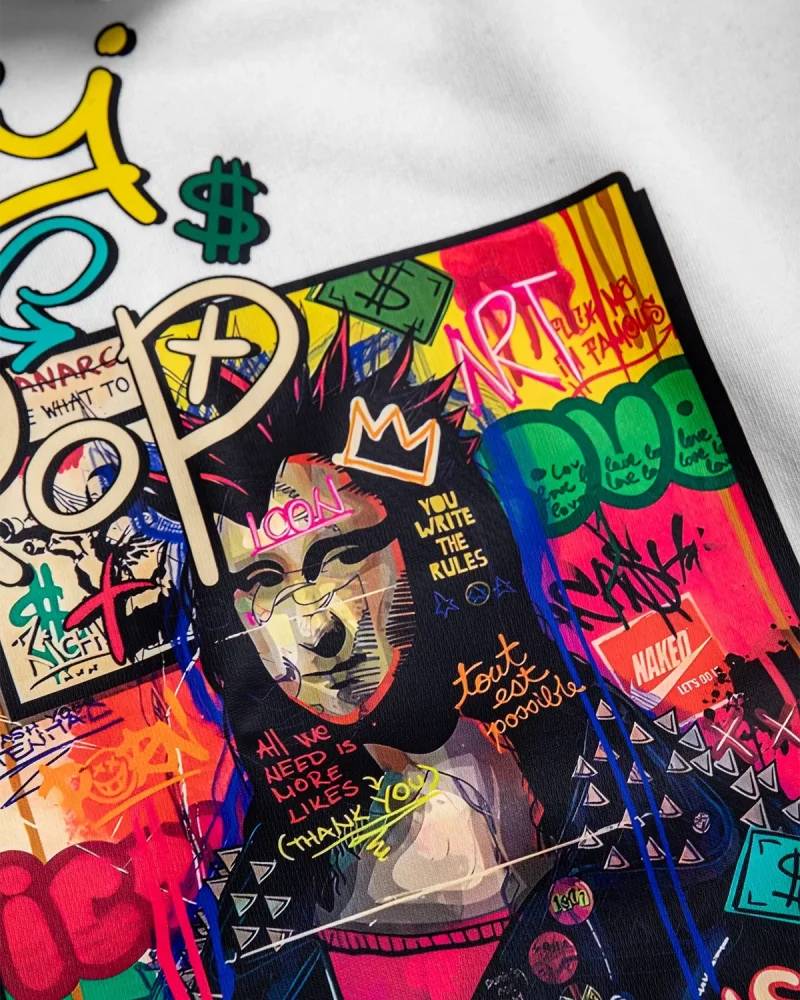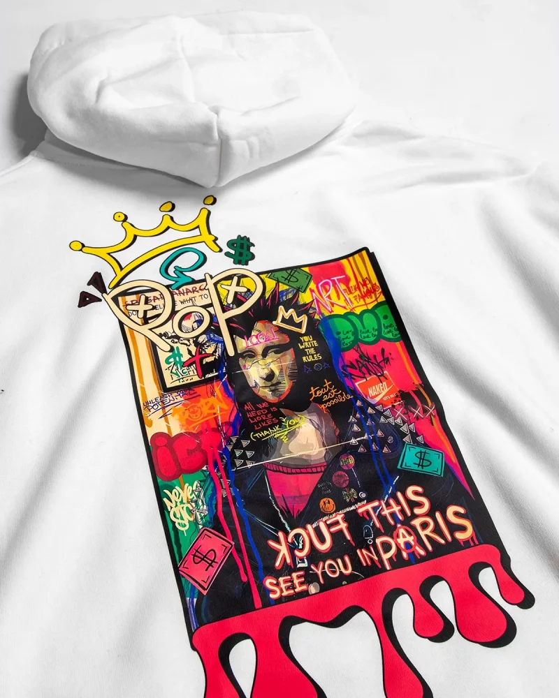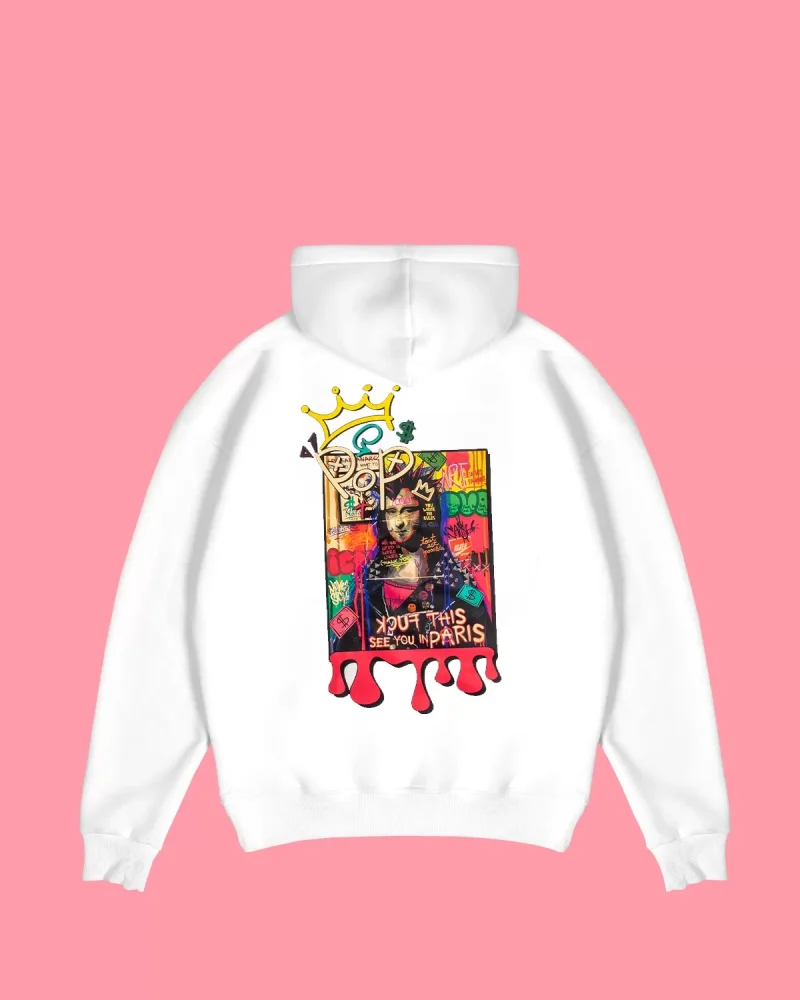 Mona Lisa Pop Art Baskılı Oversize Unisex Beyaz Hoodie