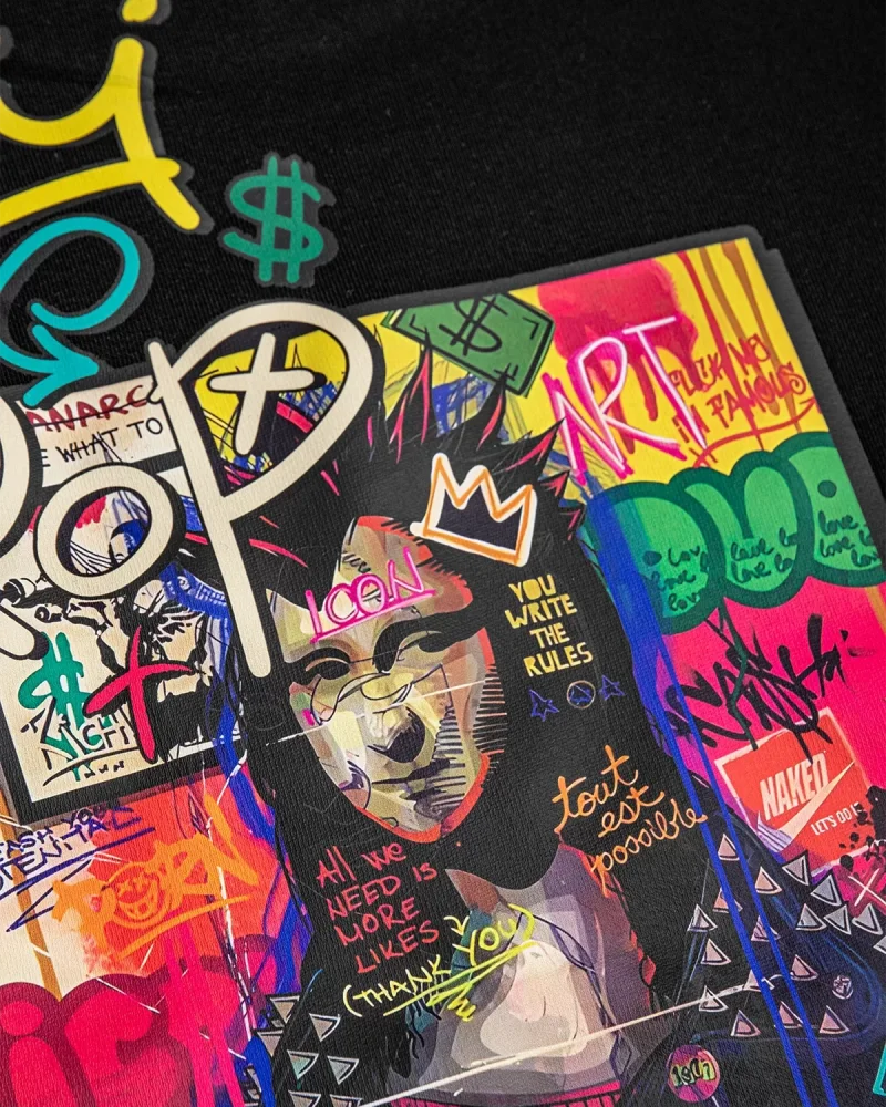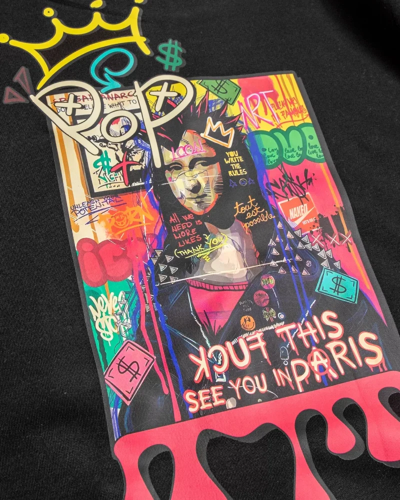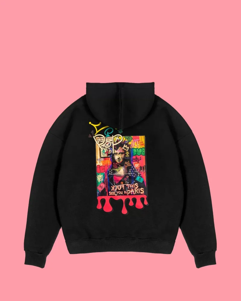 Mona Lisa Pop Art Baskılı Oversize Unisex Siyah Hoodie