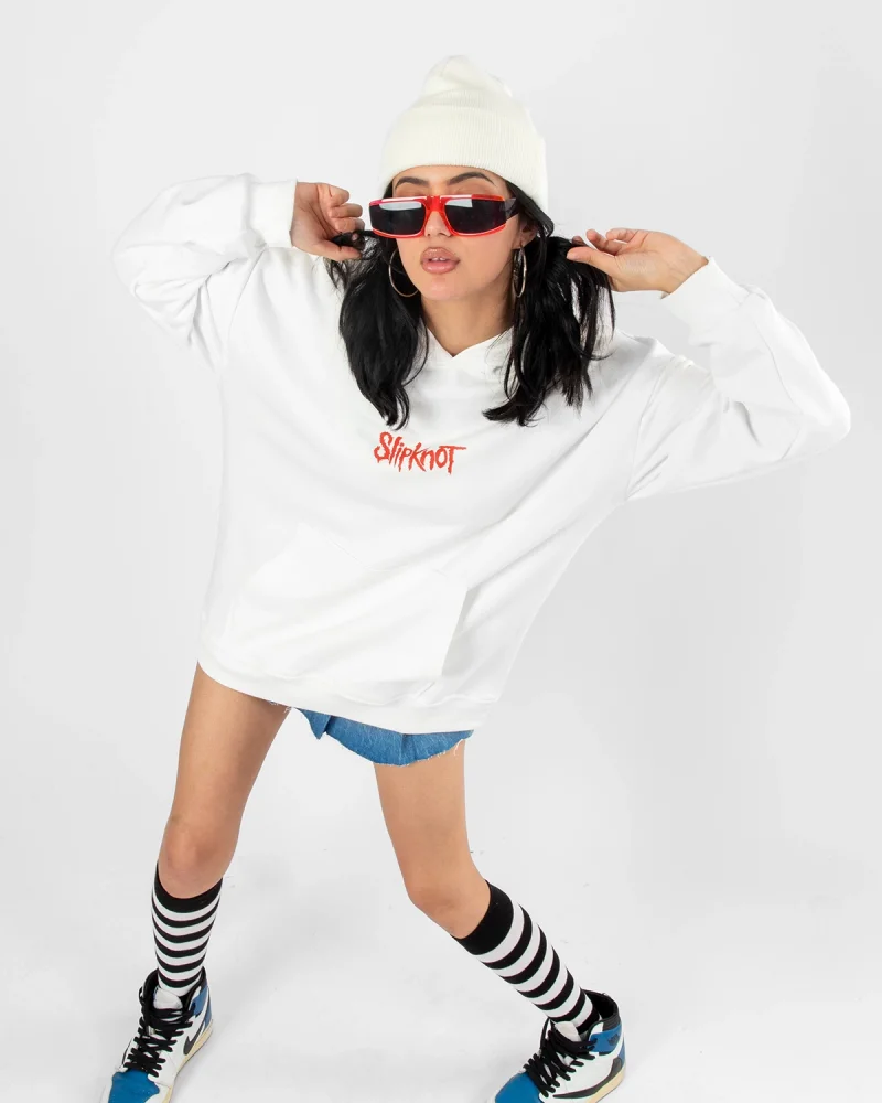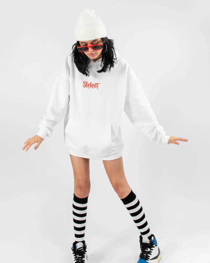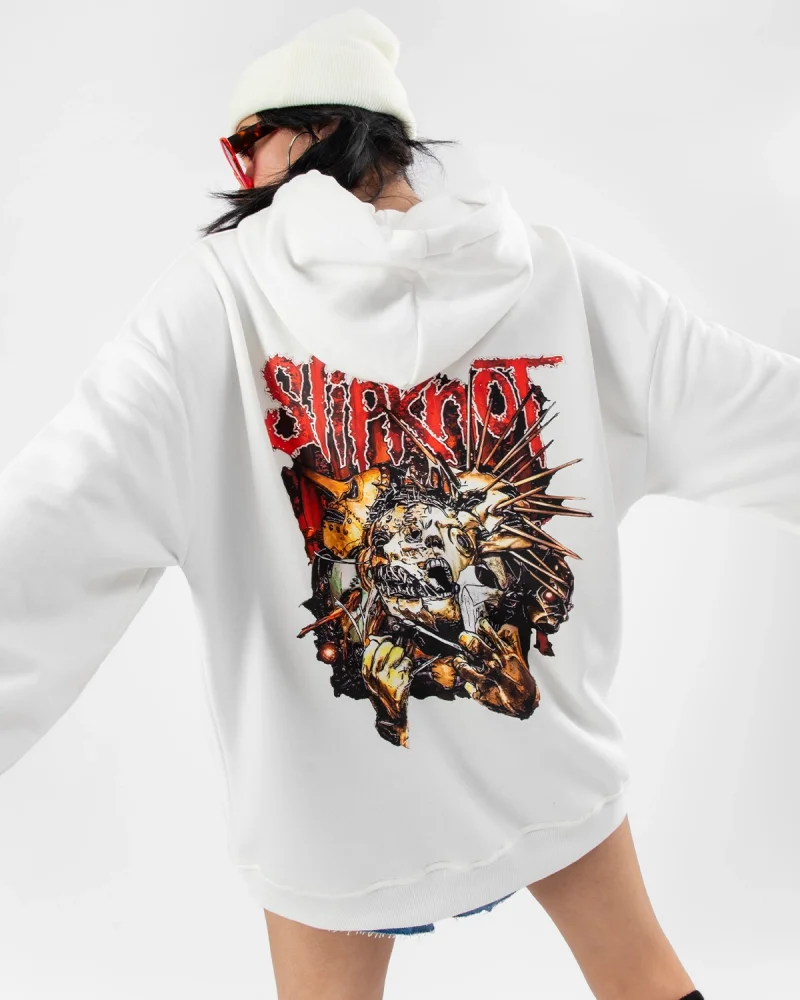 Slipknot Sırt Baskılı Beyaz Oversize Unisex Hoodie