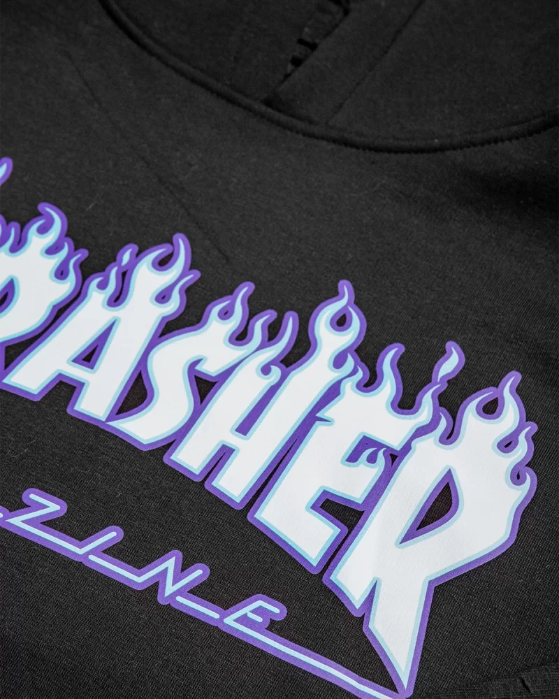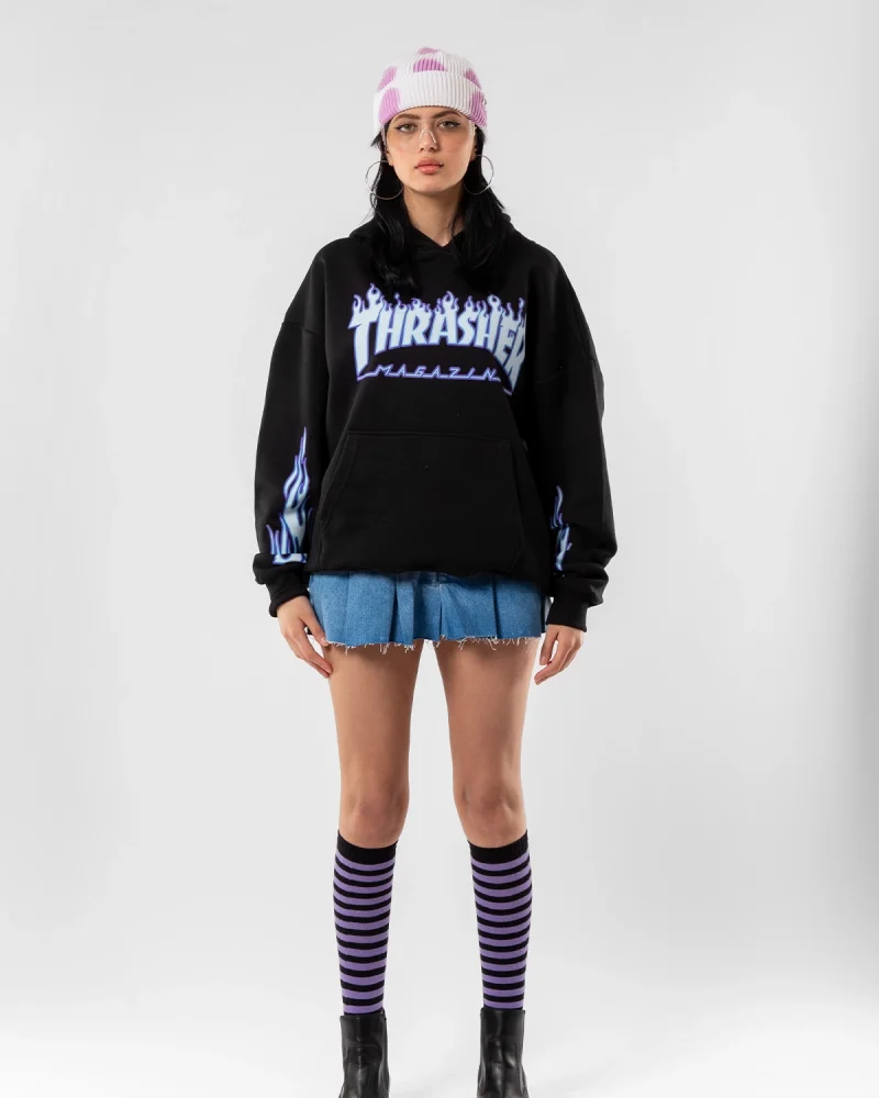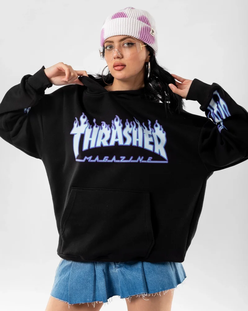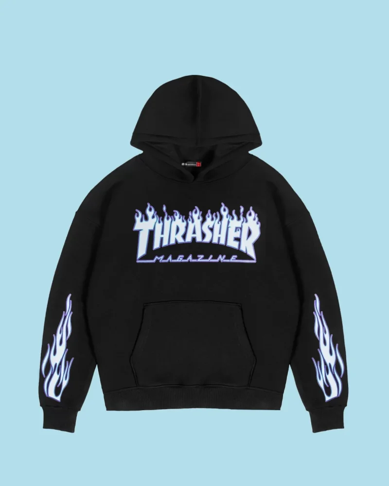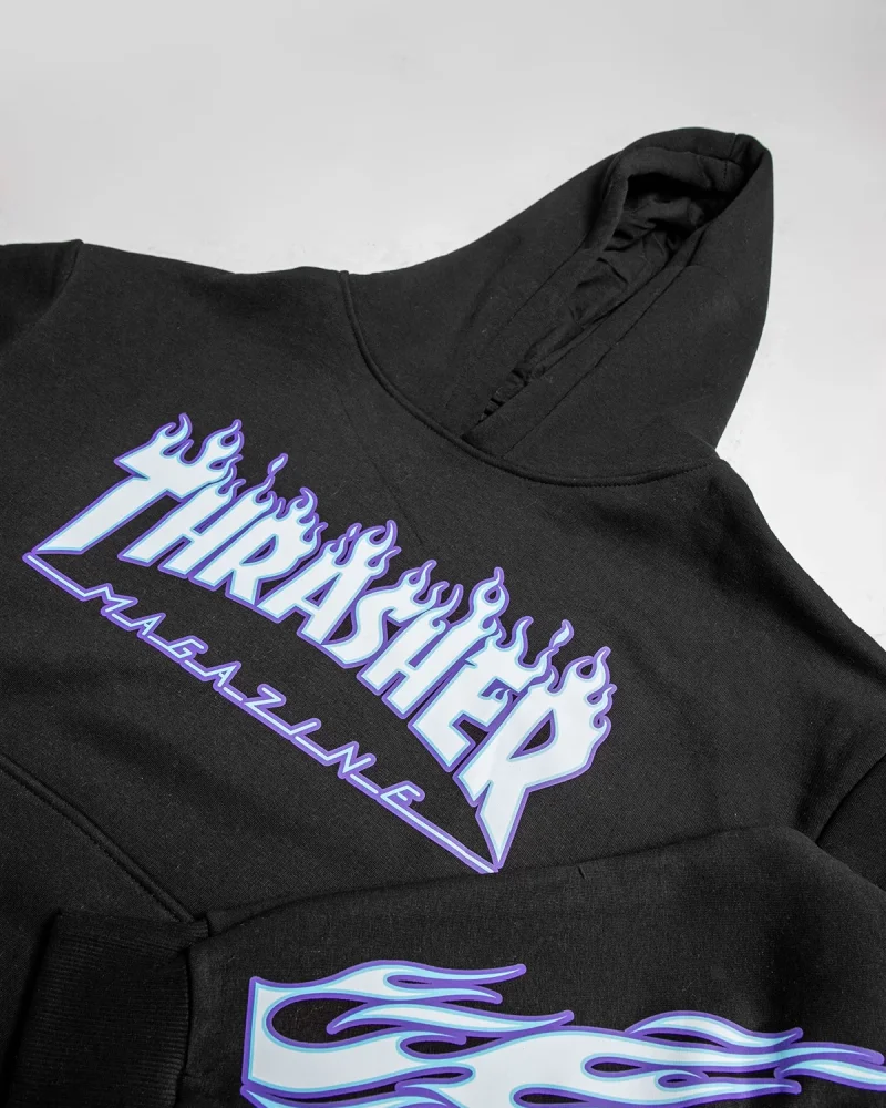 Thrasher Flam Baskılı Oversize Unisex Siyah Hoodie