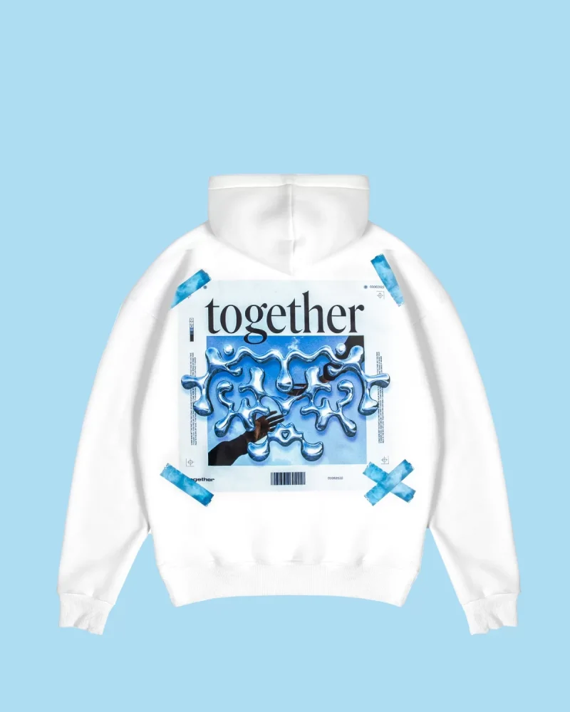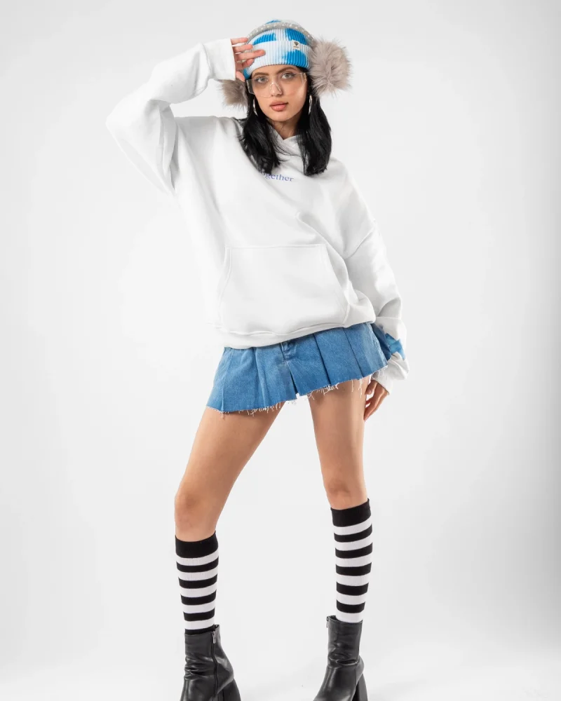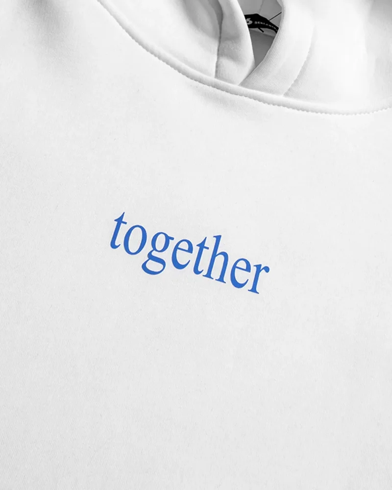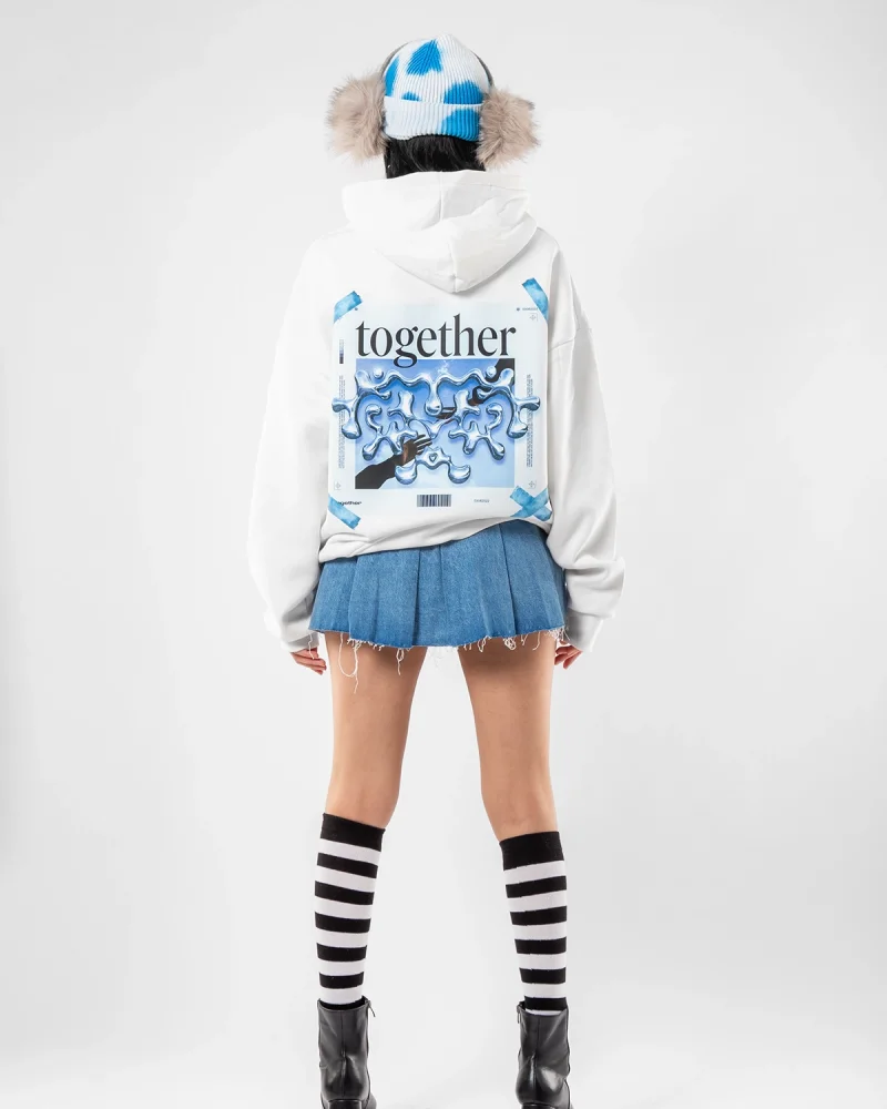 Together Baskılı Oversize Unisex Beyaz Hoodie