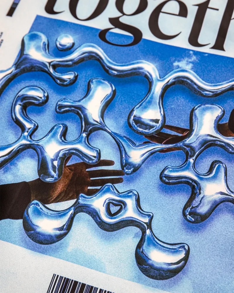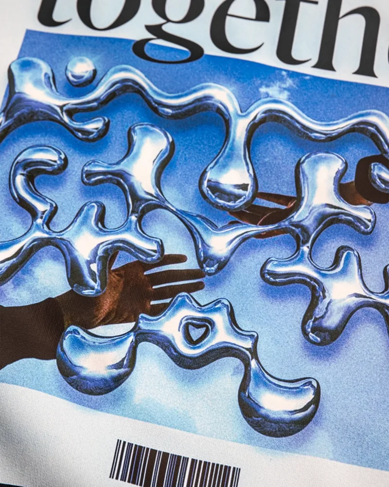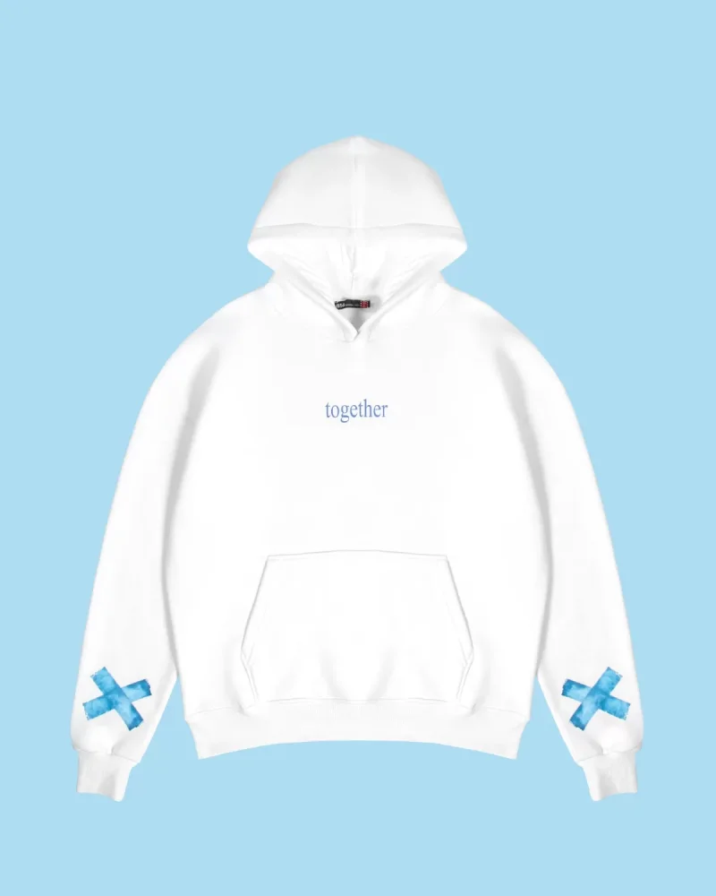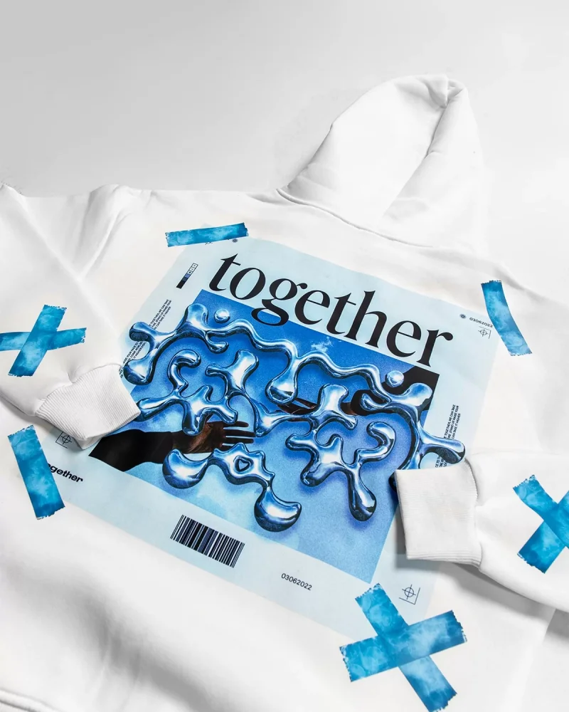 Together Baskılı Oversize Unisex Beyaz Hoodie