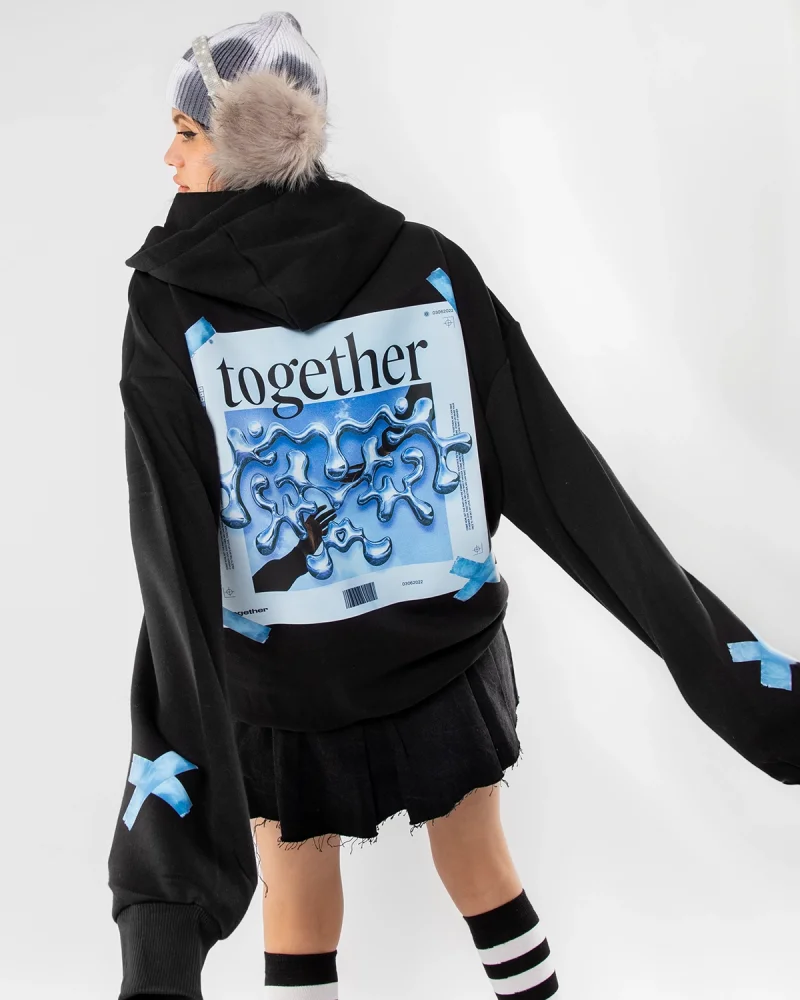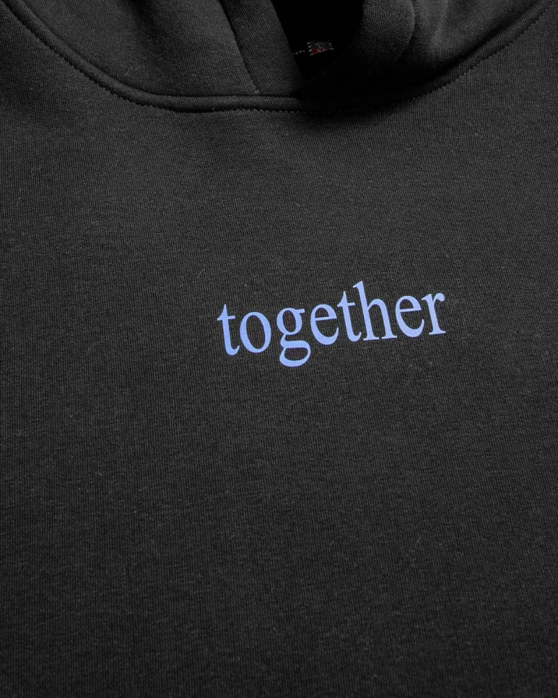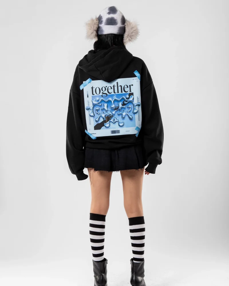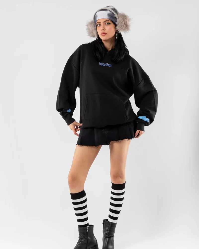 Together Baskılı Oversize Unisex Siyah Hoodie