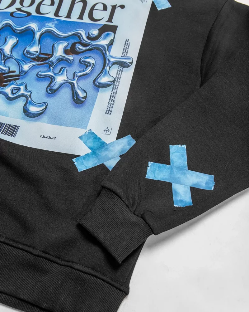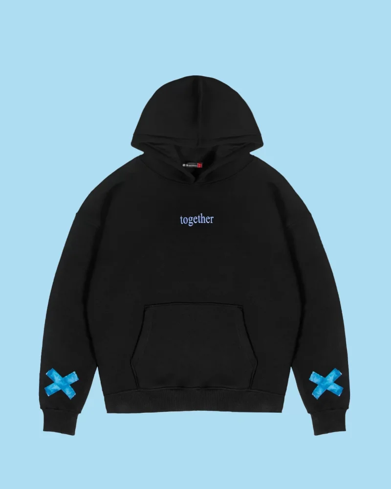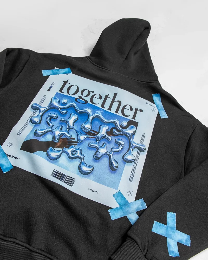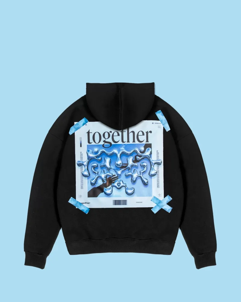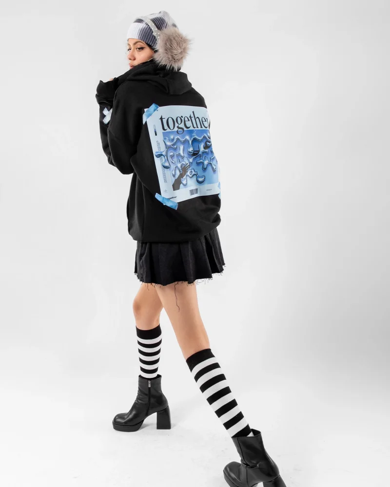 Together Baskılı Oversize Unisex Siyah Hoodie