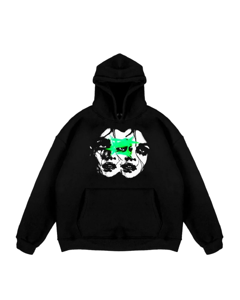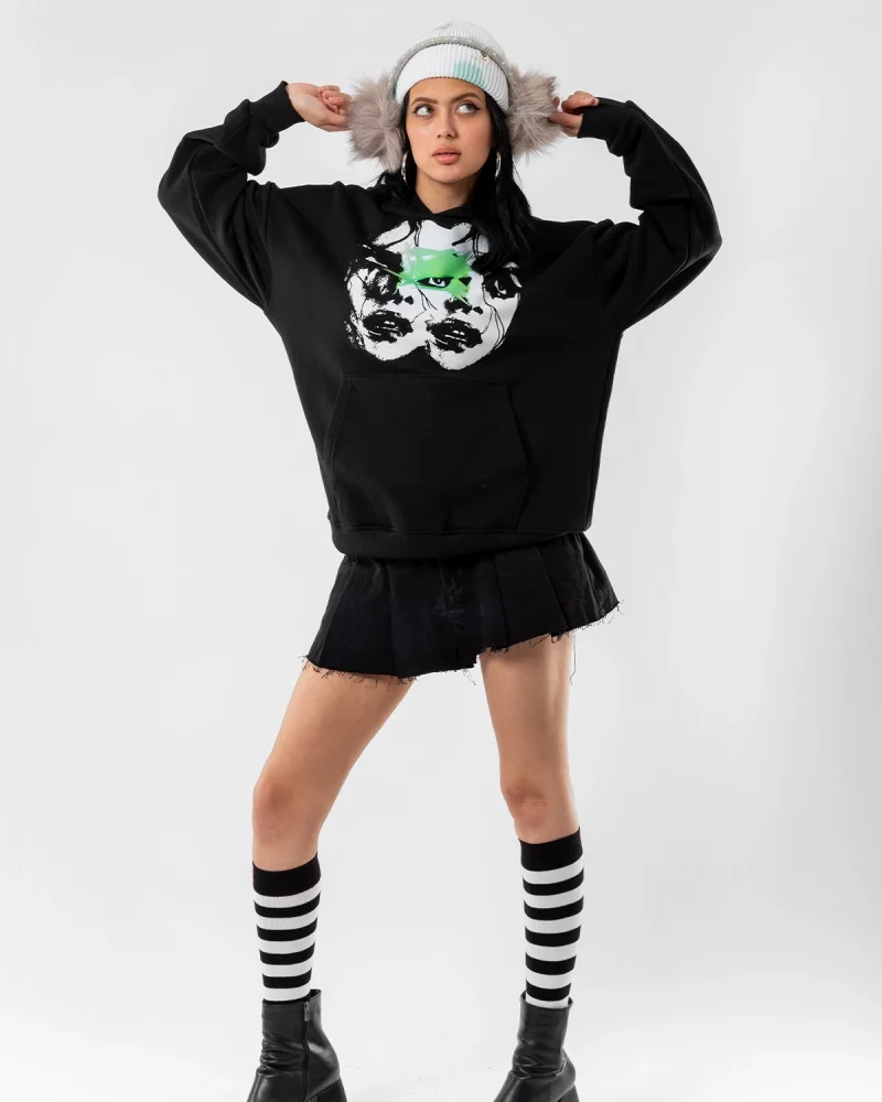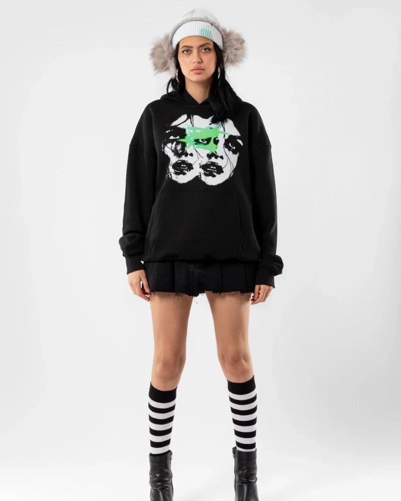 Woman Shadows Baskılı Siyah Oversize Unisex Hoodie