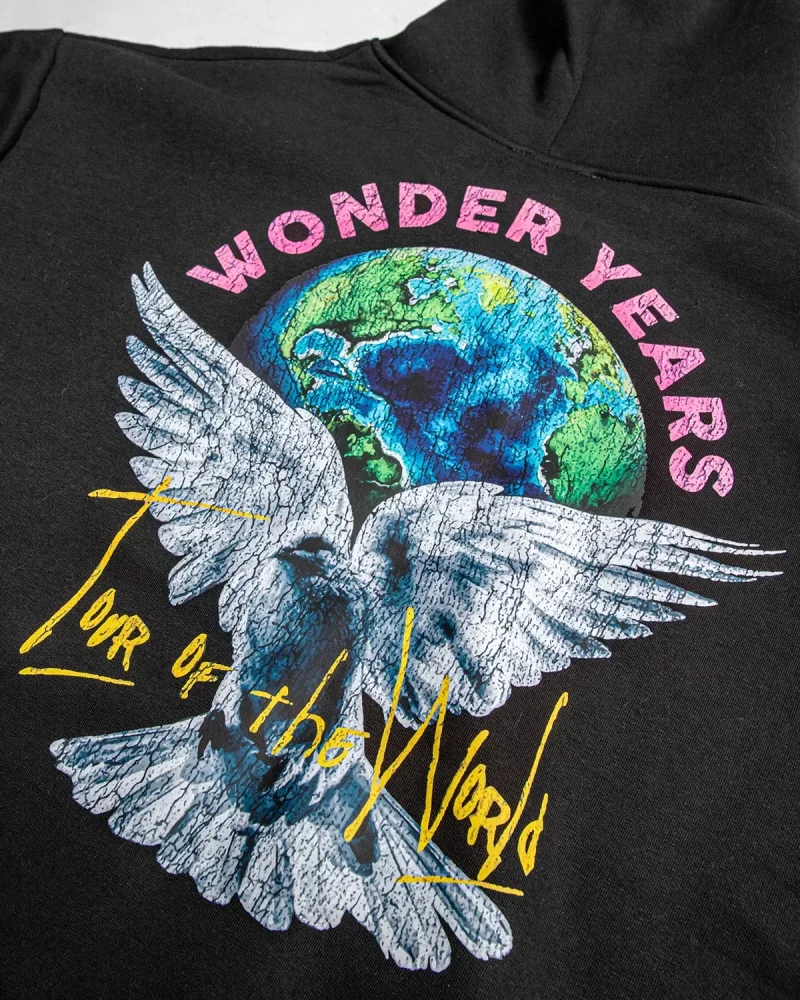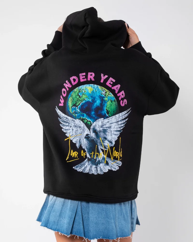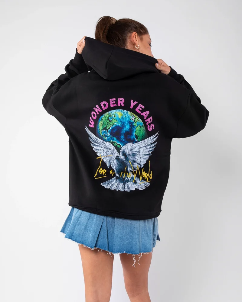 Wonder Years Baskılı Oversize Unisex Siyah Hoodie