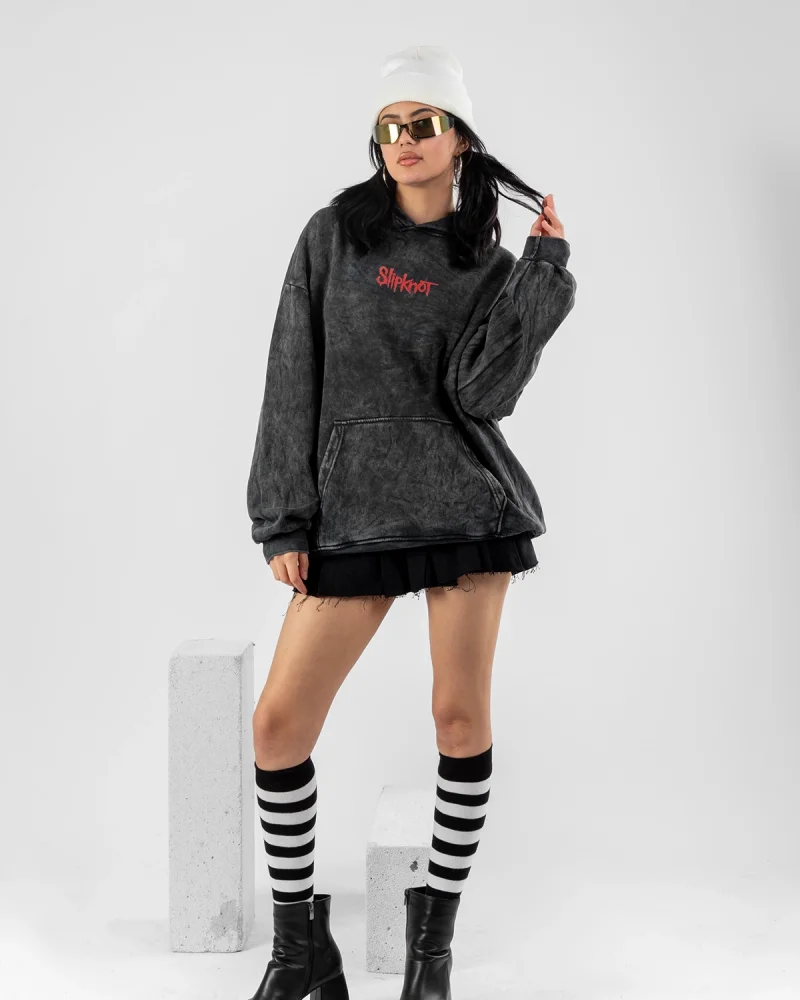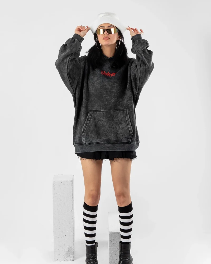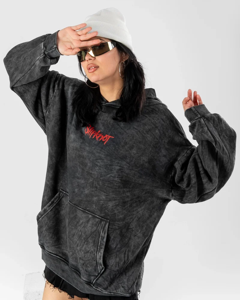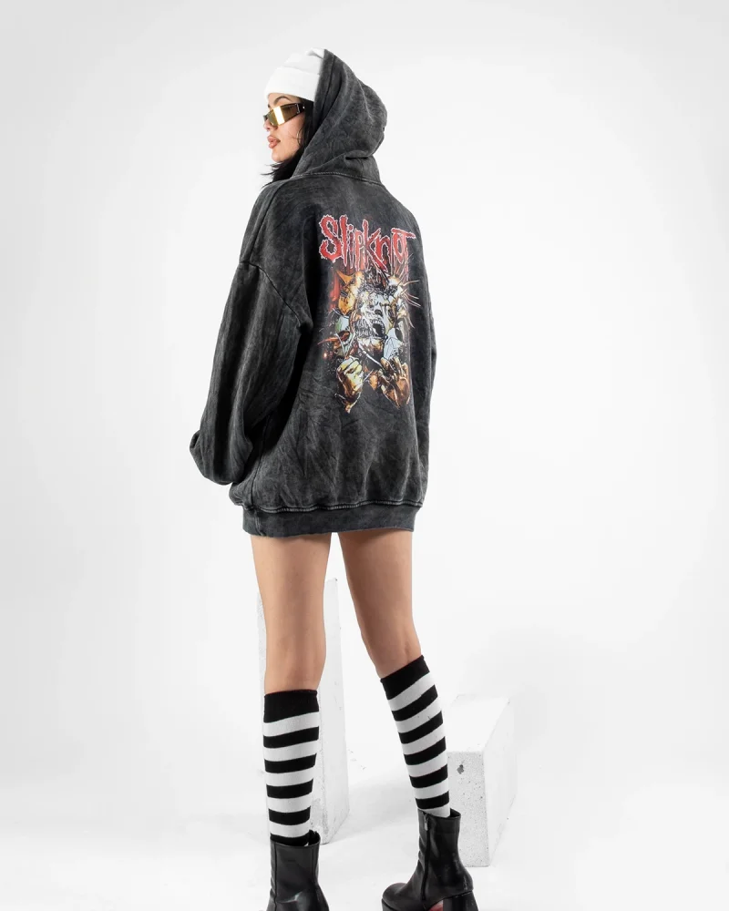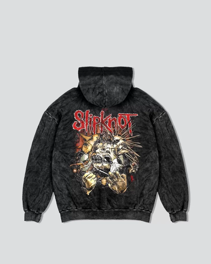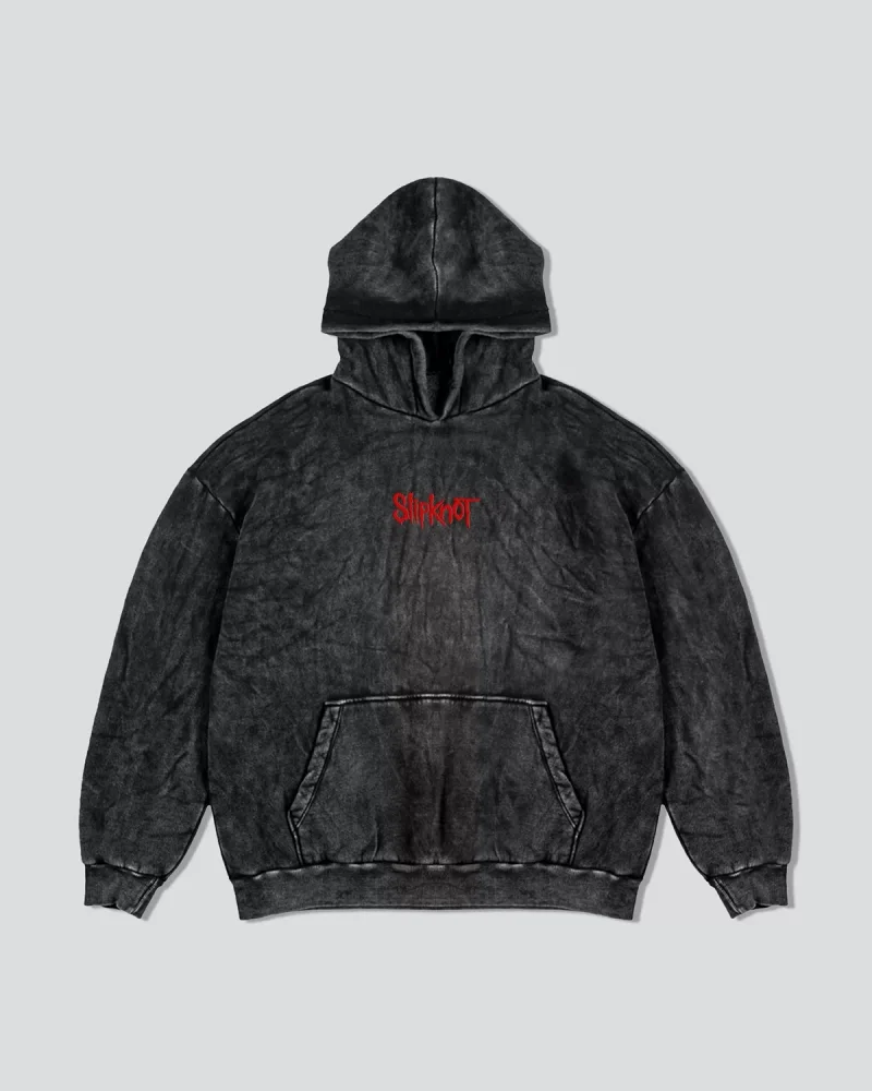 Yıkamalı Slipknot Sırt Baskılı Siyah Oversize Unisex Hoodie