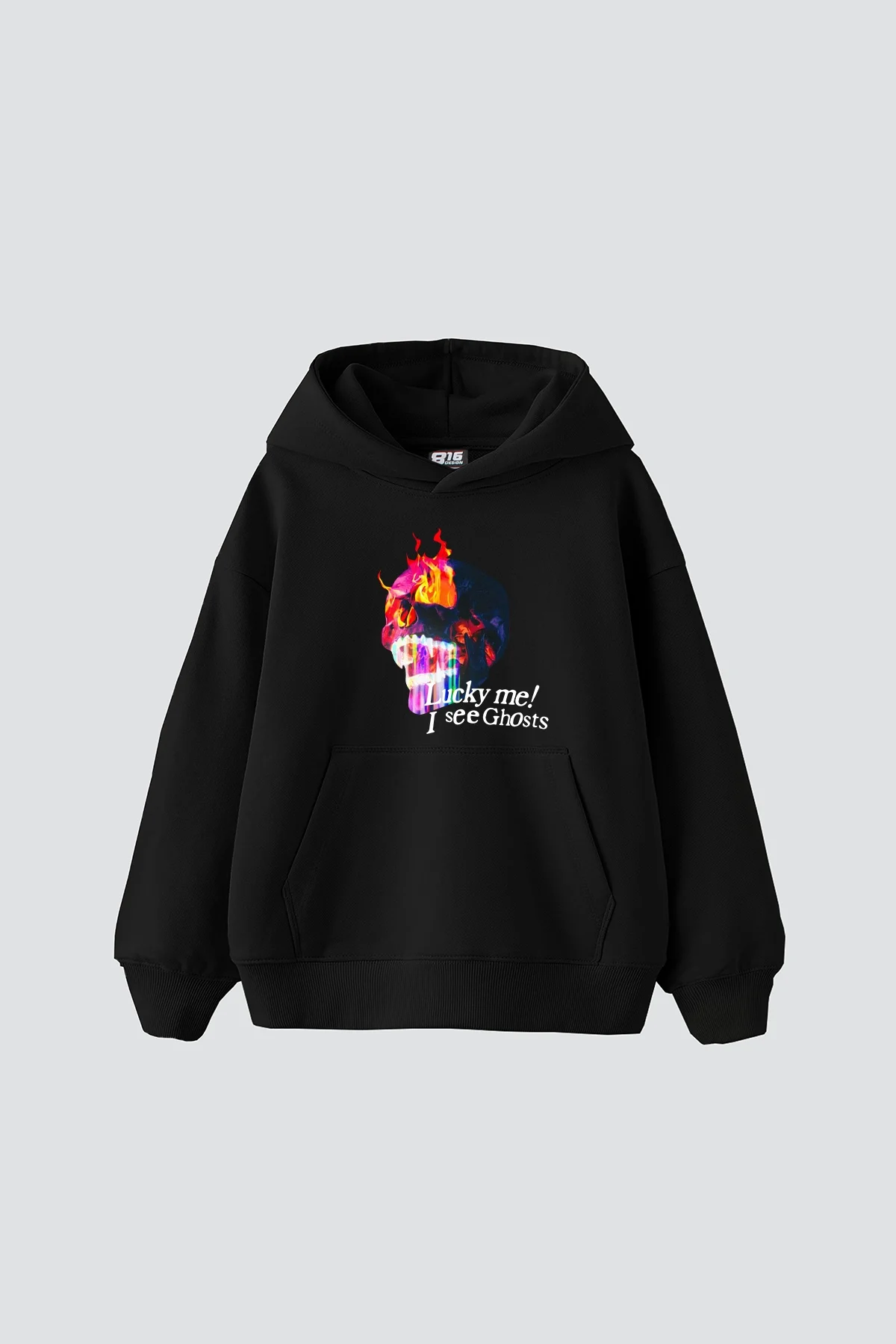 I SEE GHOSTS BASKILI OVERSİZE UNİSEX PREMİUM SİYAH HOODİE