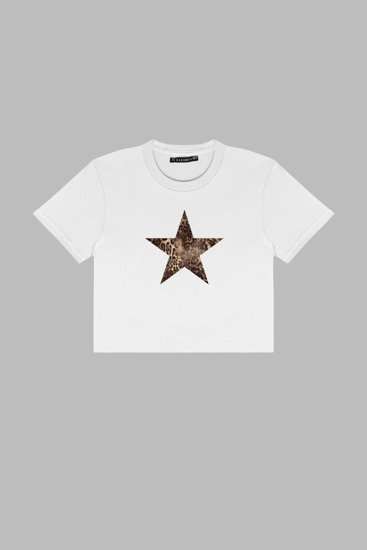 LEOPAR STARZ BASKILI BEYAZ CROP TOP