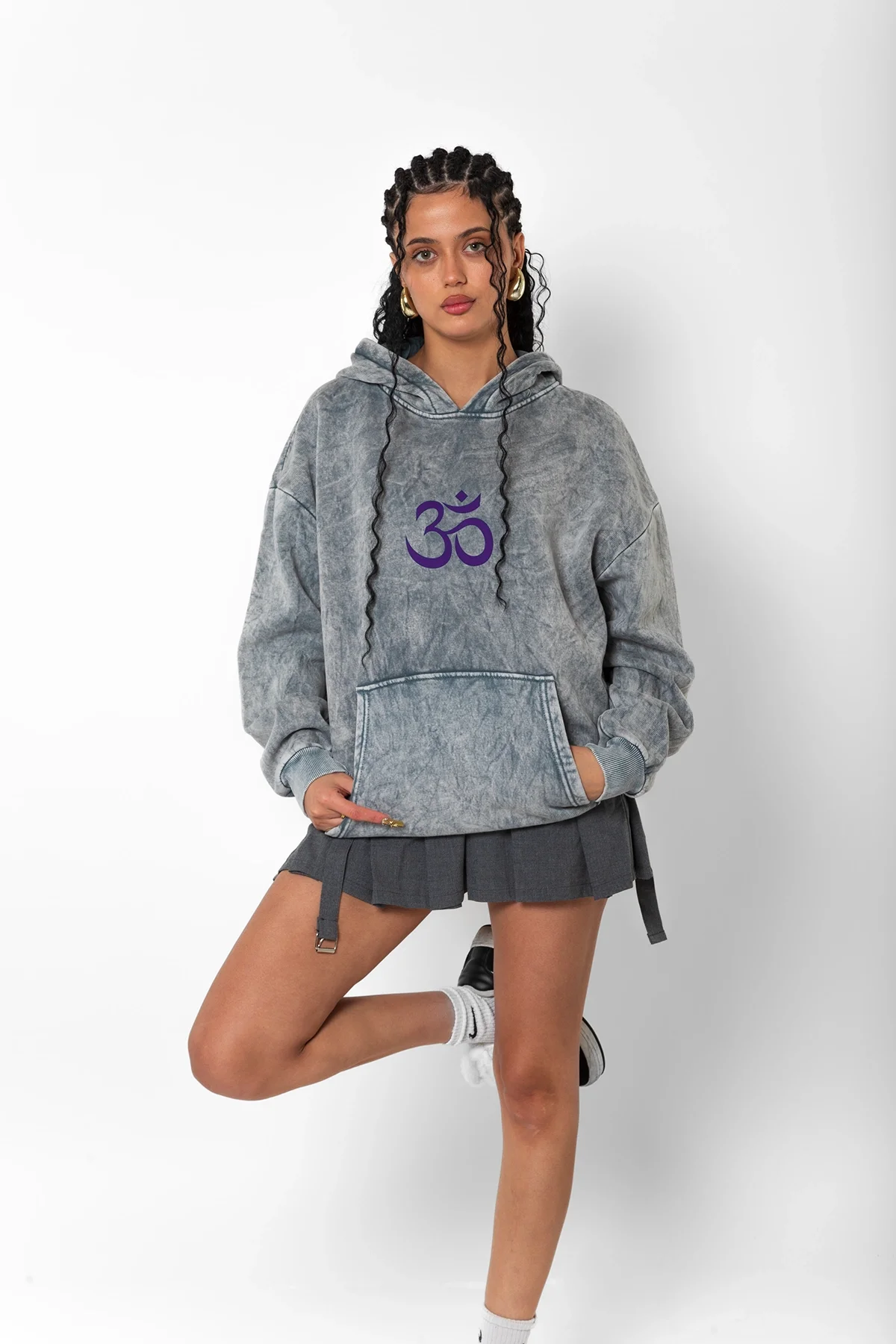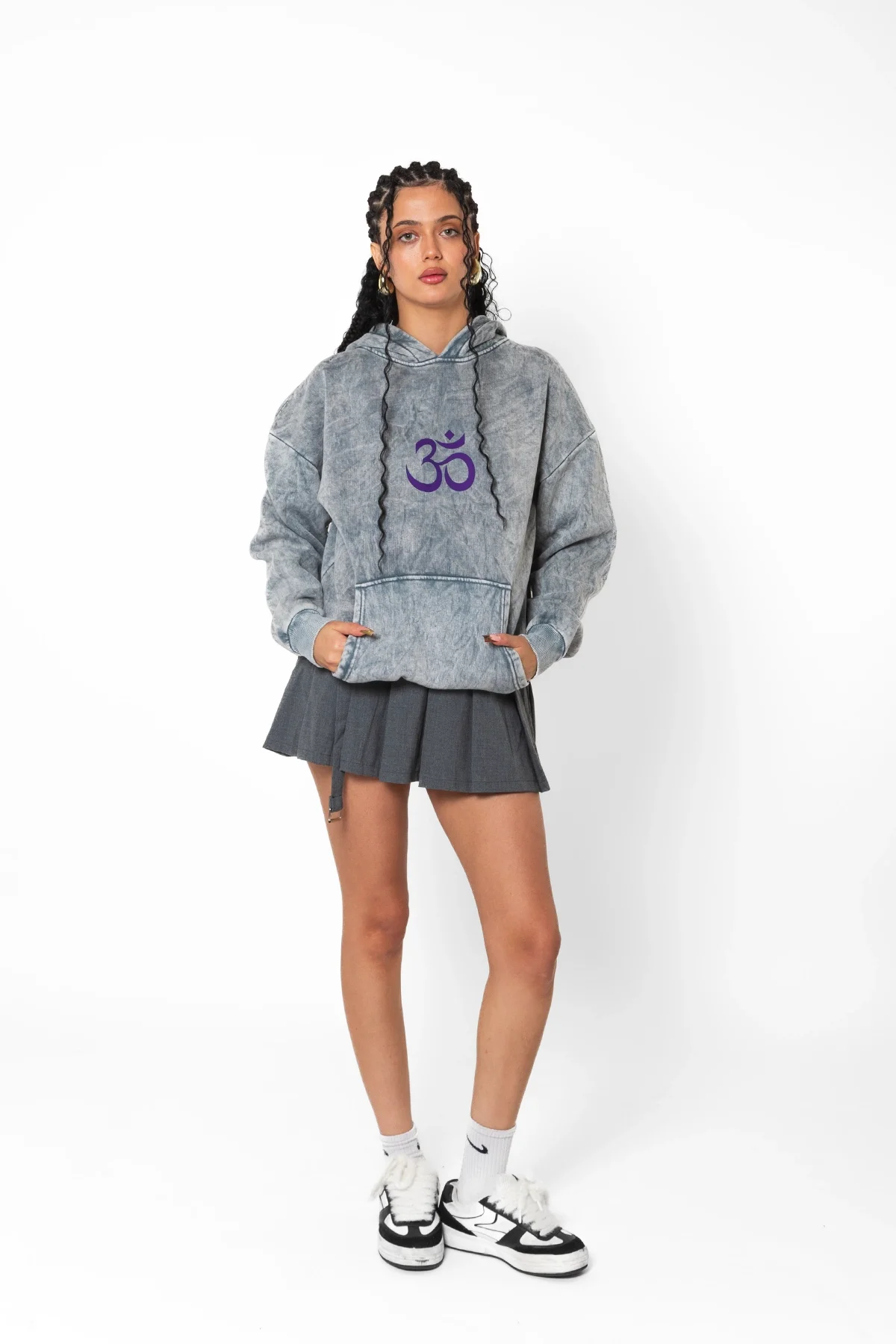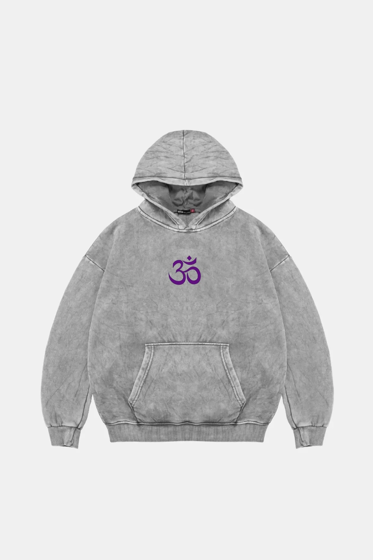 OM BASKILI UNİSEX OVERSİZE YIKAMALI BEYAZ HOODİE