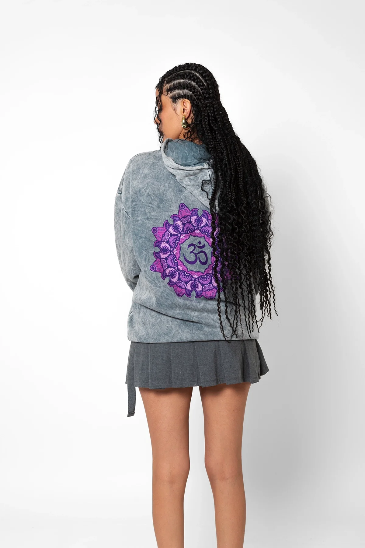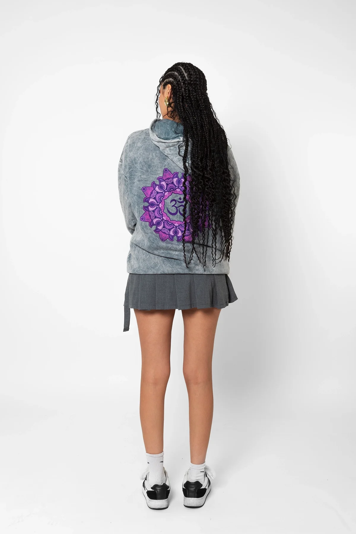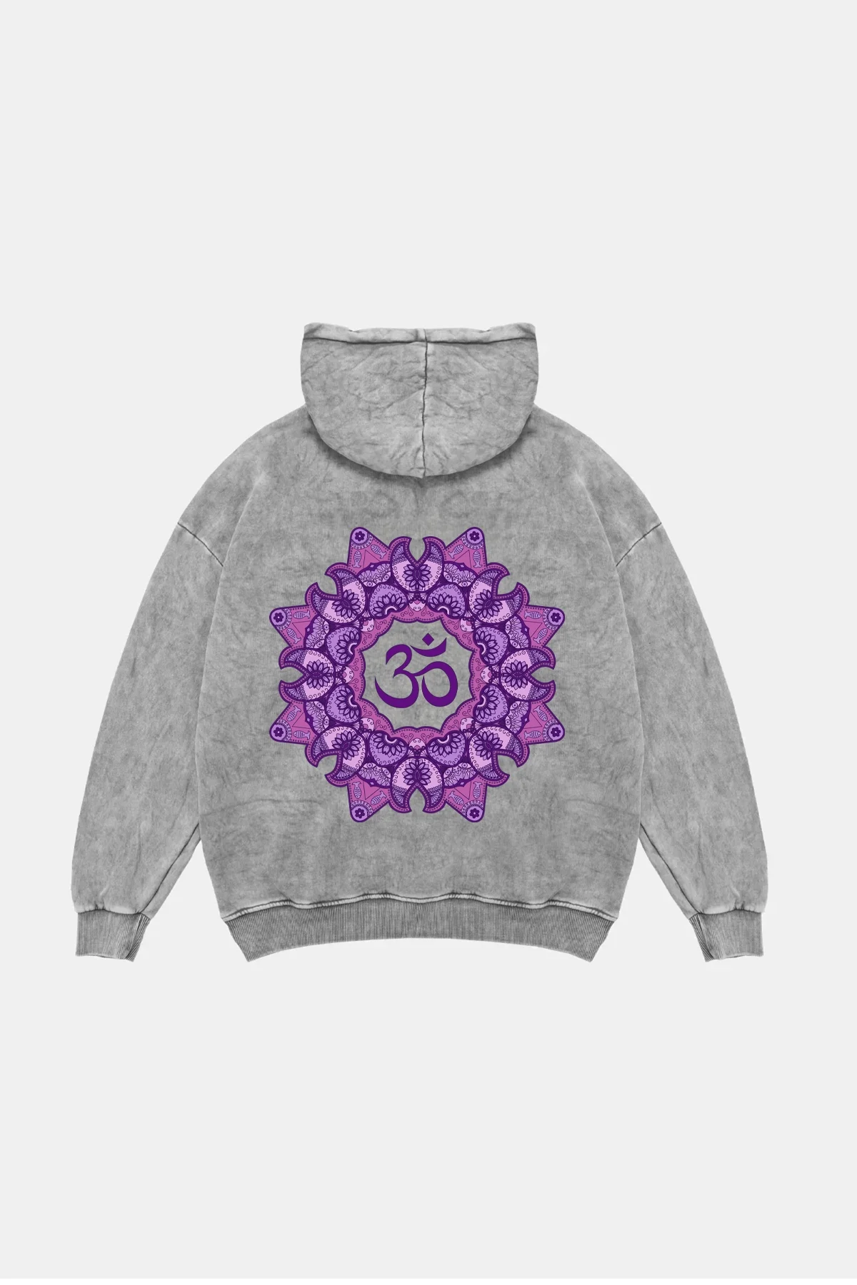 OM BASKILI UNİSEX OVERSİZE YIKAMALI BEYAZ HOODİE