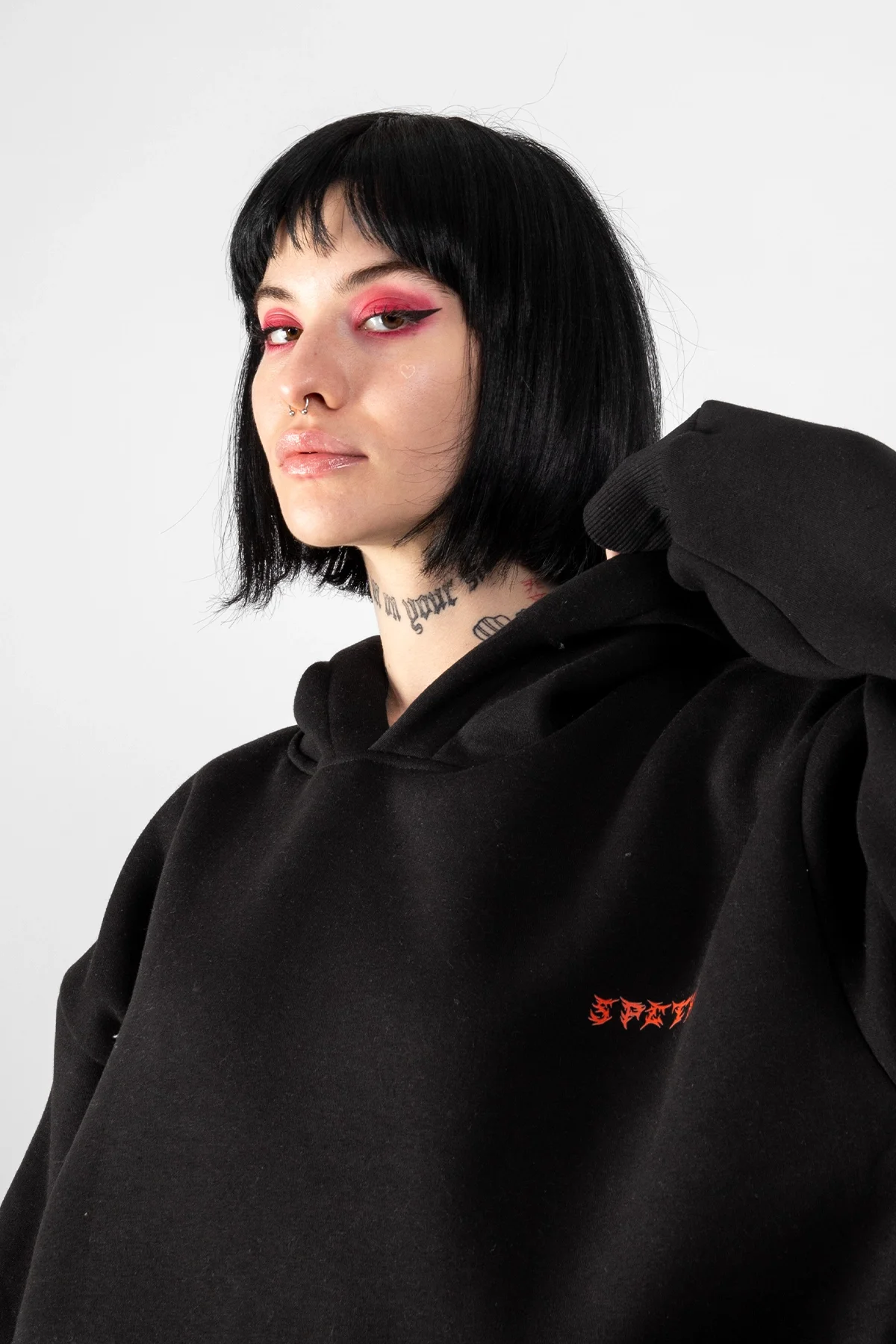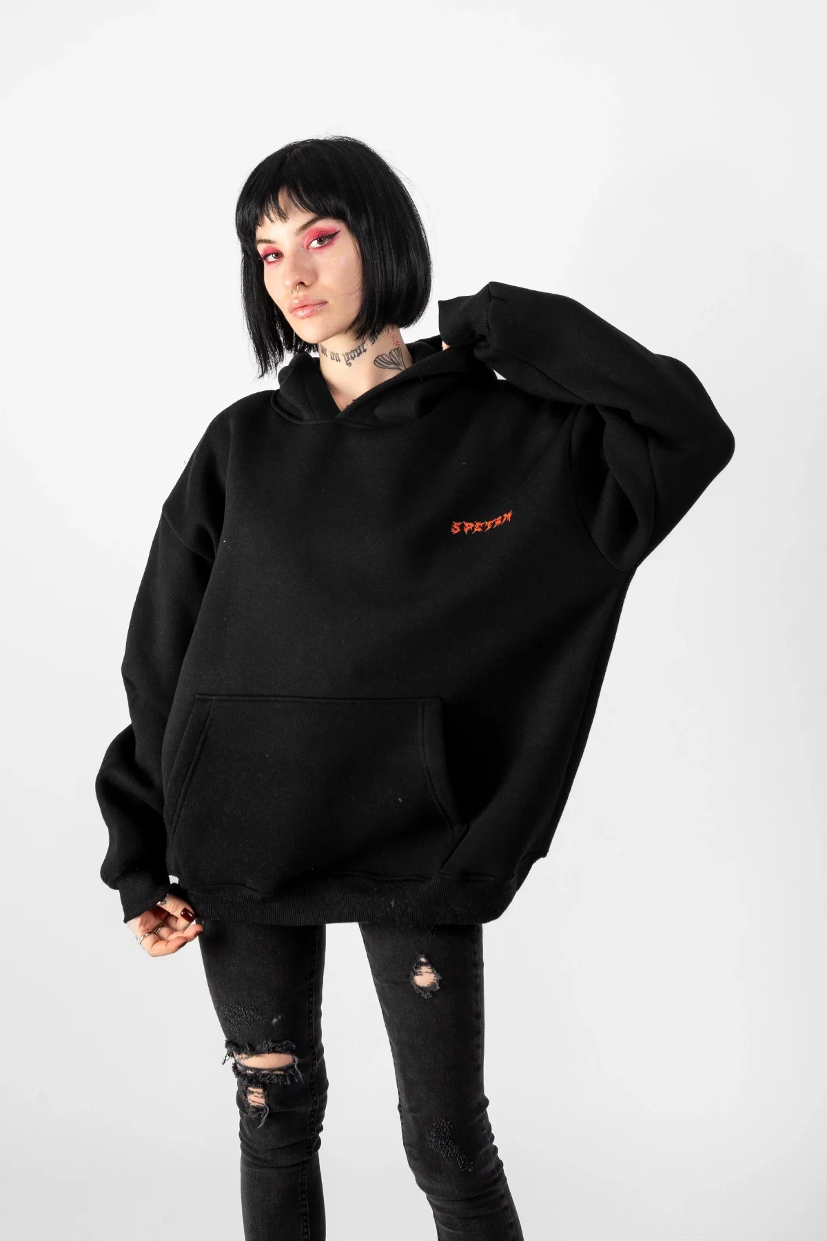 SPECTRUM SIRT BASKILI OVERSİZE UNİSEX SİYAH HOODİE