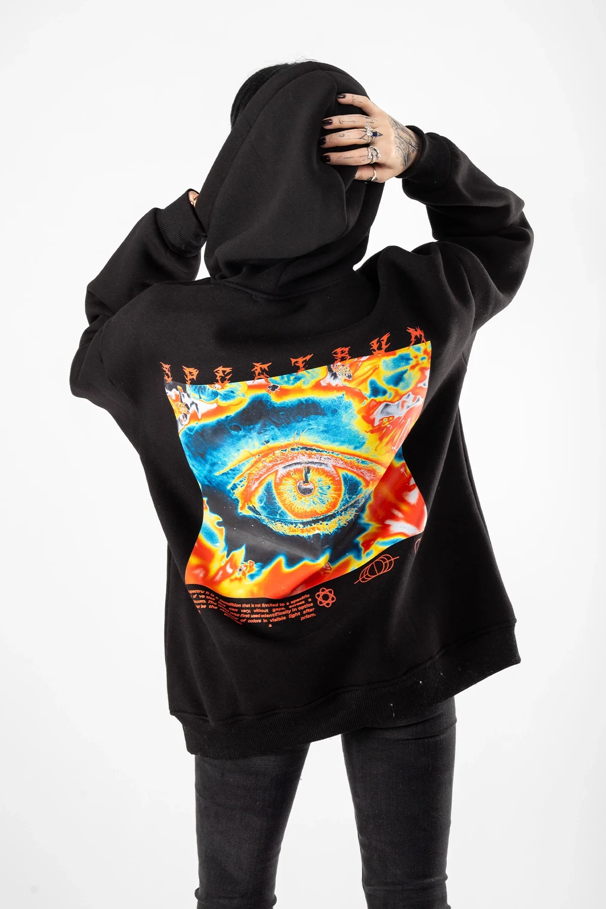Eye Of Horus Baskılı Oversize Unisex Siyah Hoodie